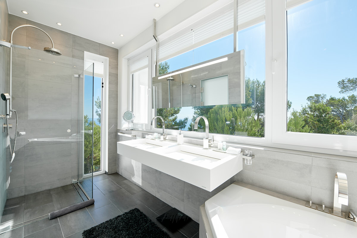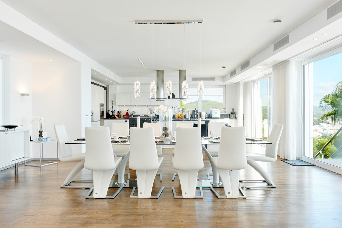 Architecture and Furnishings: The property showcases puristic, state-of-the-art architecture with state-of-the-art indoor and outdoor furniture featuring Bauhaus style elements. It is fully furnished with ultra-modern Benz furniture, and all windows are by Schüco with electric aluminum shutters.