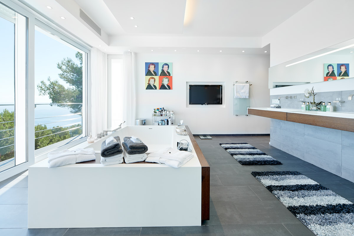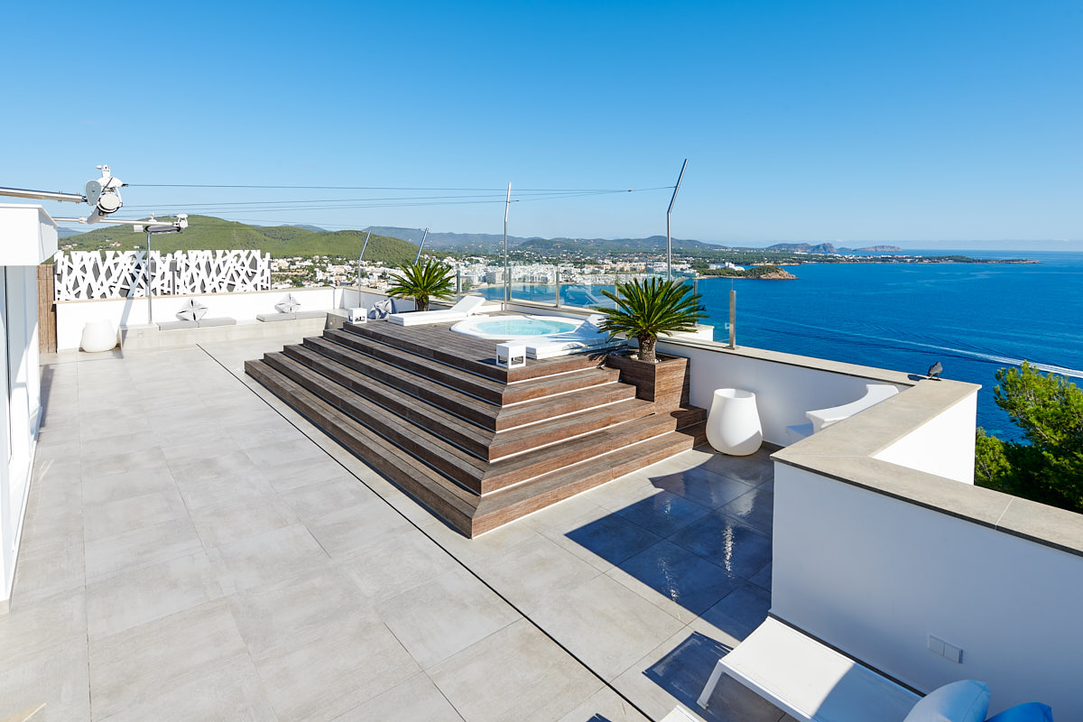 Casa Miami offers an unparalleled dream vacation experience, boasting unobstructed 270° vistas of the Mediterranean Sea and the enchanting port of Santa Eulalia. This stunning villa epitomizes luxury living, ideal for those seeking an all-encompassing retreat complete with premium amenities and an ultra-modern design. Here, you’ll enjoy a large infinity pool, a rooftop jacuzzi, and a private gym. This contemporary island escape is the definition of luxury with its premium Benz-Furniture, Smart Home automated systems, and state-of-the-art appliances. Immerse yourself in comfort and tranquility amidst the vibrant energy of Ibiza while staying at this beautiful villa.