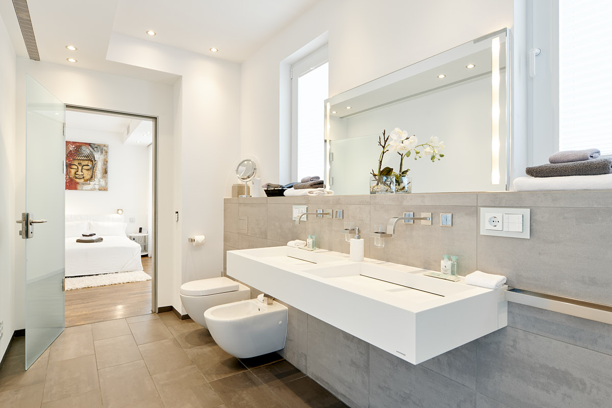 Bedroom 1 (Floor 1): Master bedroom (bed size 200×200) with ensuite bathroom, master bathroom with bath jacuzzi and big rain shower by Dornbracht.