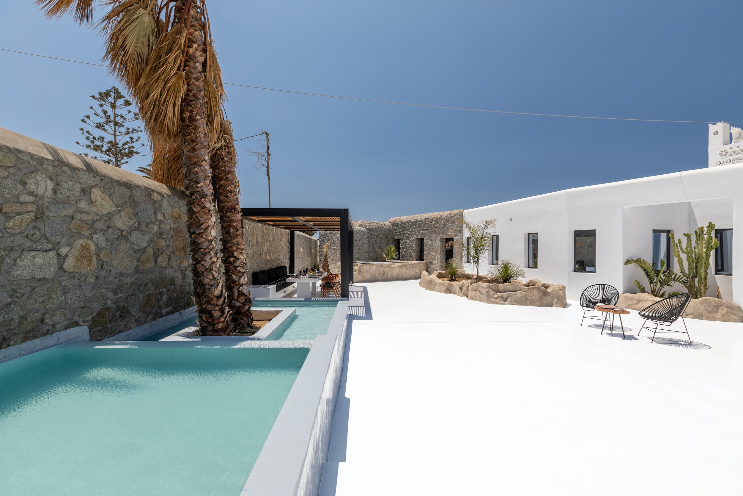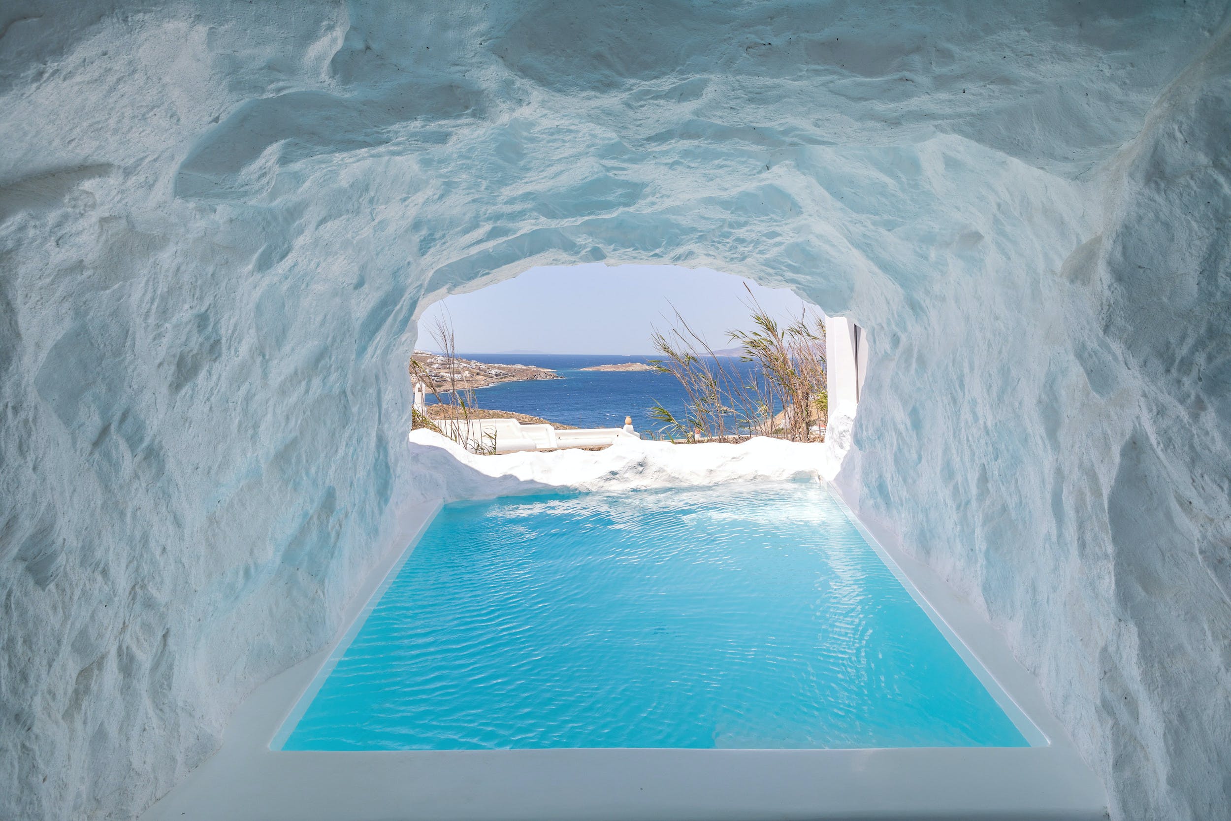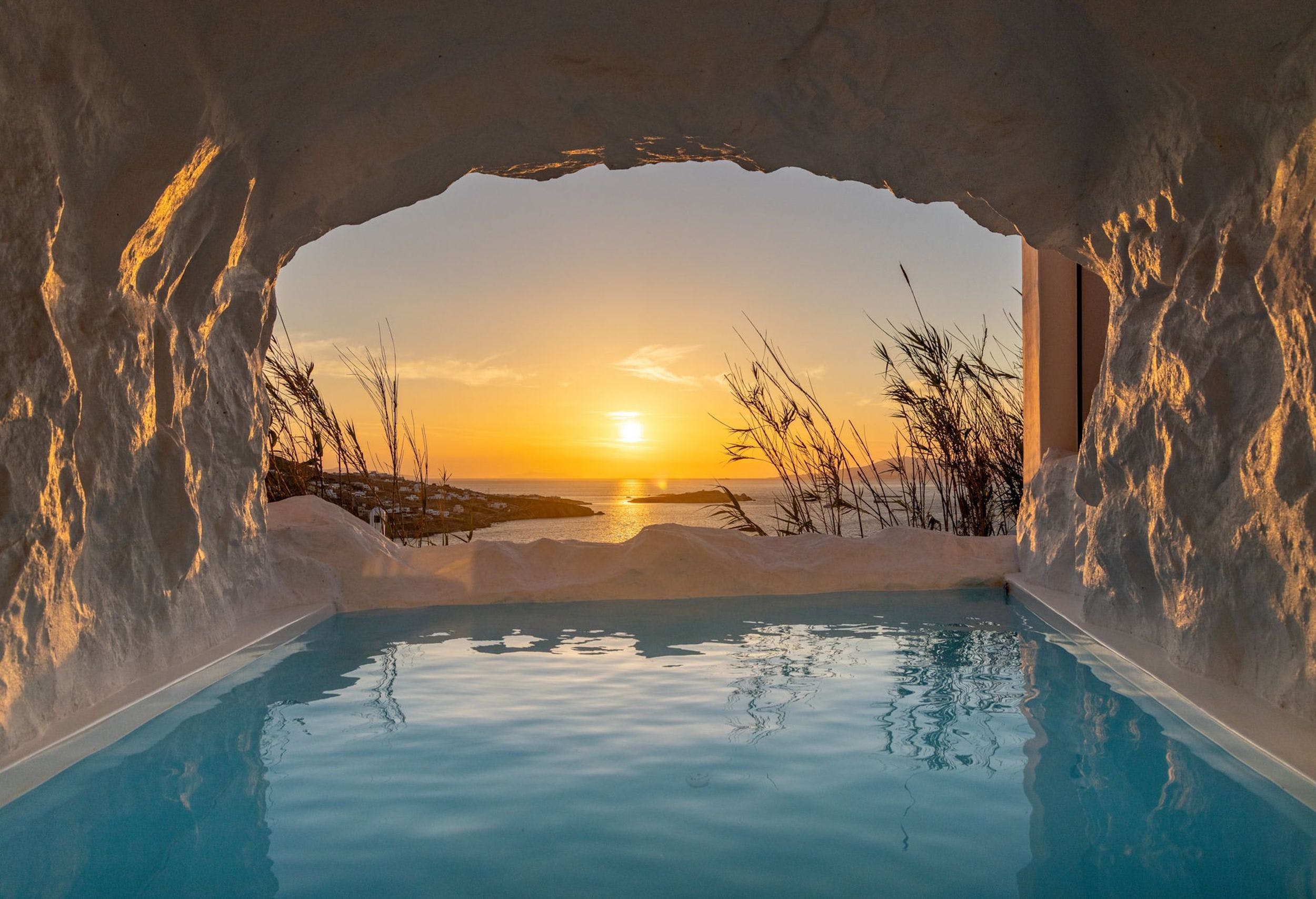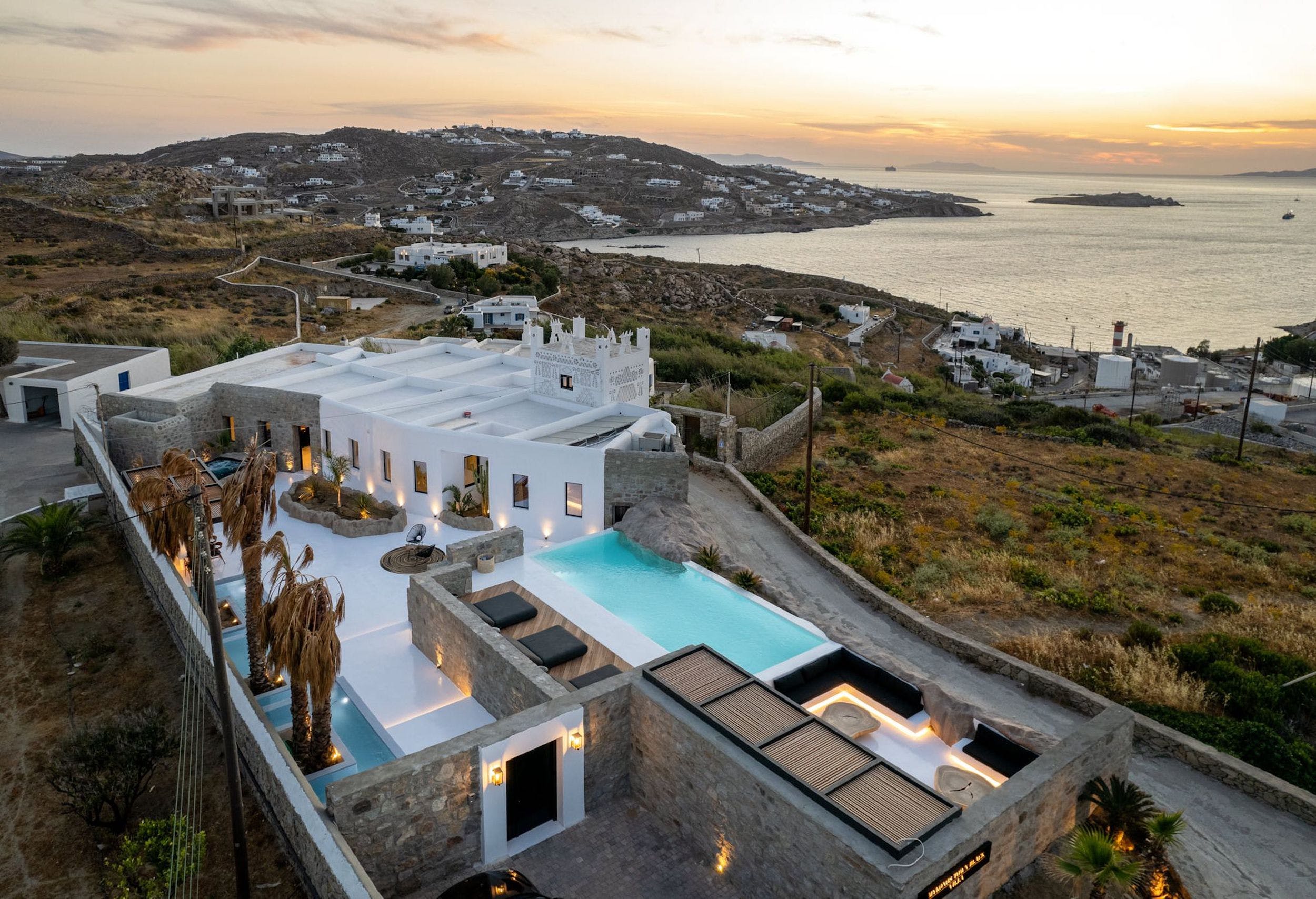 This luxurious property features 6 deluxe en-suite bedrooms with an outdoor private infinity pool, outdoor Jacuzzi and a ‘heated’ cave pool allowing guests to relax and enjoy every second of their getaway to Mykonos. The magnificent views from the villa’s terrace to the beach will astound you.