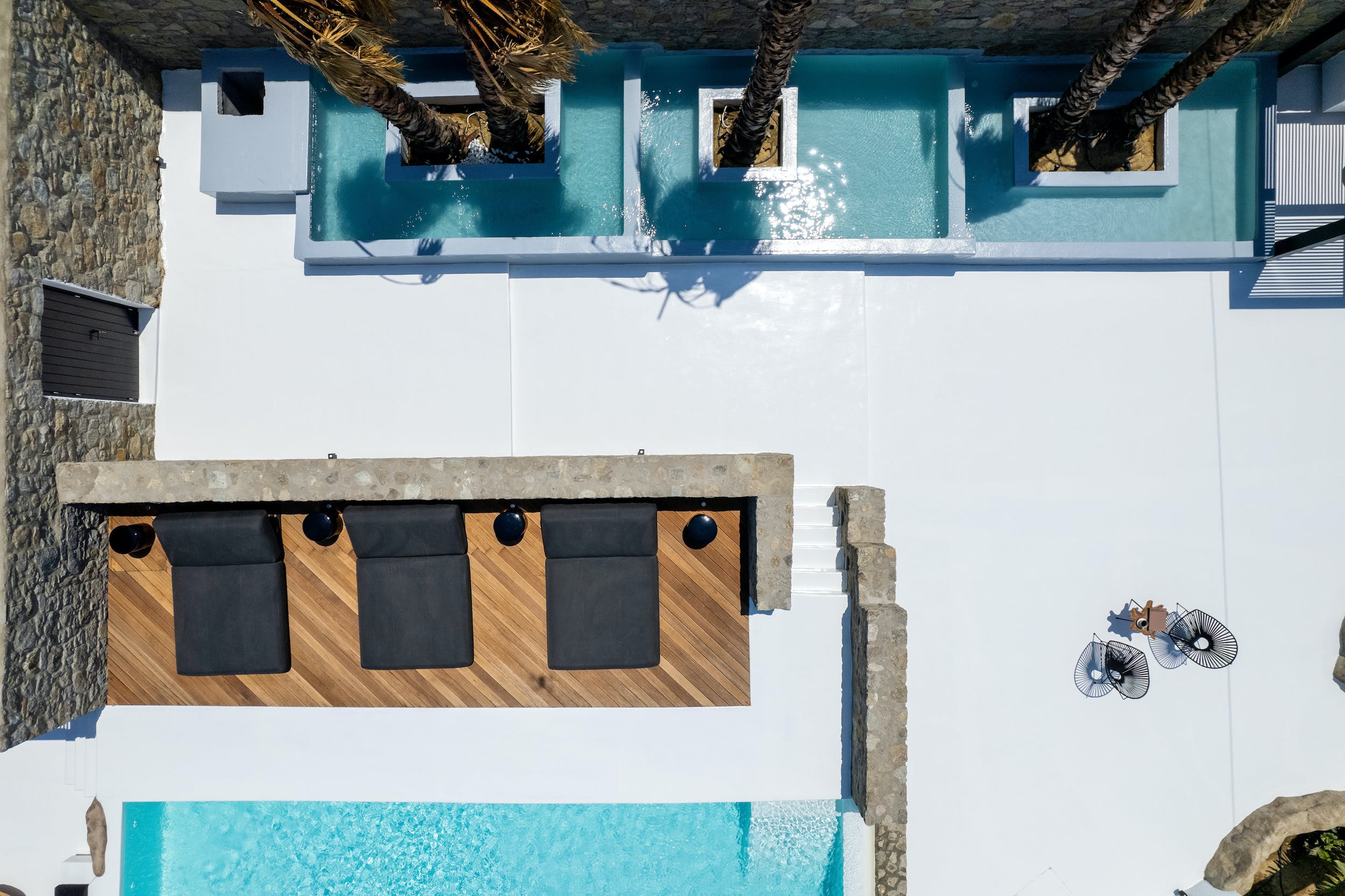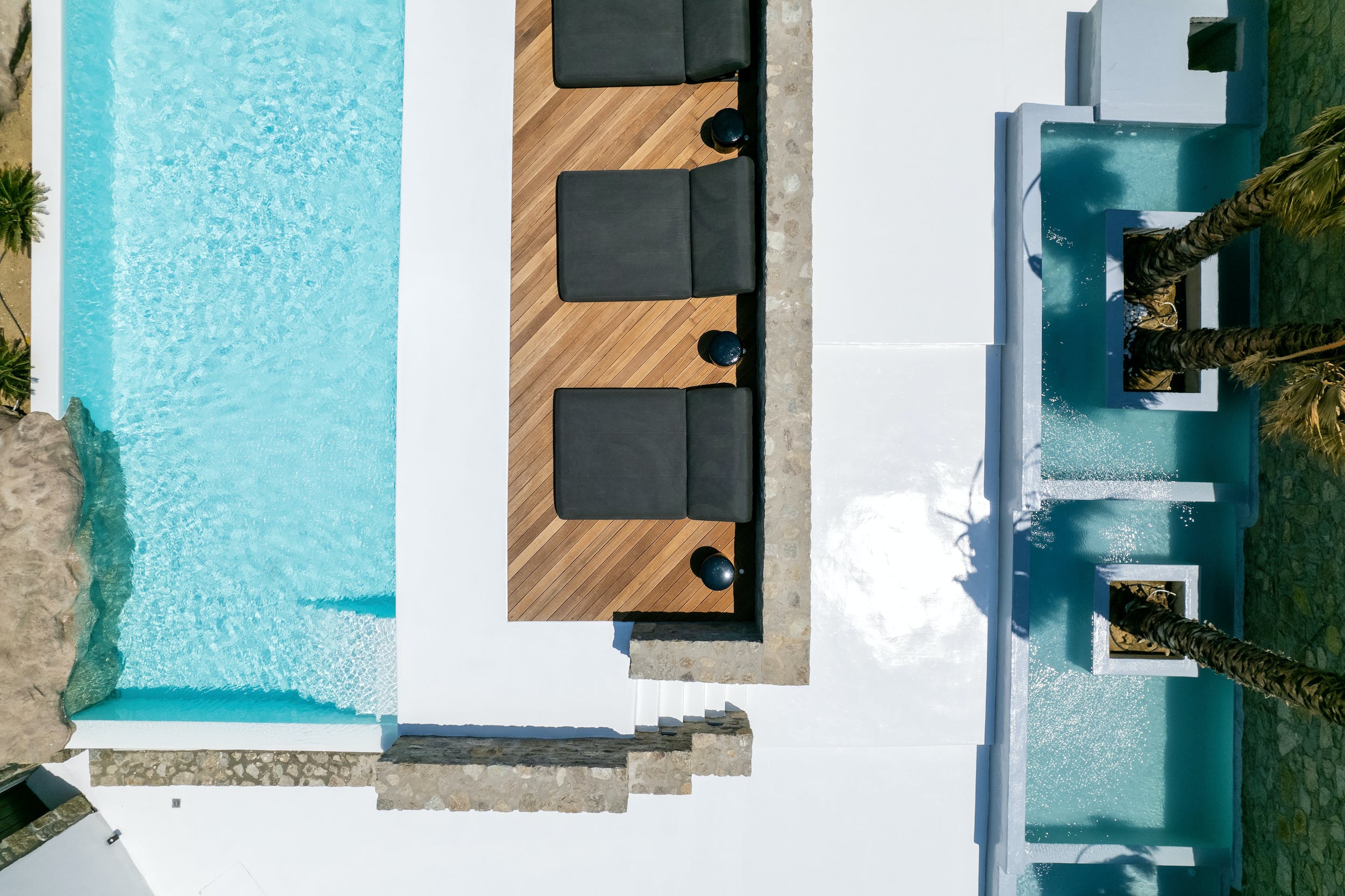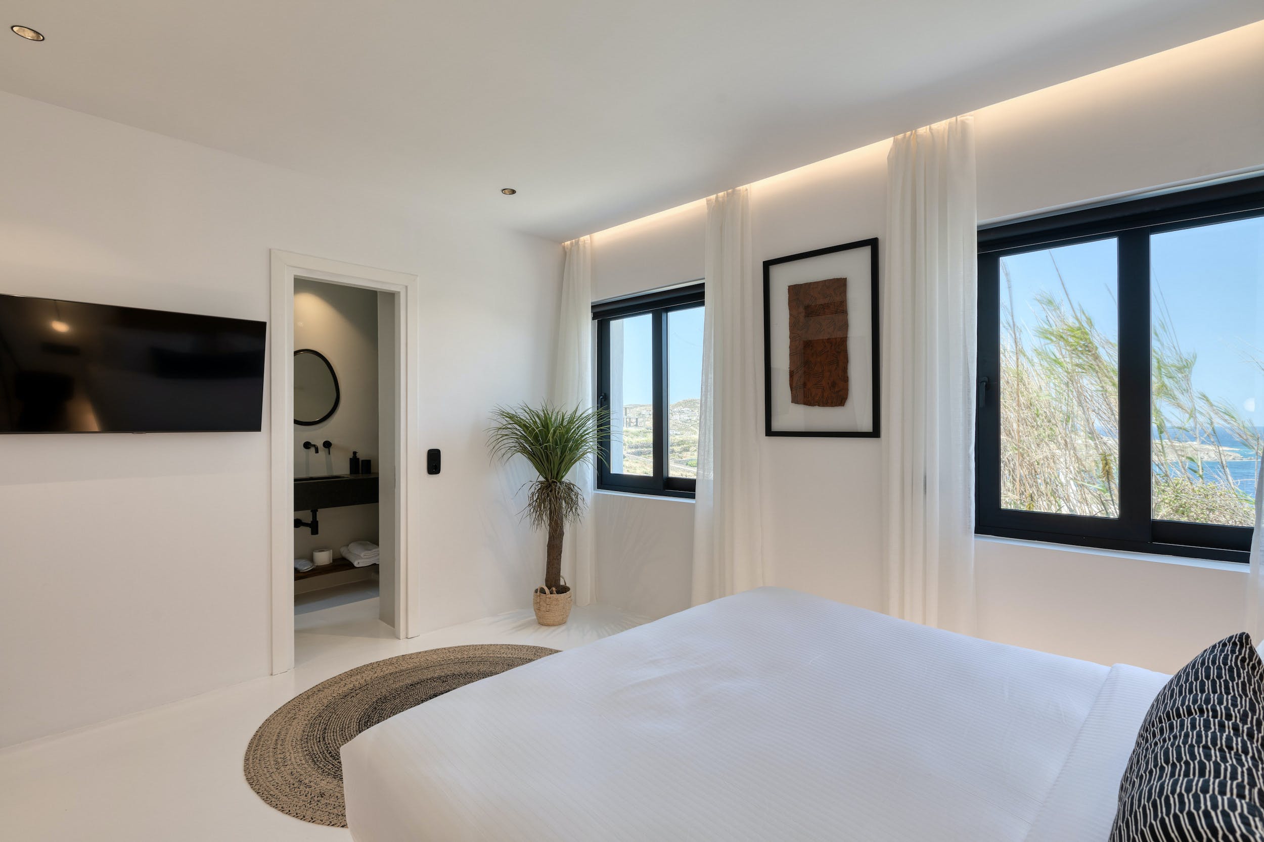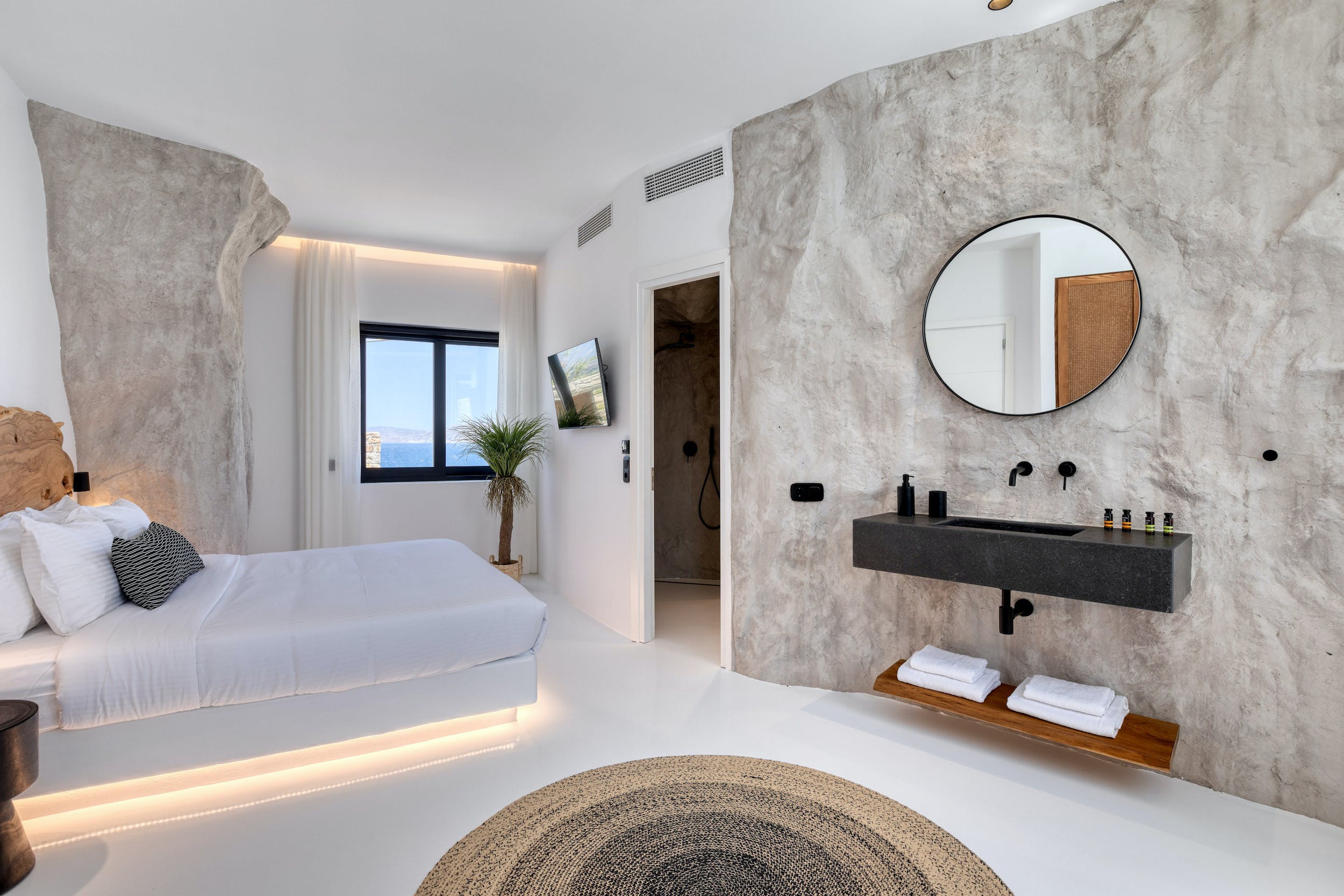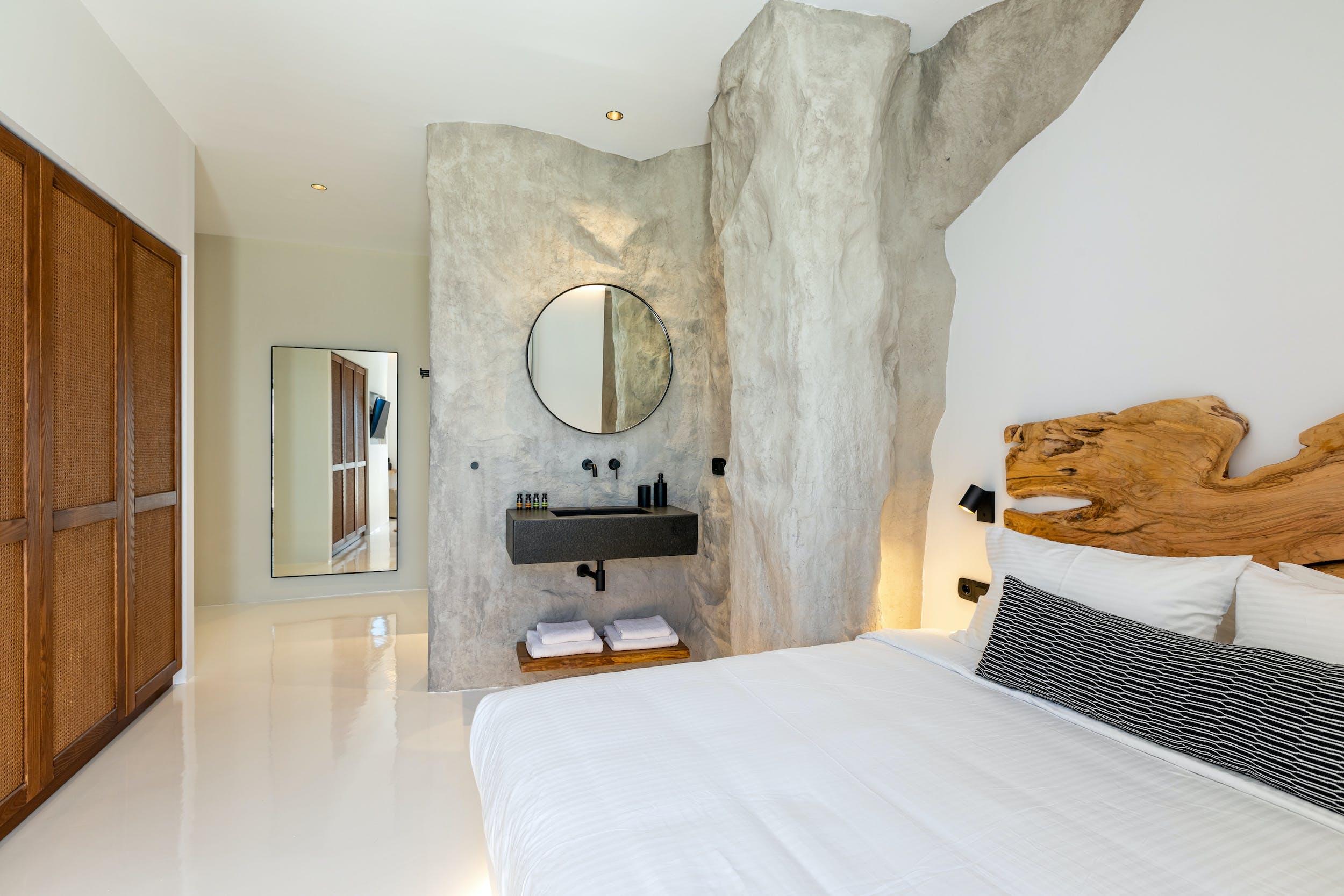 The inside of Adonis Amber really speaks for itself! The villa ensures pampering moments by being fully equipped to the highest standards and boasting spectacular private and communal areas. All the home comforts you need are waiting for you, from king-size beds to a fully equipped kitchen. The minimal design and the unique decoration are the perfect excuse to get those fabulous Instagram photos.