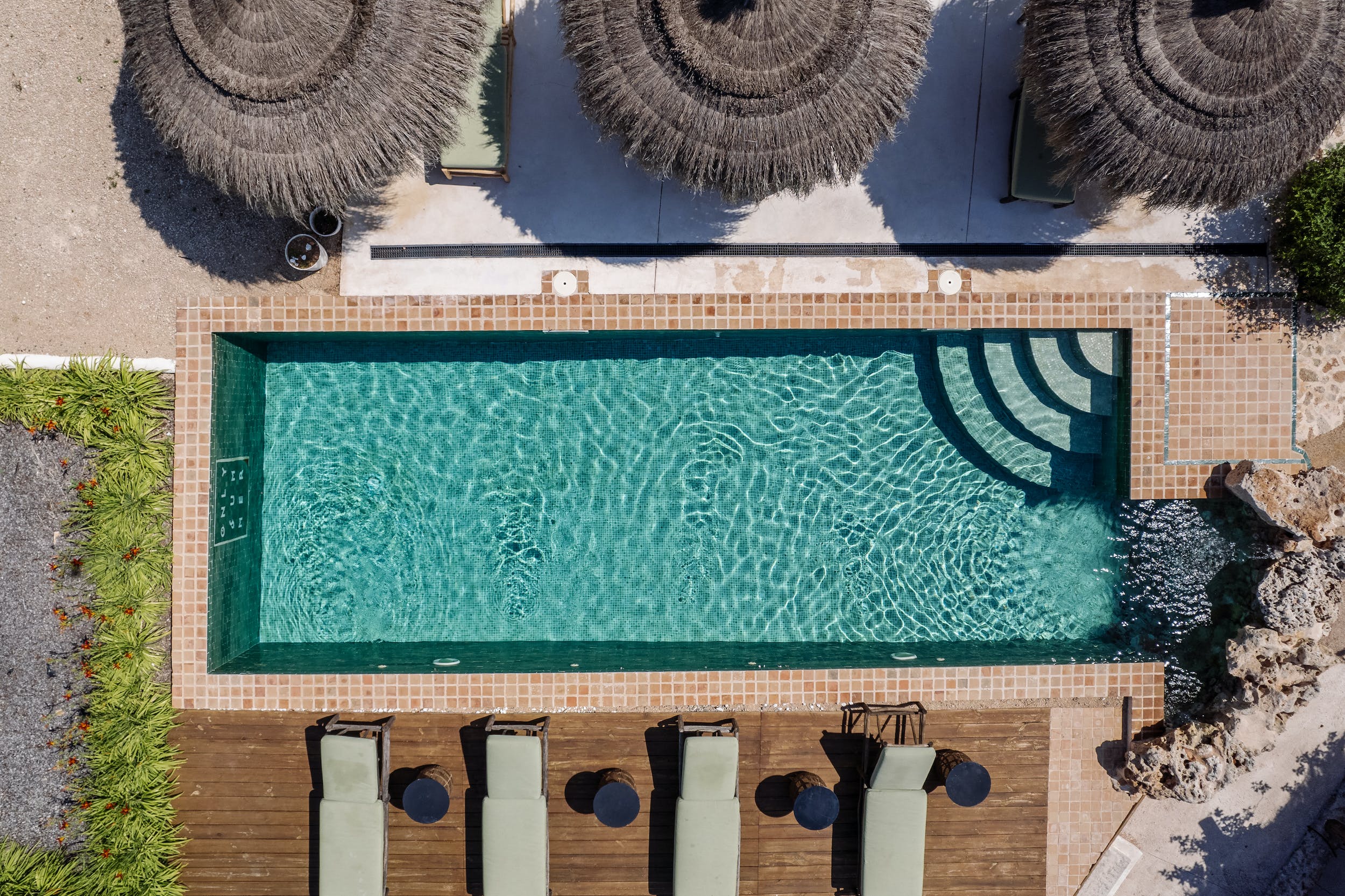 The terrace is the ultimate chill out area with low tables and floor cushions, rugs, ceramic earthenware and iconic Moroccan lanterns. Everything combines with fascinating Mediterranean flair. The big infinity pool lets you refresh during the summer.