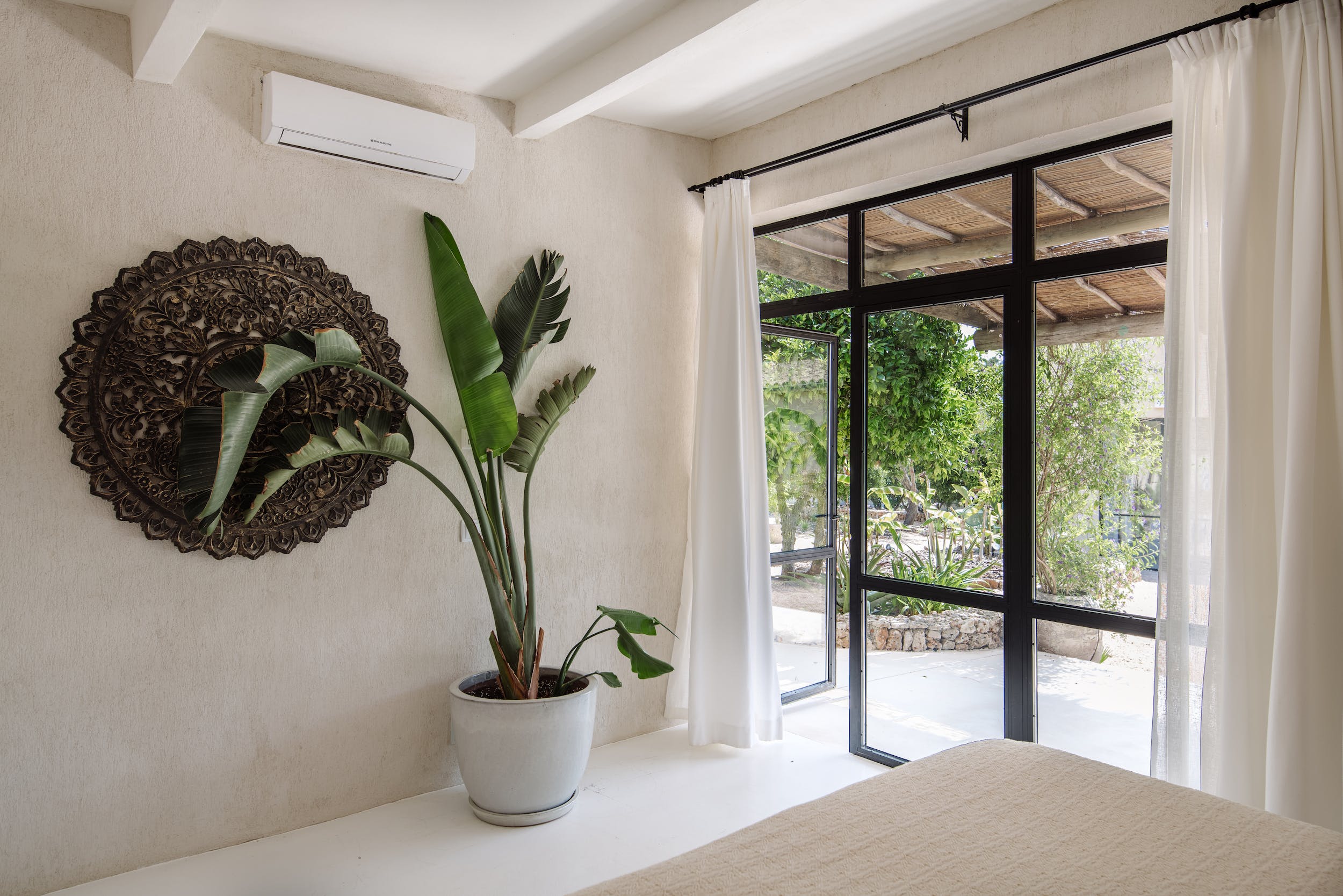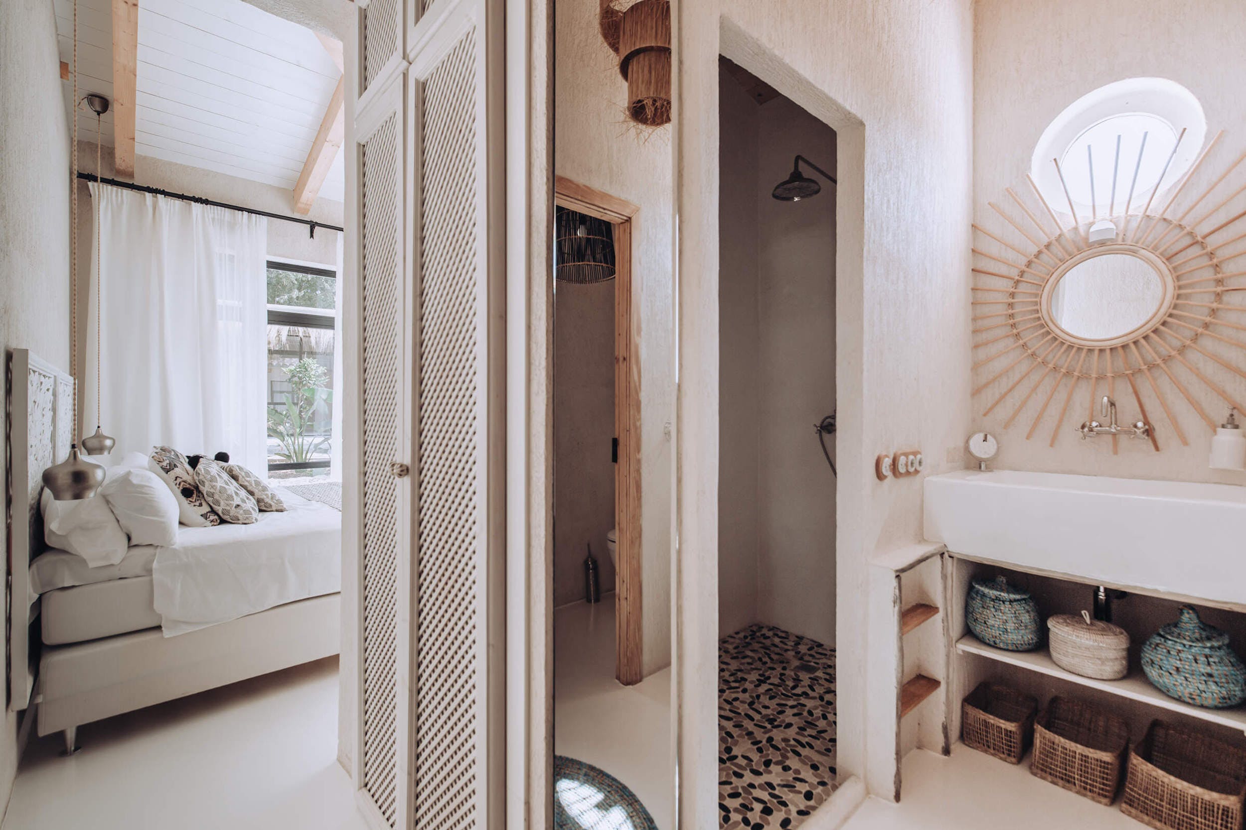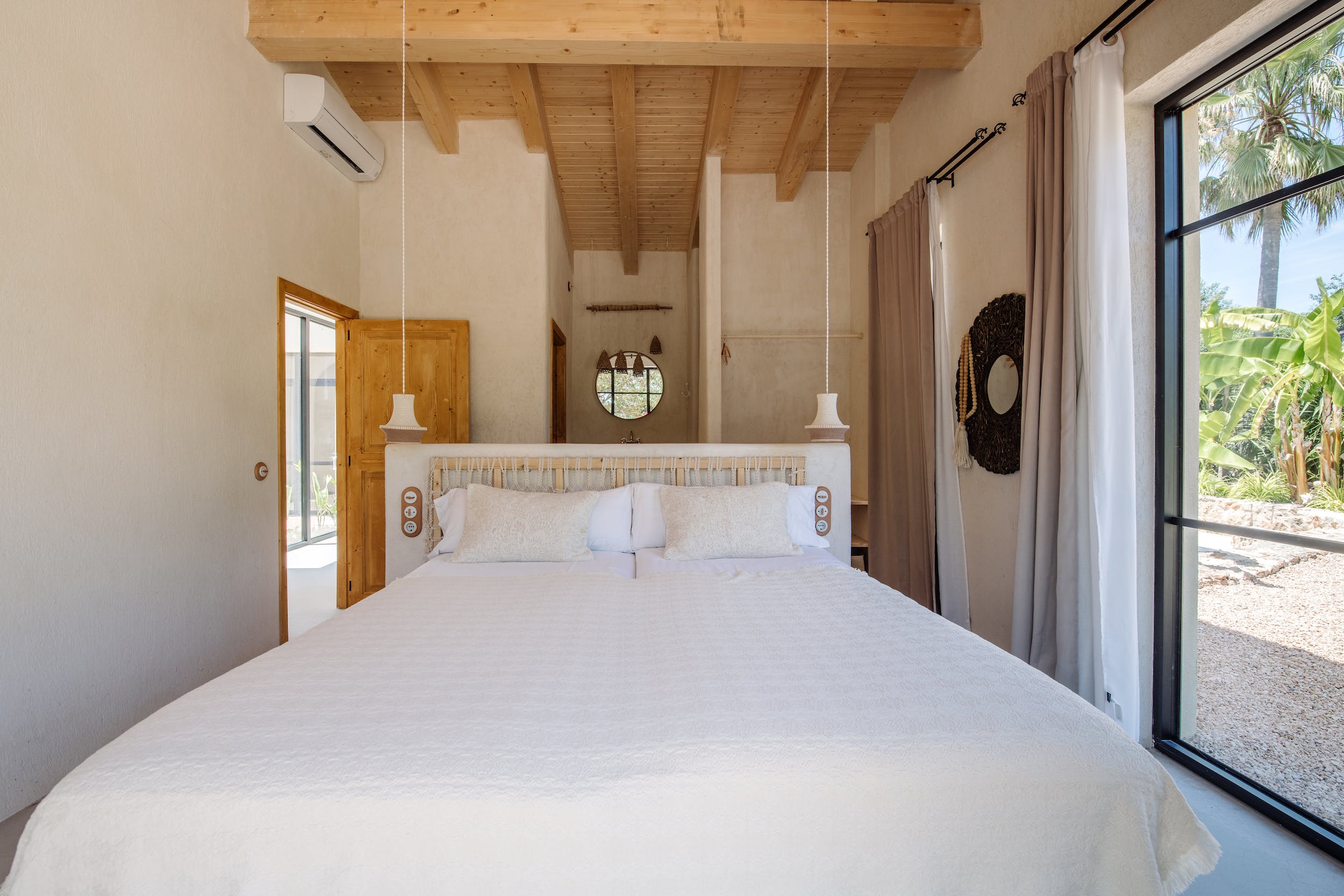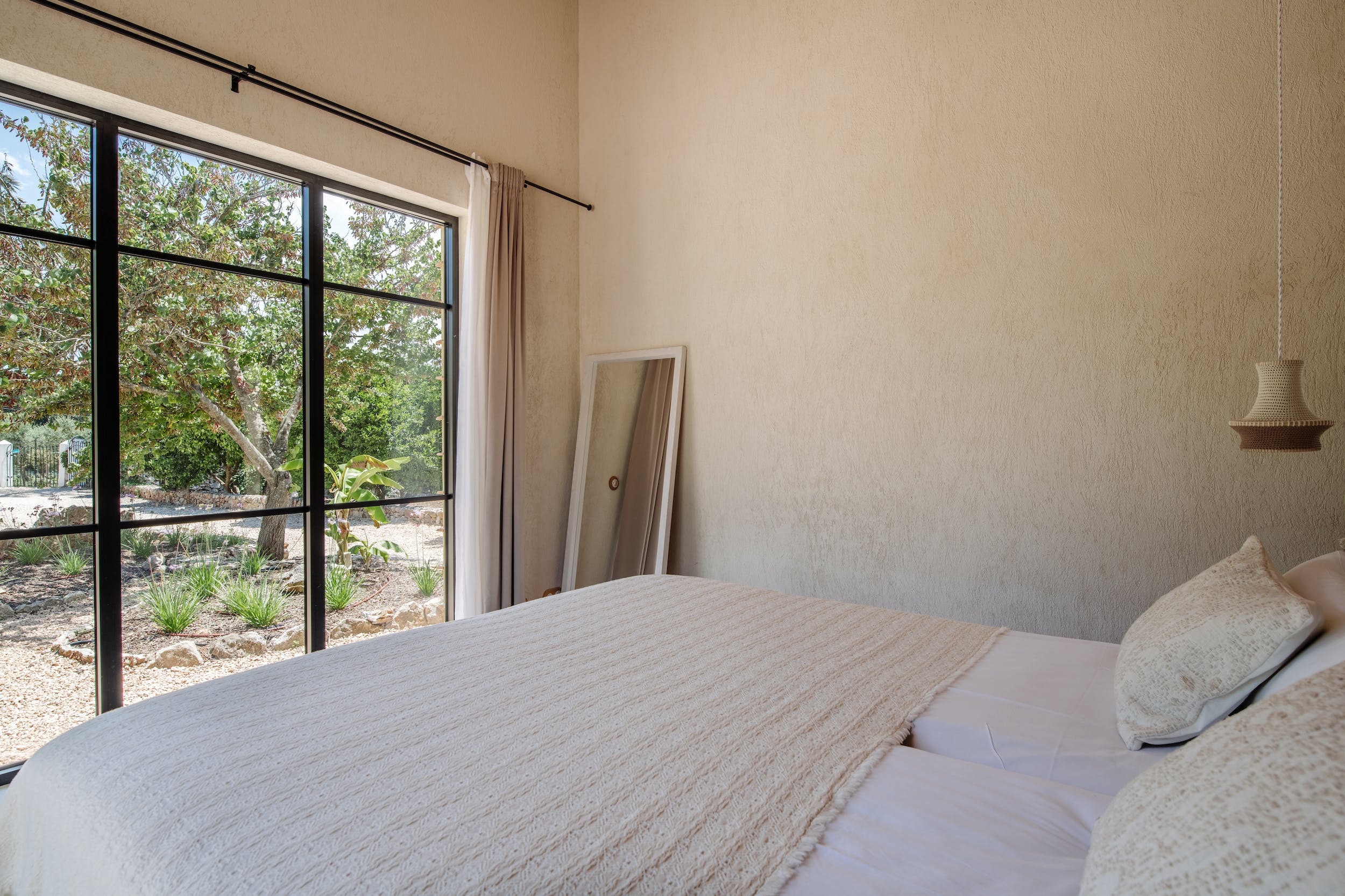 Main House – King size bed and handcrafted furniture. Air conditioning and floor heating. En-suite bathroom with walk-in shower.