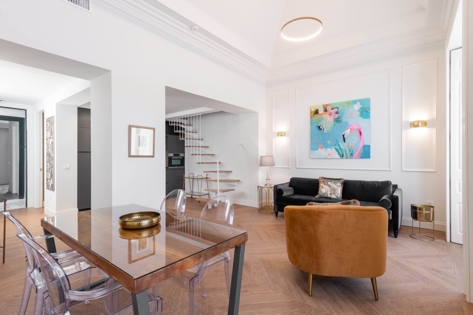 The apartment is a cozy and bright duplex of 90 m2. The apartment is distributed in two rooms and a large living room on two levels.  The living room is a large space that has Smart TV and WIFI connection in addition to air conditioning and heating