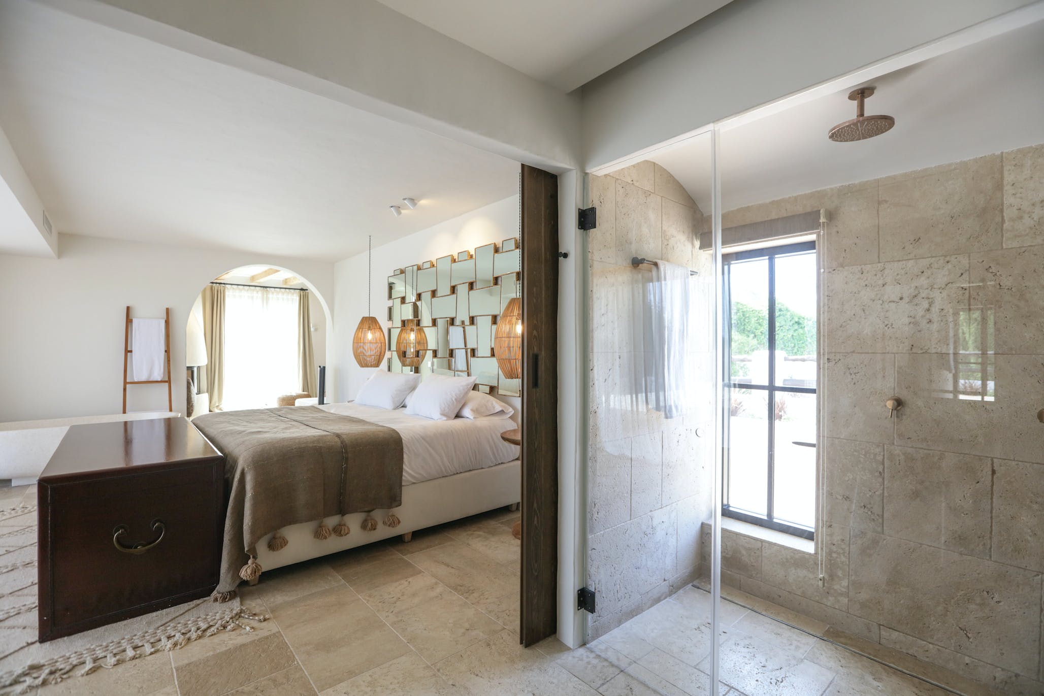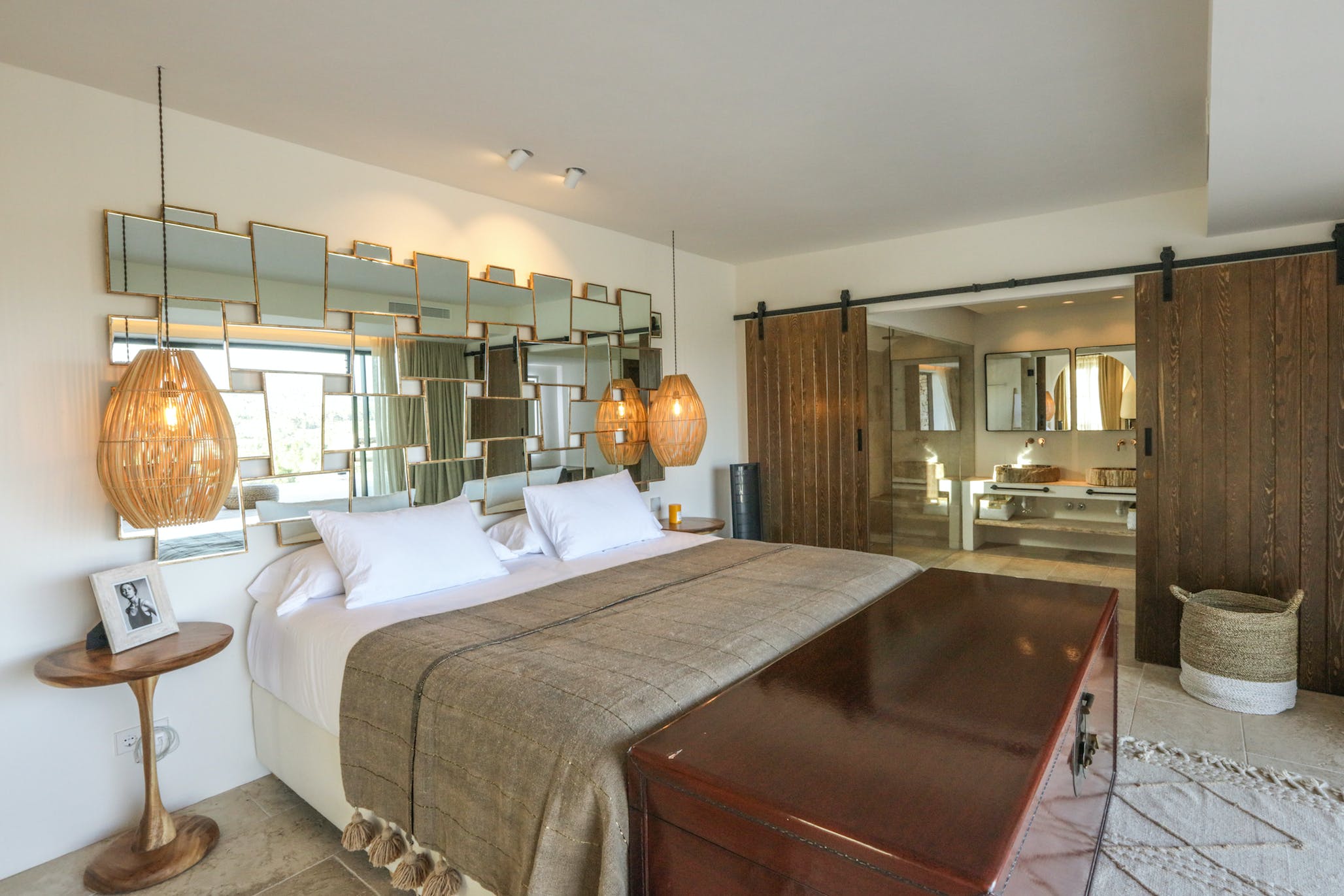 Master house – An incredible 115m2 room with another 150m2 of private terrace with a hammock garden and several sitting areas overlooking the postcard-perfect countryside. It features a king size bed, air conditioning, bathroom with bathtub and double shower, large walk-in closet, separate sitting area with home theater and fireplace.
