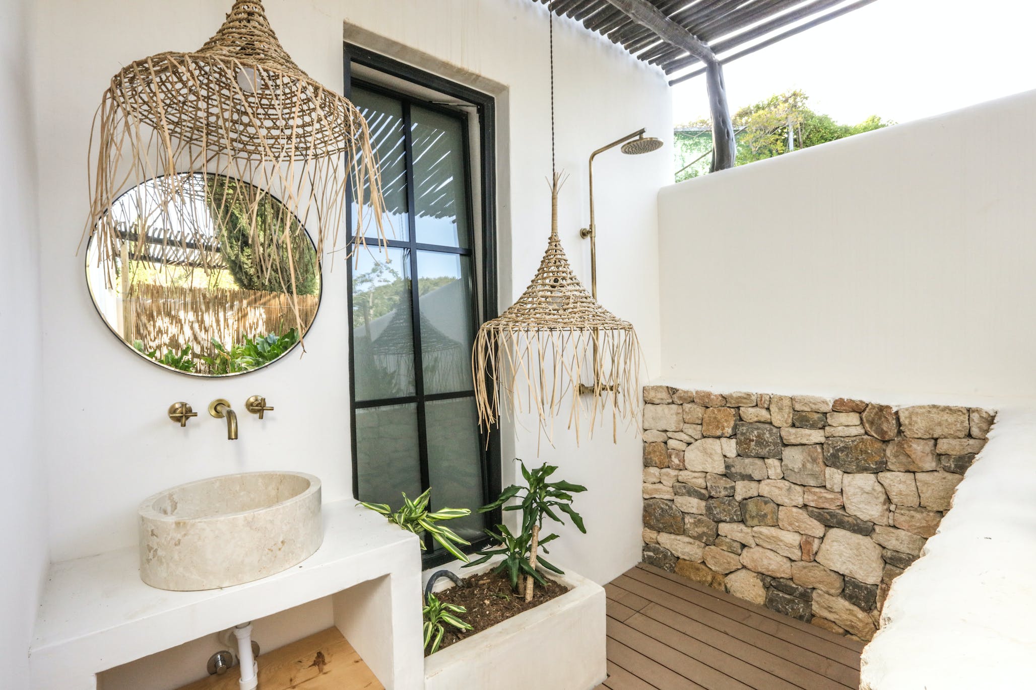 Master House – Queen bed, air conditioning, shared bathroom with bedroom 6, access to outdoor tropical garden showers/bathtub.