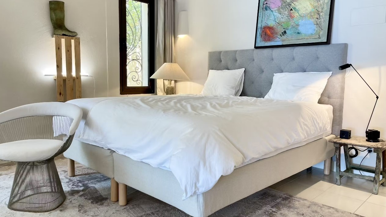 On the first floor. Double room with en-suite bathroom. Flat screen TV. Air conditioning.