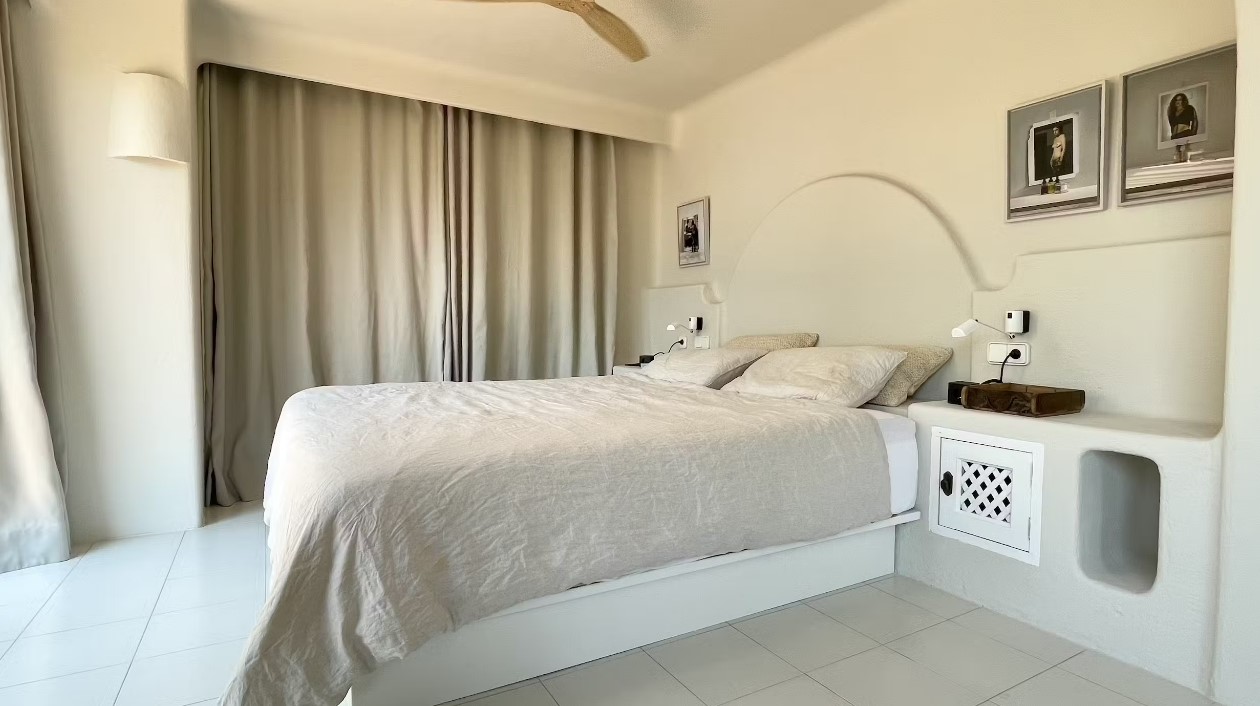 On the first floor. Double room with en-suite bathroom. Large, covered outdoor terrace space. Air conditioning.