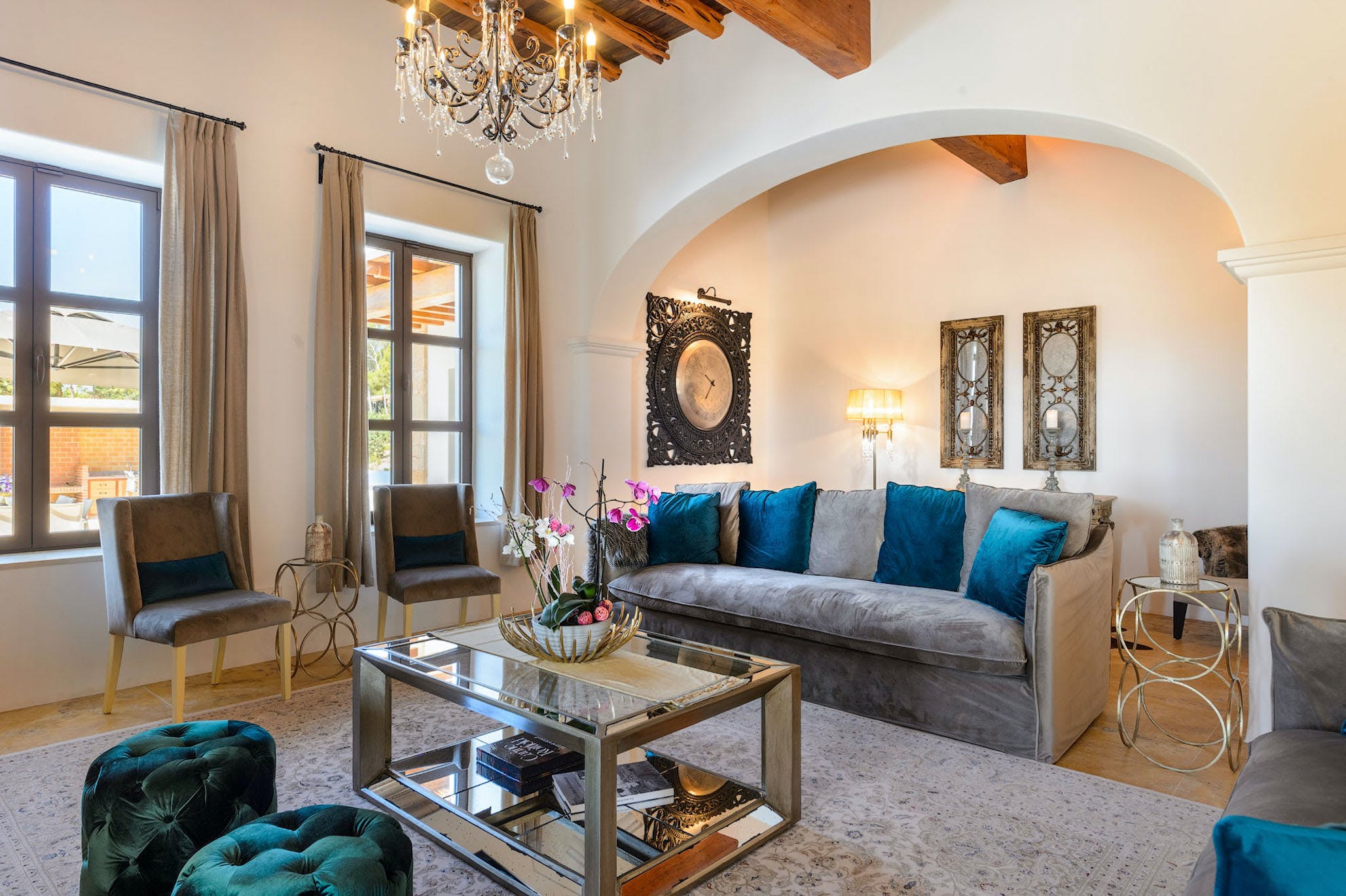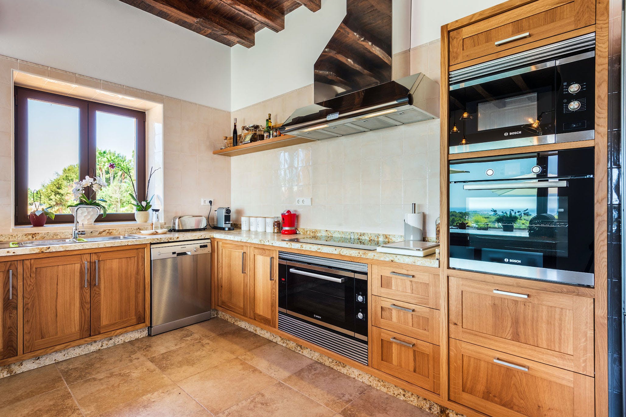The villa is fitted with a fully equipped modern kitchen with top quality modern appliances including a refrigerator, freezer, induction hobs, oven, microwave, toaster, coffee machine, dishwasher etc…