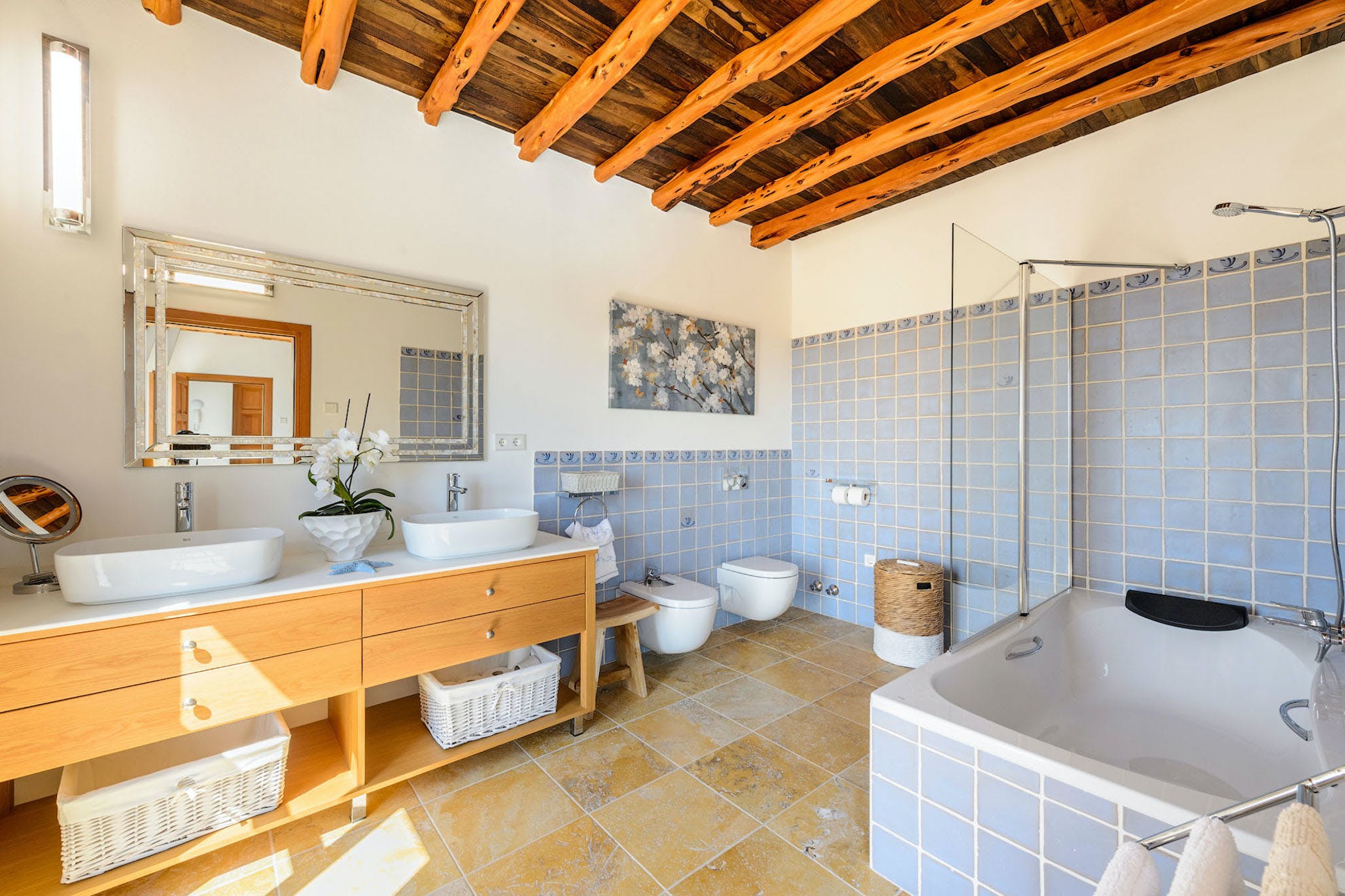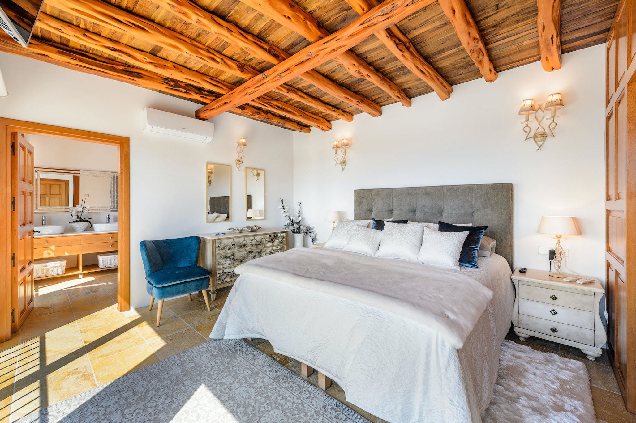 There are many extras such as air conditioning, underfloor heating, Wi-Fi, alarm system and safe box in each bedroom. There is also a washing machine, tumble dryer, iron and ironing board.
