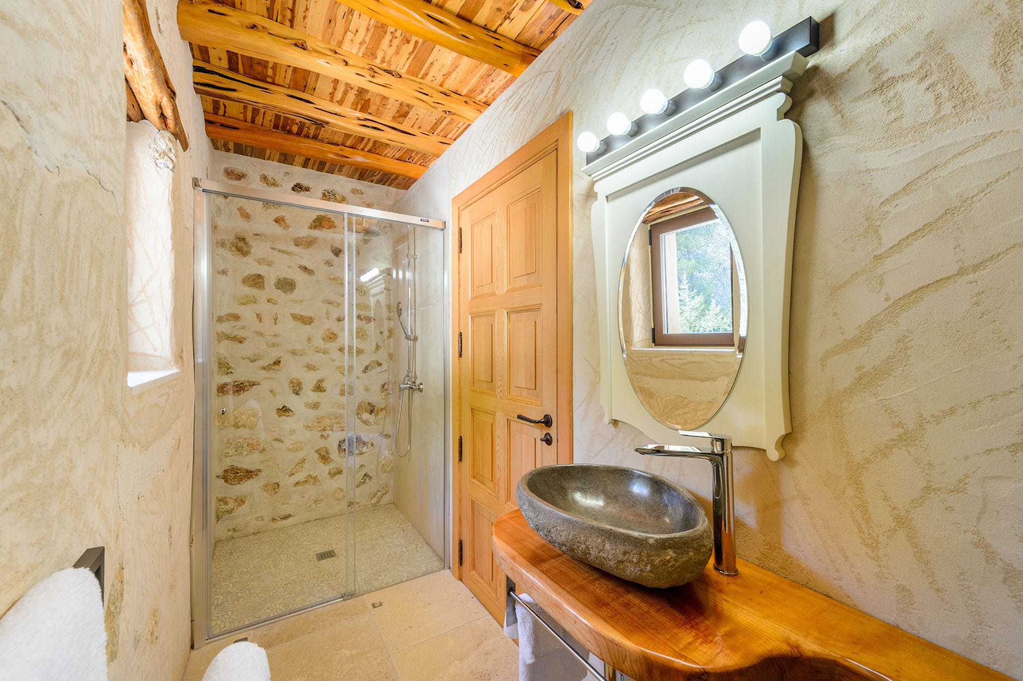 Outside, there is a very well maintained private garden with an inviting large swimming pool of 10m x 6m (which can be heated) surrounded by sunbeds, sunshades and two large round sunbeds. For your comfort, there is a complete bathroom with shower by the pool.