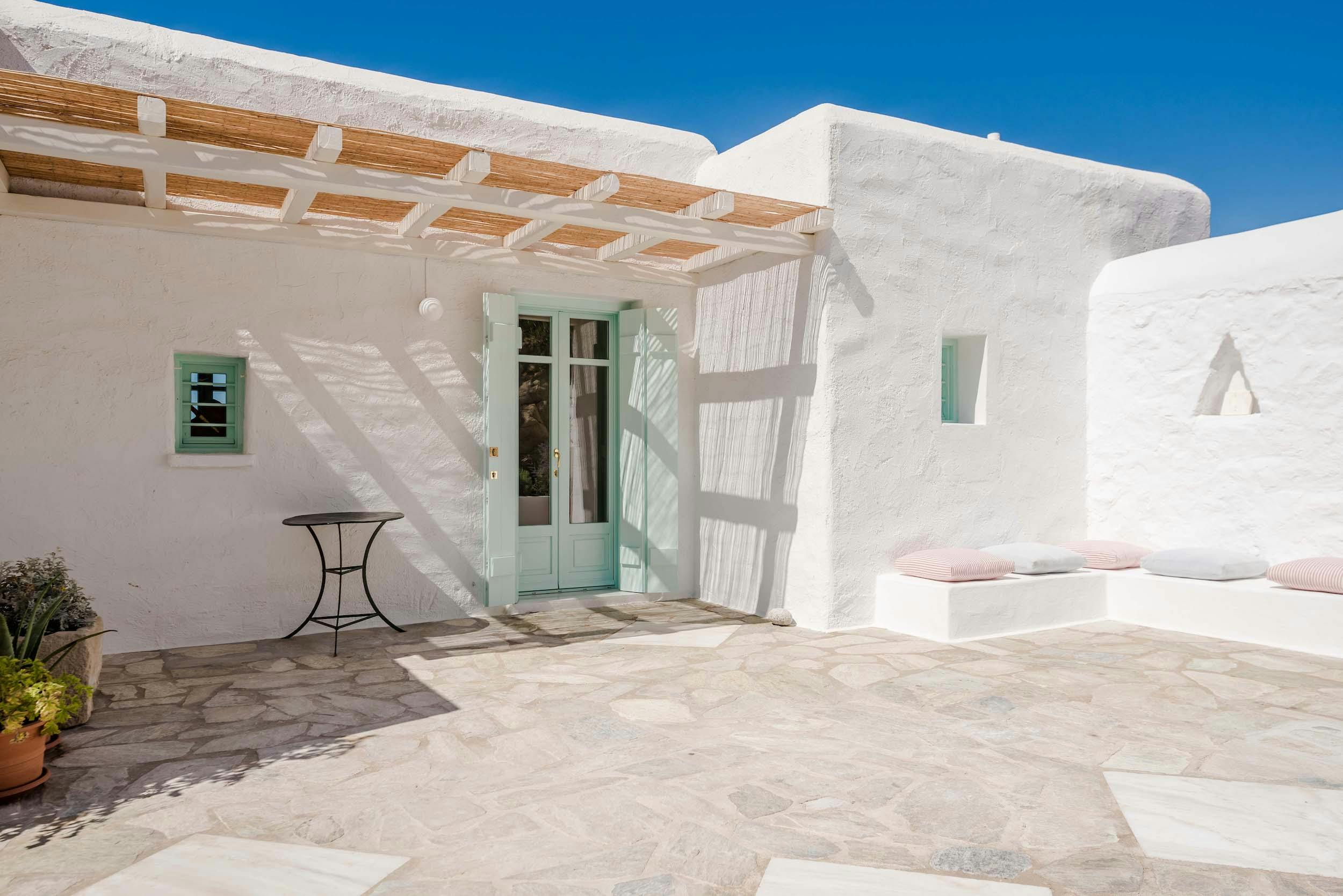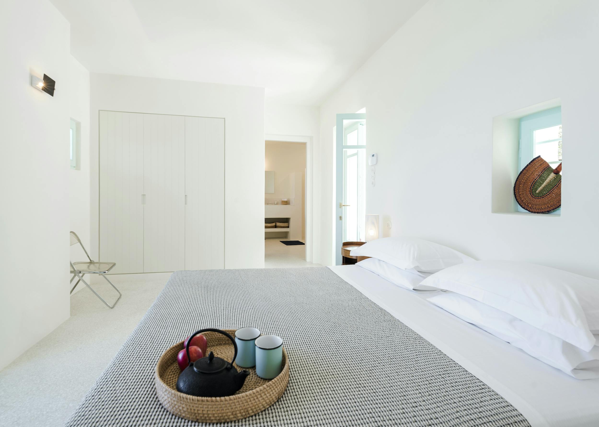 Aurora Lefki stands out for its understated sophistication and unique character that follows an alternative approach to Mediterranean holiday living, as well as its 180-degree panorama of the Cycladic islands and Mykonos town. The original 1980’s building has been completely renovated in 2019 and personally decorated by the owners with handpicked design, antique furniture, original artworks and modern equipment.