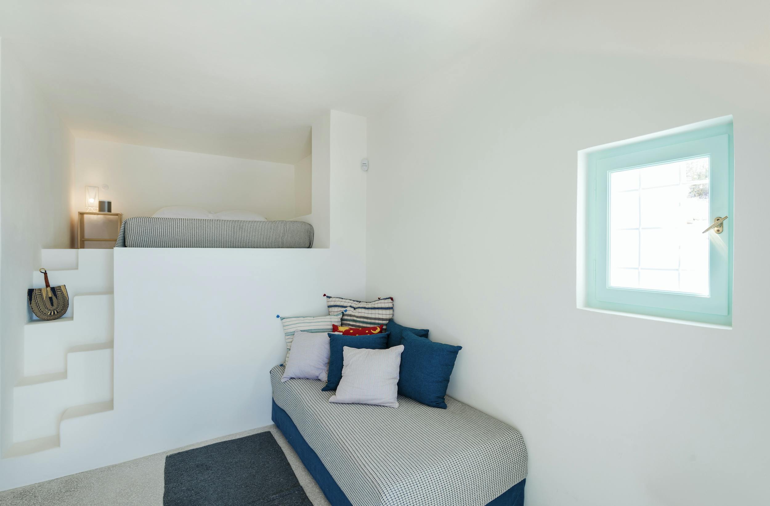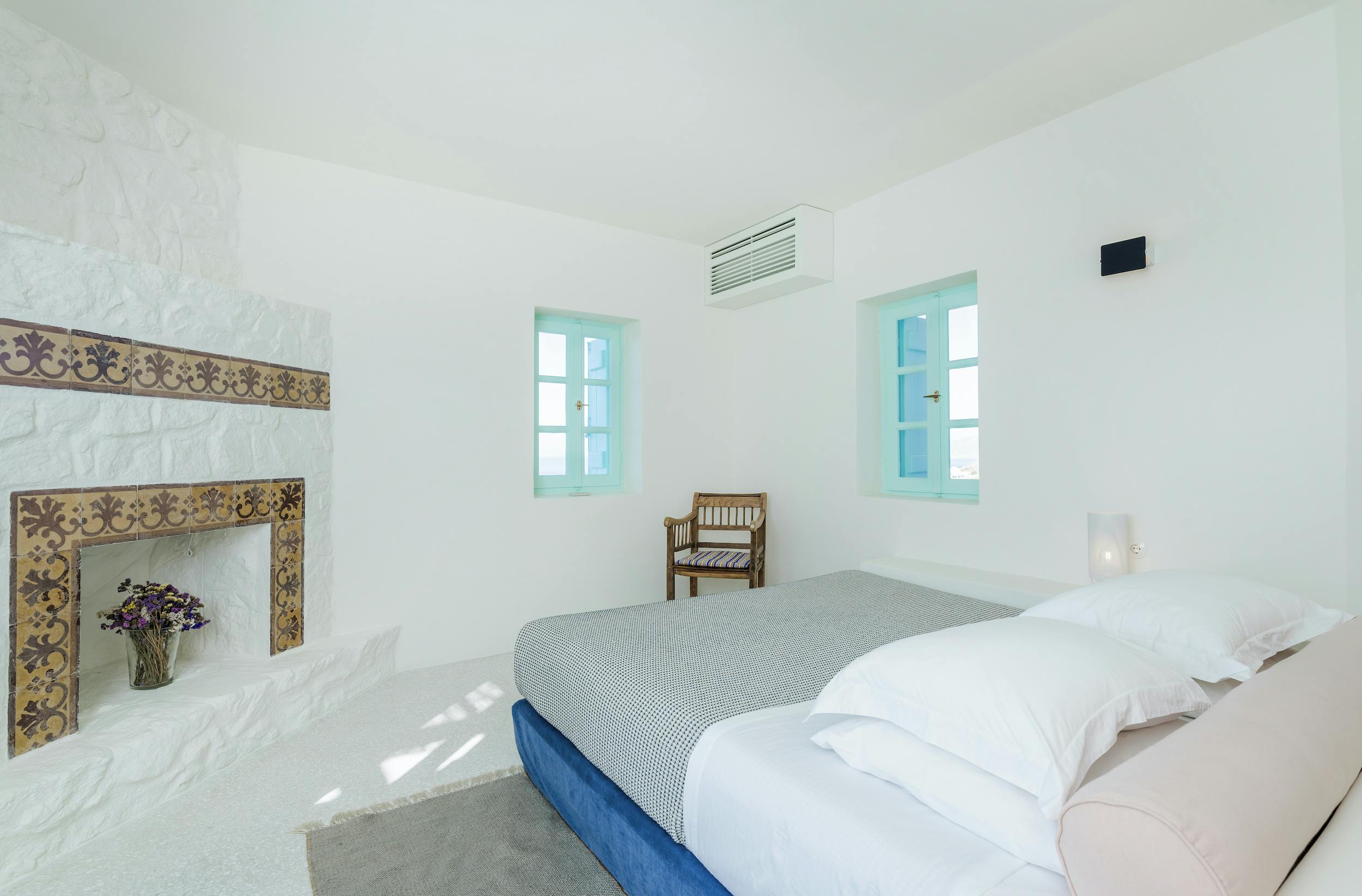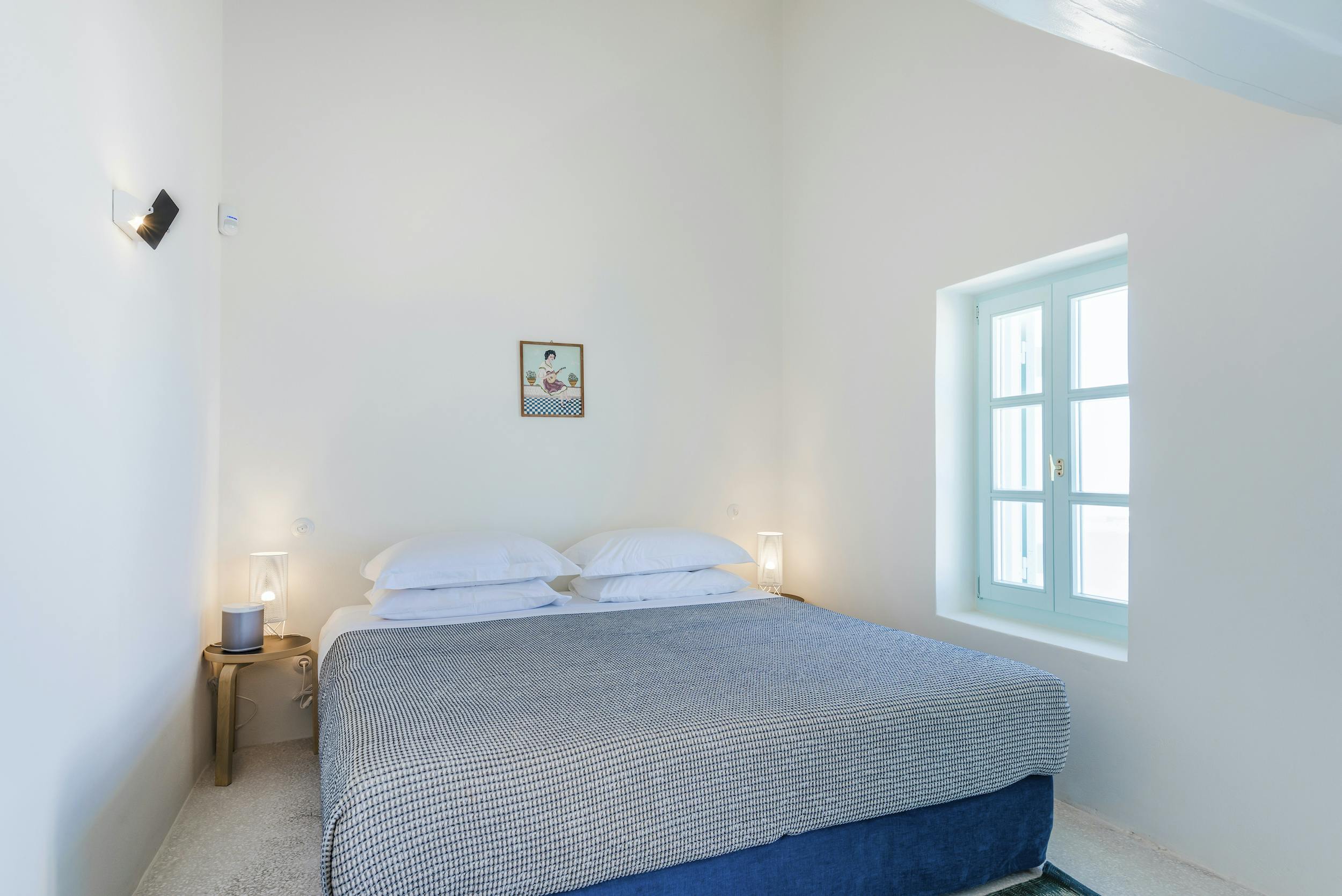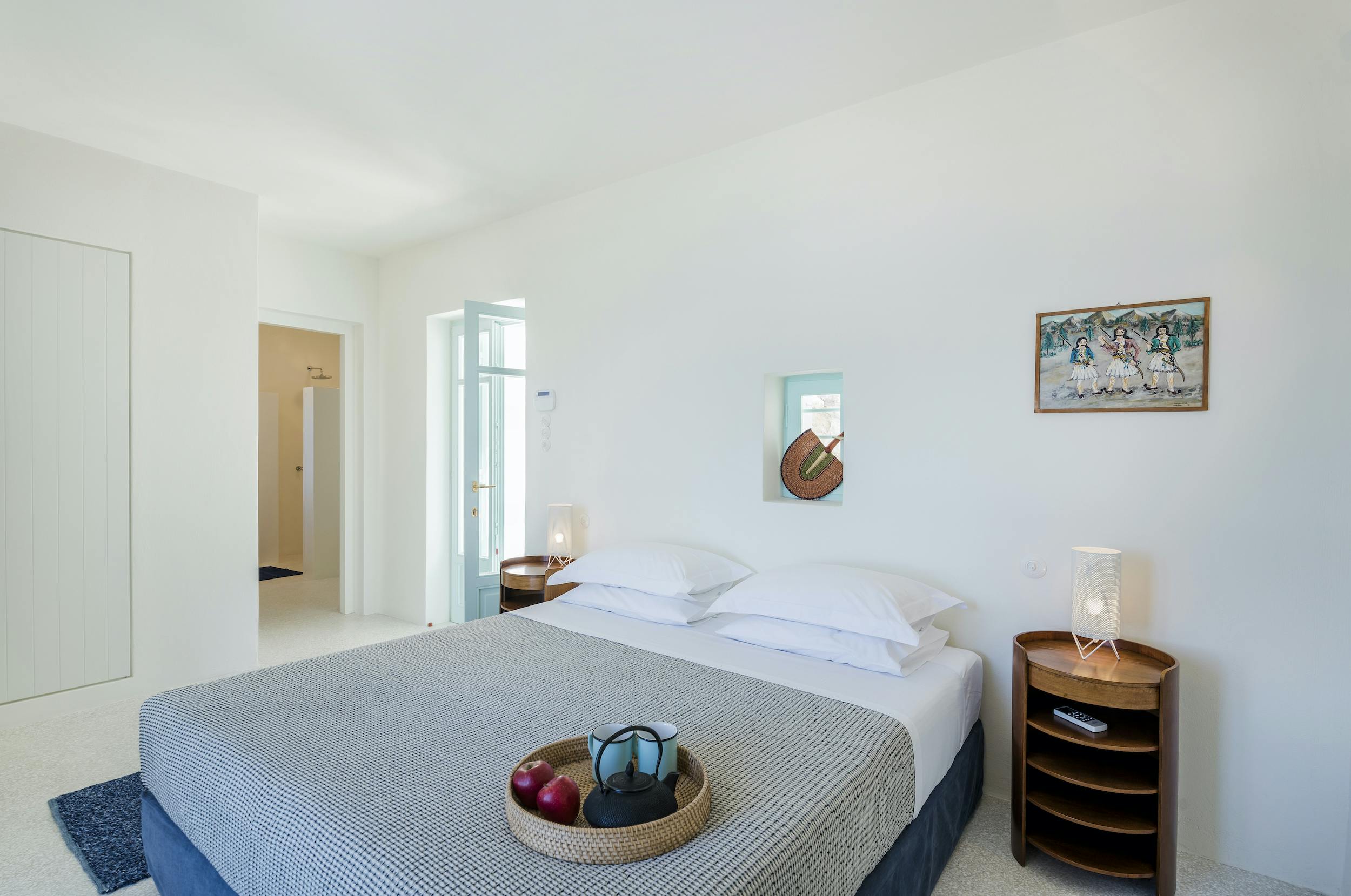 Main House Upper Level – Double room, air conditioning, en-suite bathroom with shower, safe box, Sonos speakers, sea view.