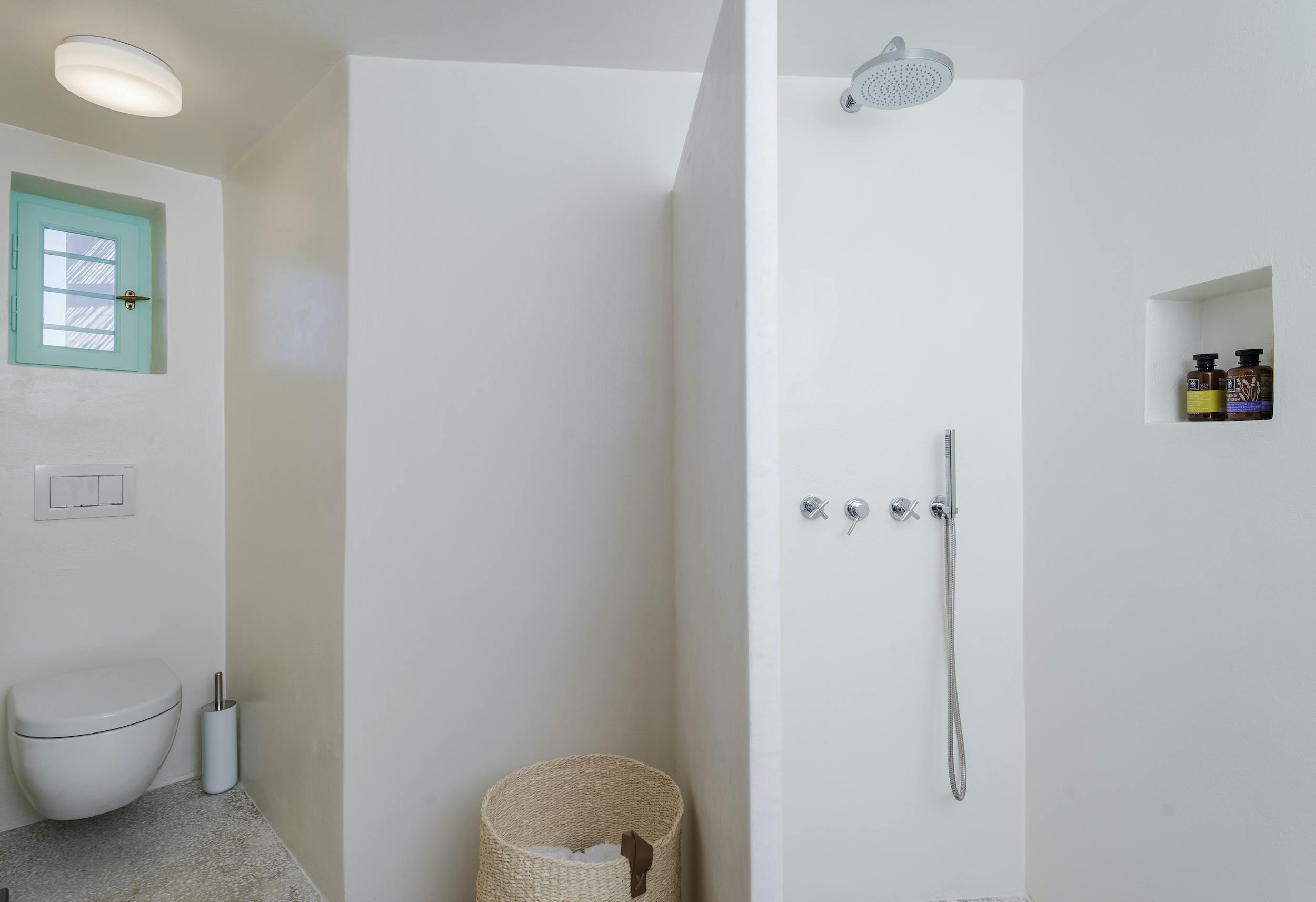 Following the natural slope of the hill, the villa is built on two levels. The top level includes the main living areas, a kitchen with outdoor dining area, the master bedroom and two double bedrooms. The lower level features a double bedroom, a suite and the pool terrace with outdoor lounge and dining area. An independent guest room with twin beds is tucked away in the garden, completely detached from the main house. All bedrooms have sea views and en-suite bathrooms with shower.