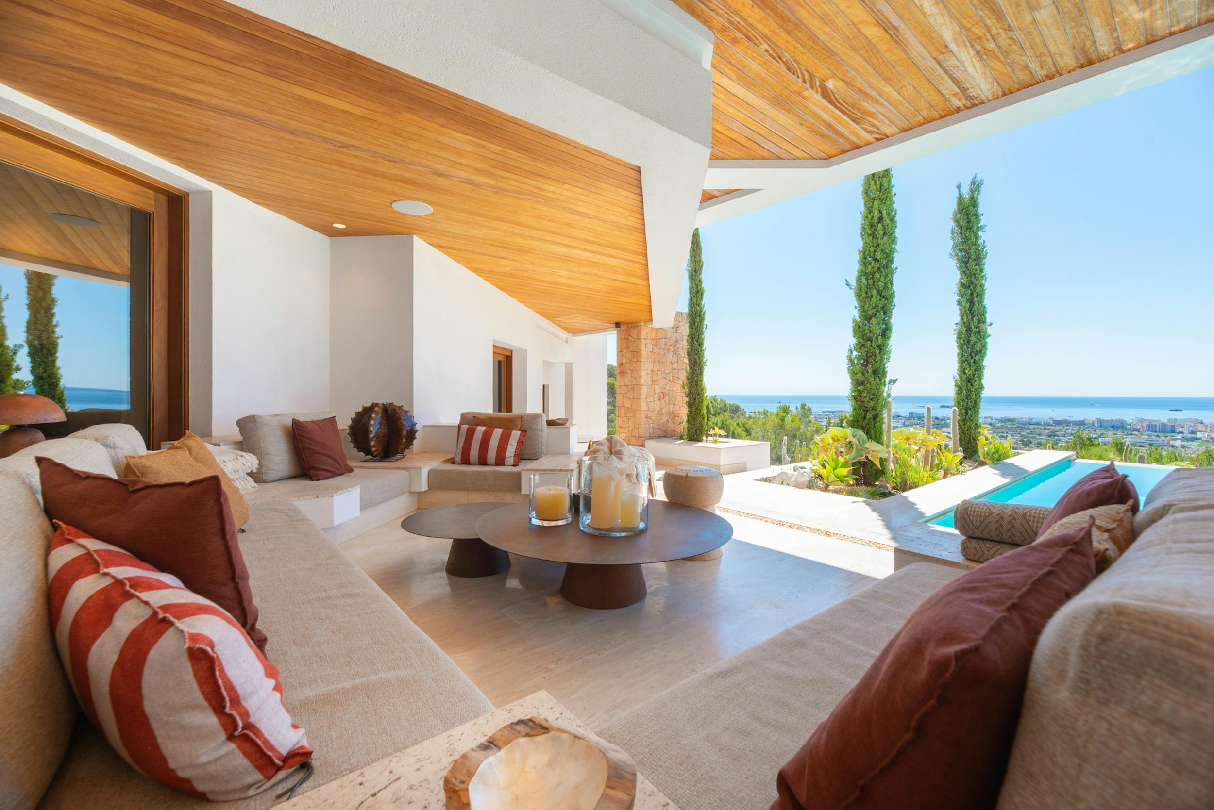 Nestled among pine forests atop the hill, Aurora Verde enjoys seclusion without sacrificing proximity—it’s just a 5-minute drive to Ibiza Town.