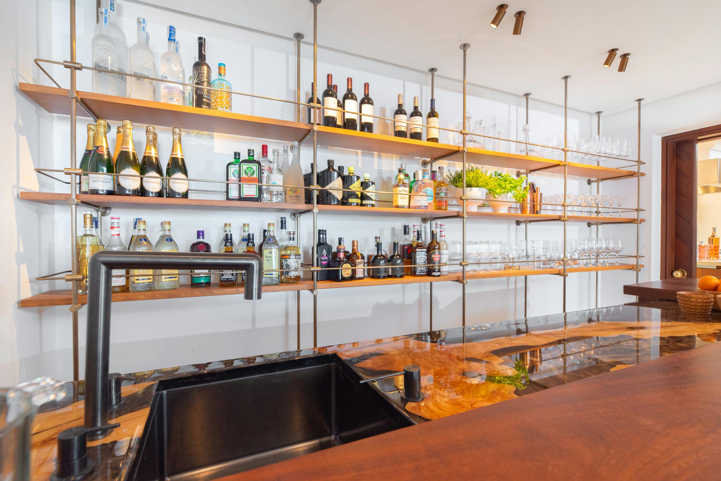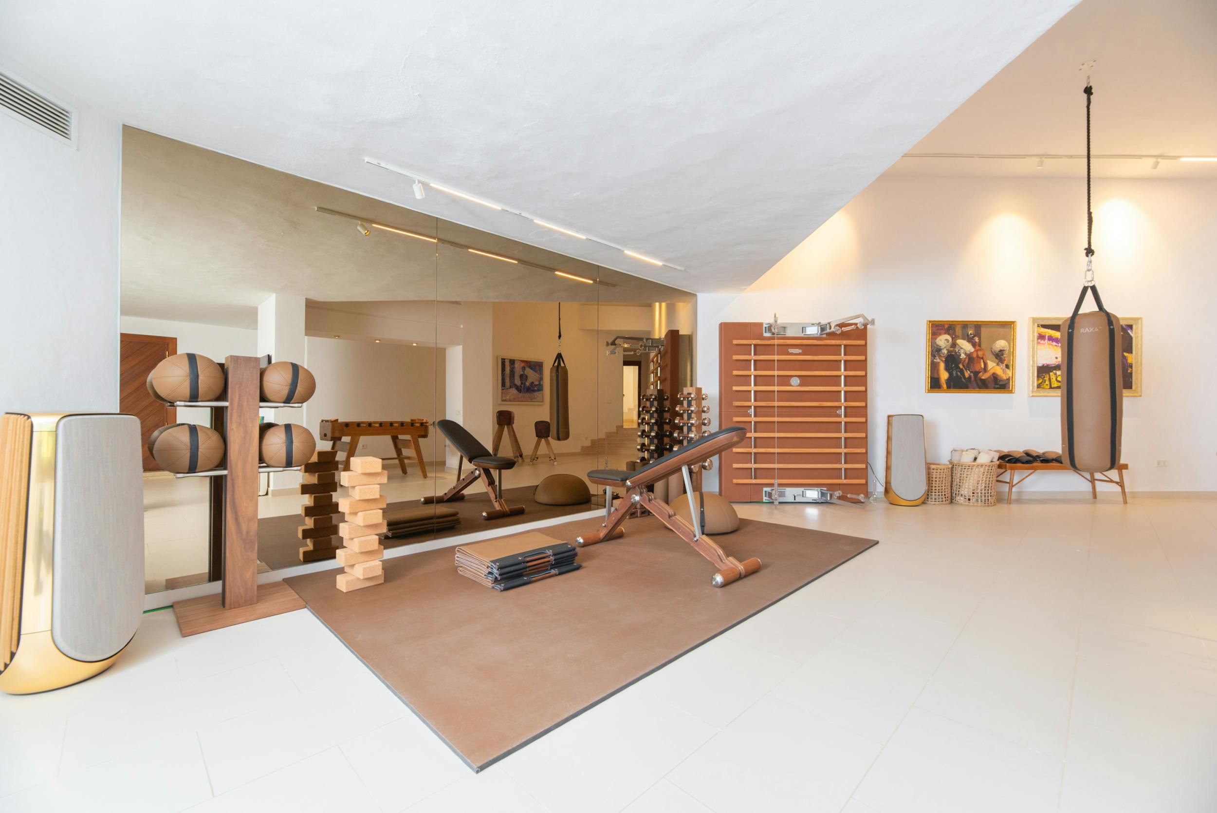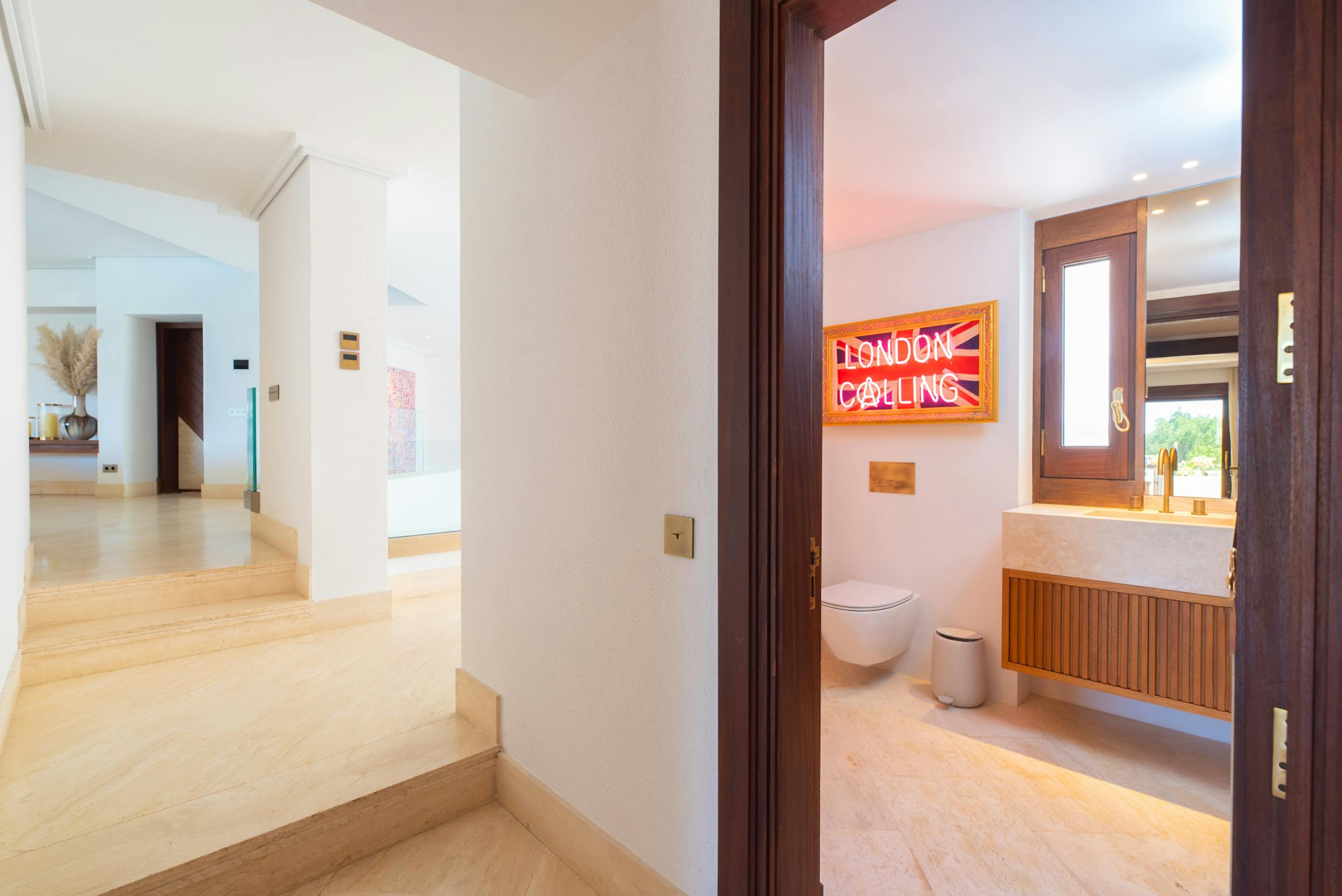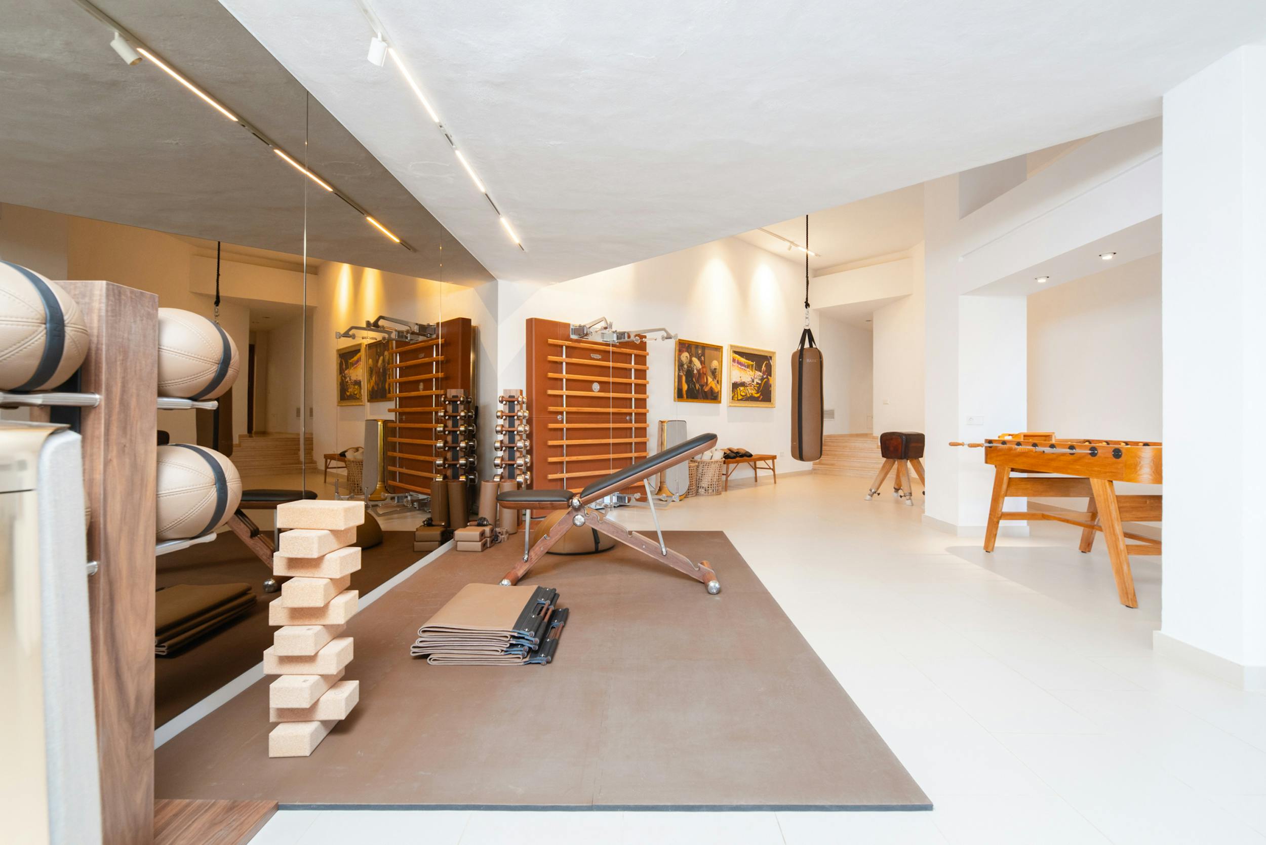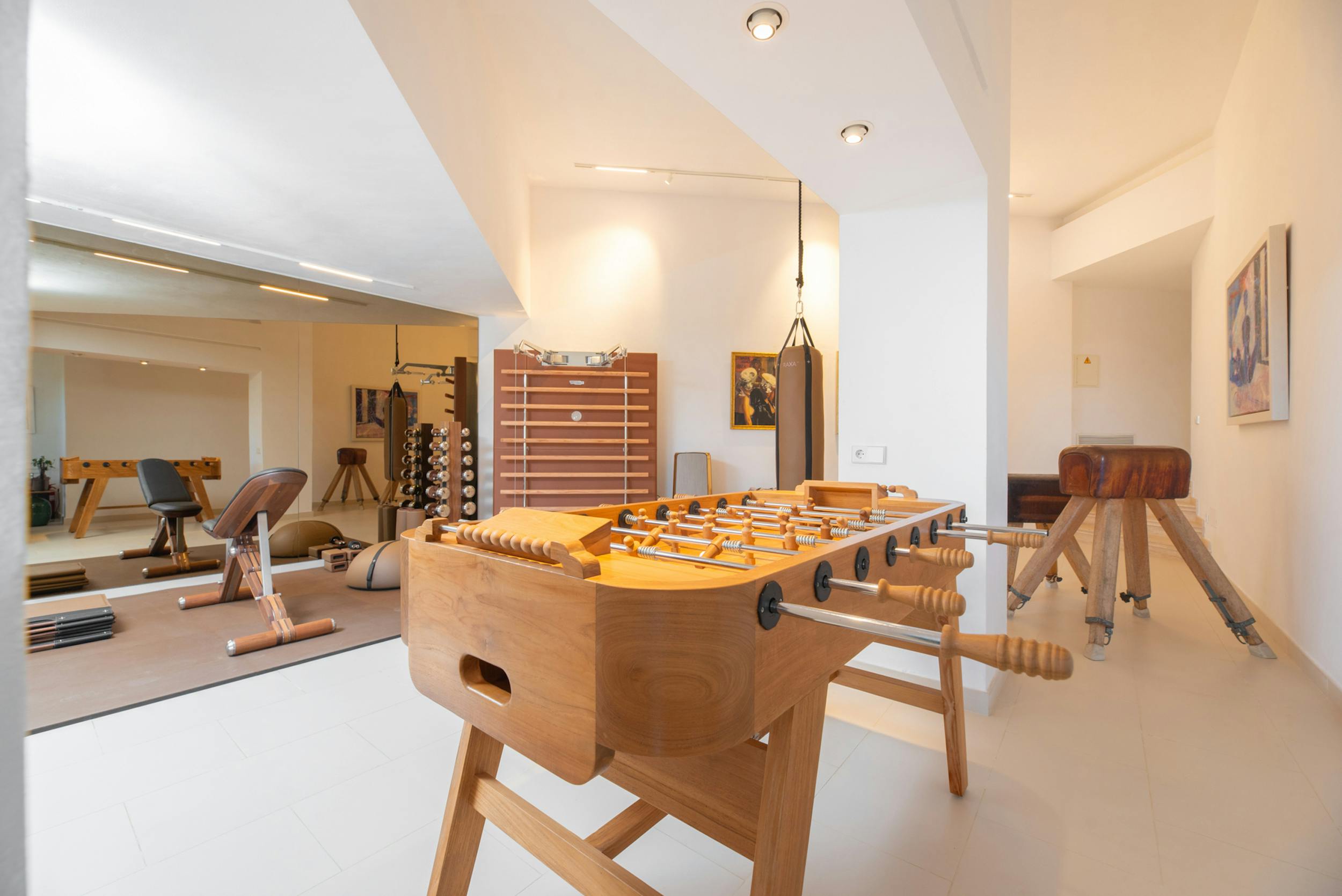 Designed to harmonise panoramic views with intimate retreats, the residence boasts two covered outdoor dining areas, including one beside the pool and another on the decking adjacent to the outdoor kitchen. The sociable open-plan living area, complete with a fully equipped bar, jukebox, and pool table, seamlessly connects with the covered terrace and pool terrace, blurring the lines between indoor and outdoor living. The integration is further enhanced by a fully integrated Airplay music system and floor-standing B&O speakers.