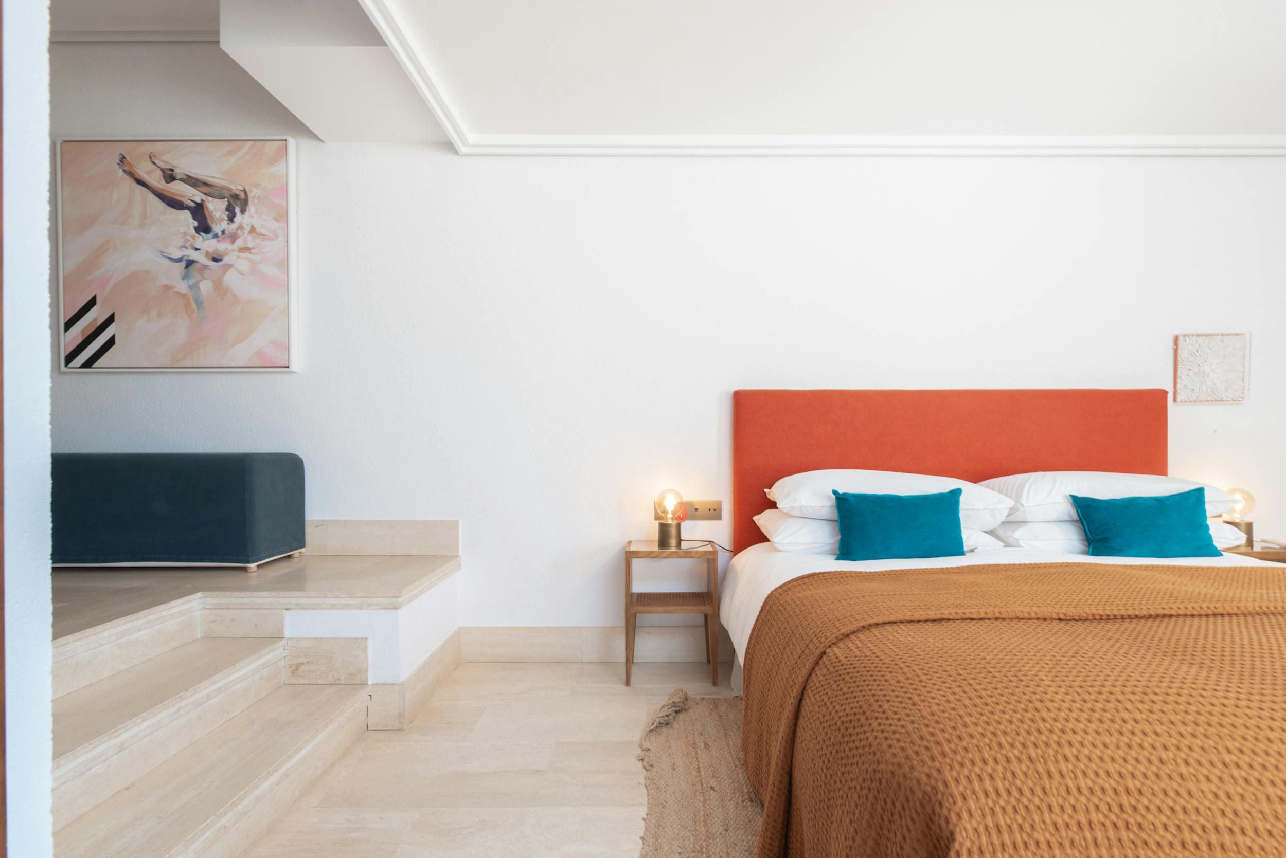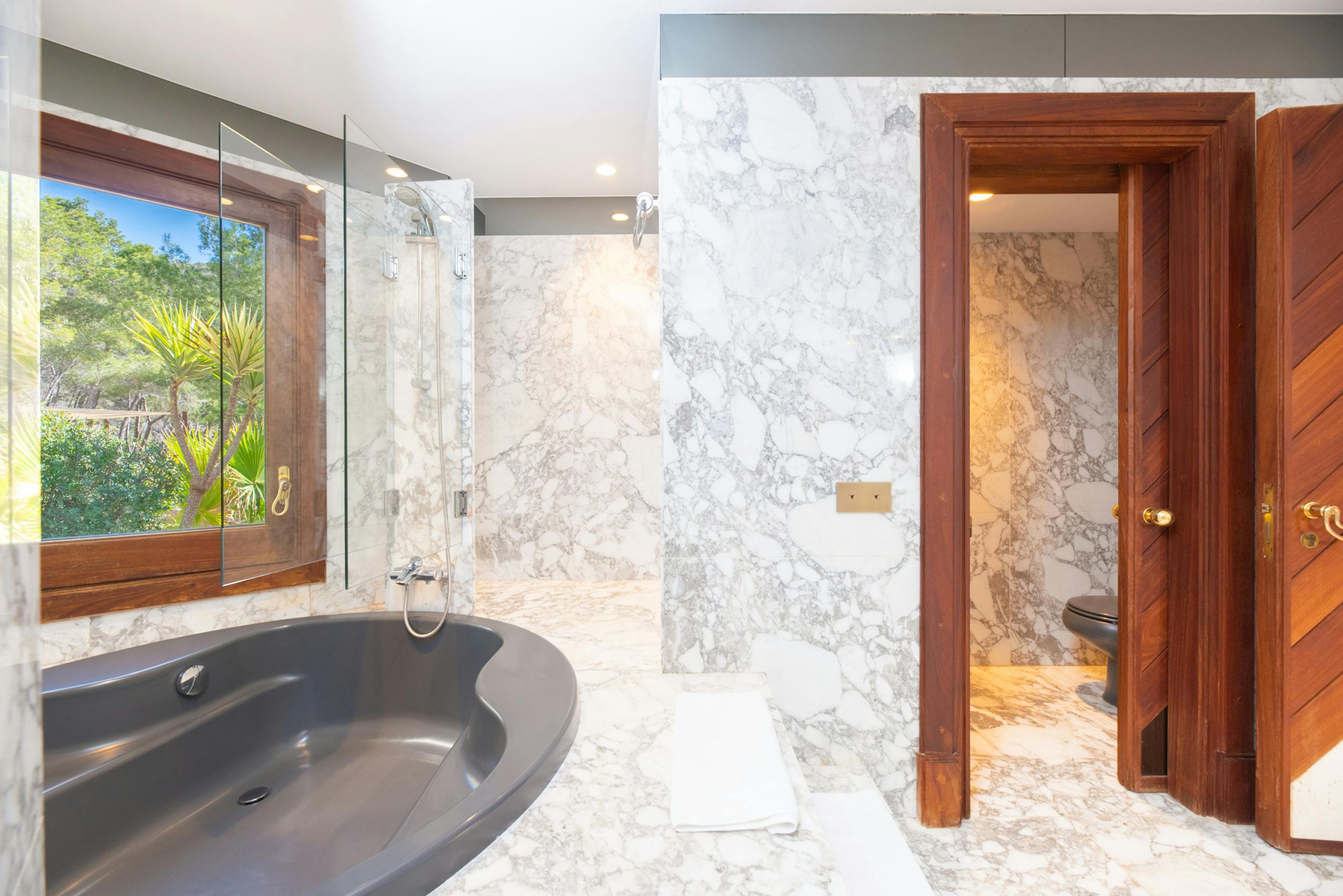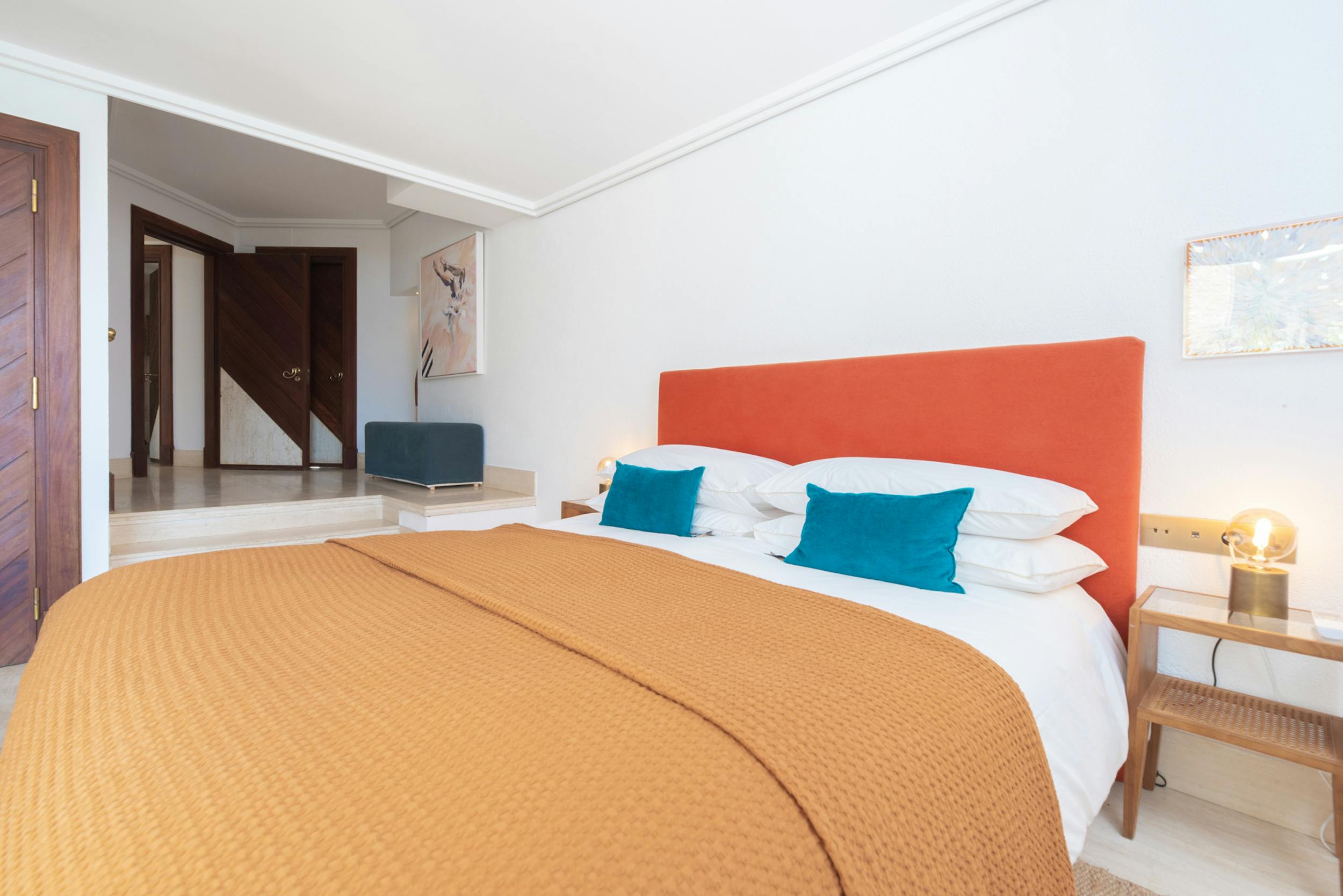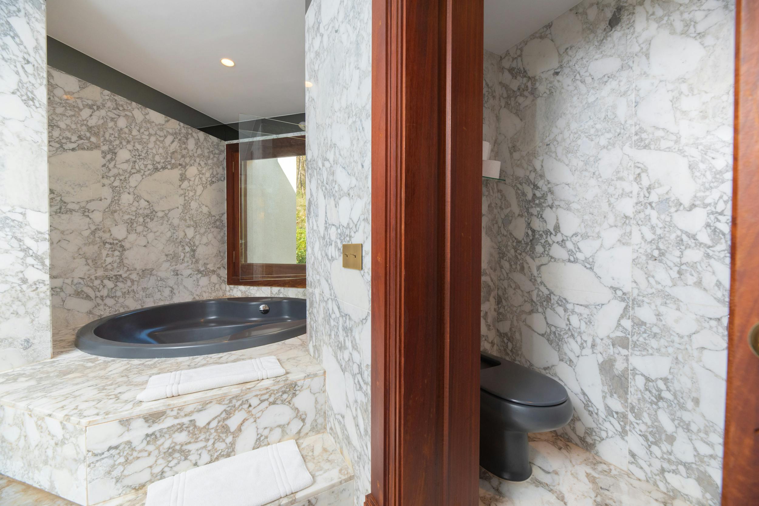 Huge double room, air conditioning, 55″ TV with global channels in every language, en-suite bathroom, dressing room, office space, access to pool terrace