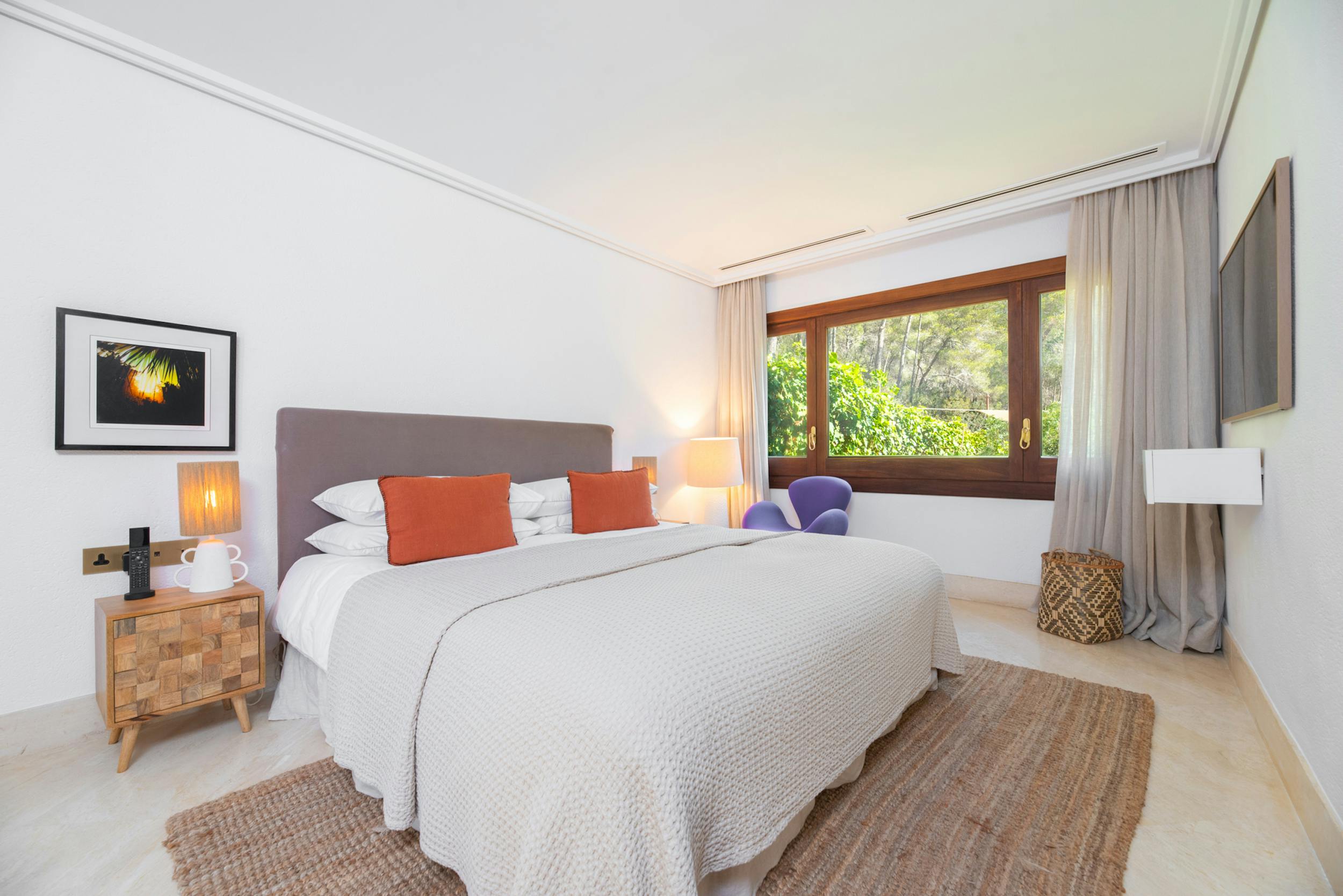 Double room, air conditioning, 55″ TV with global channels in every language, Jack and Jill style en-suite bathroom (shared with bedroom 5)