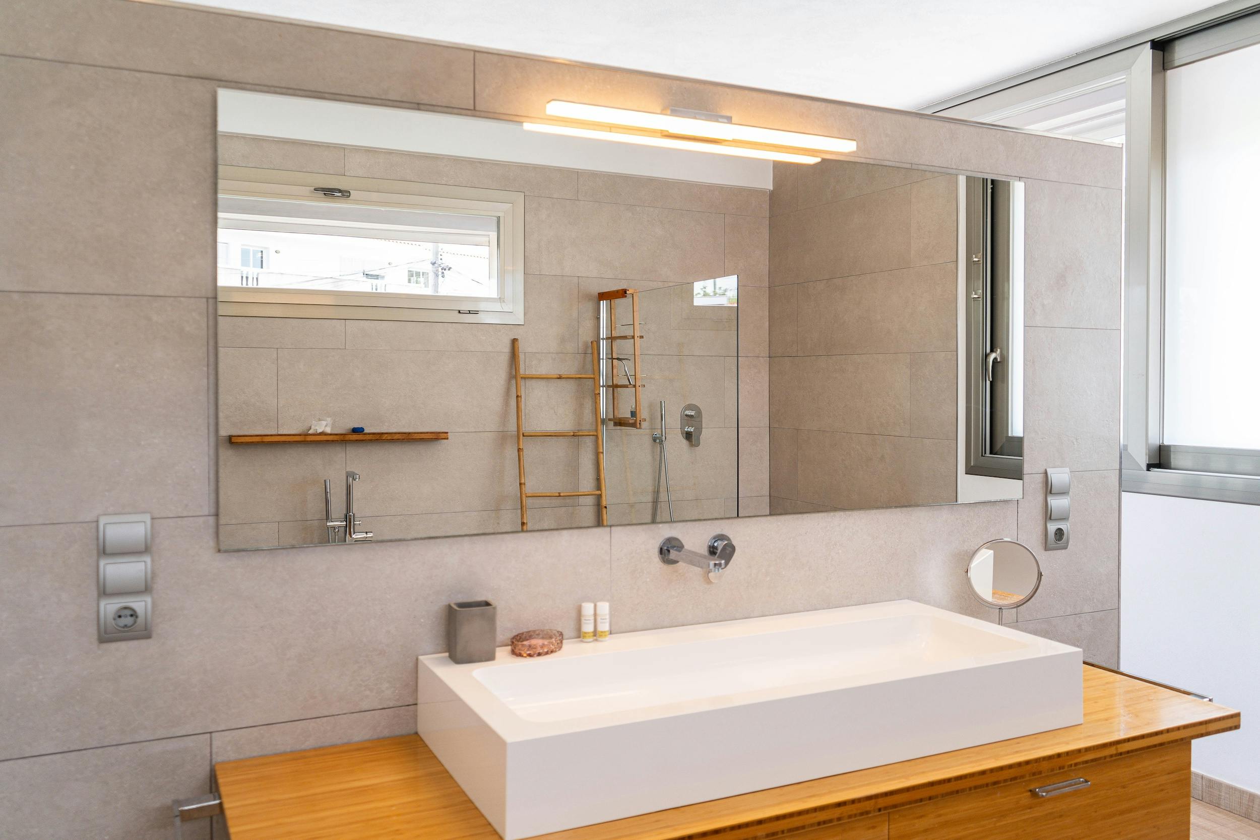 The villa is fully air-conditioned, ensuring your comfort during warm Mediterranean days, and is equipped with both underfloor and central heating for those cooler evenings. Entertainment options abound with televisions and a high-quality sound system. For added security, each bedroom includes a safe deposit box.