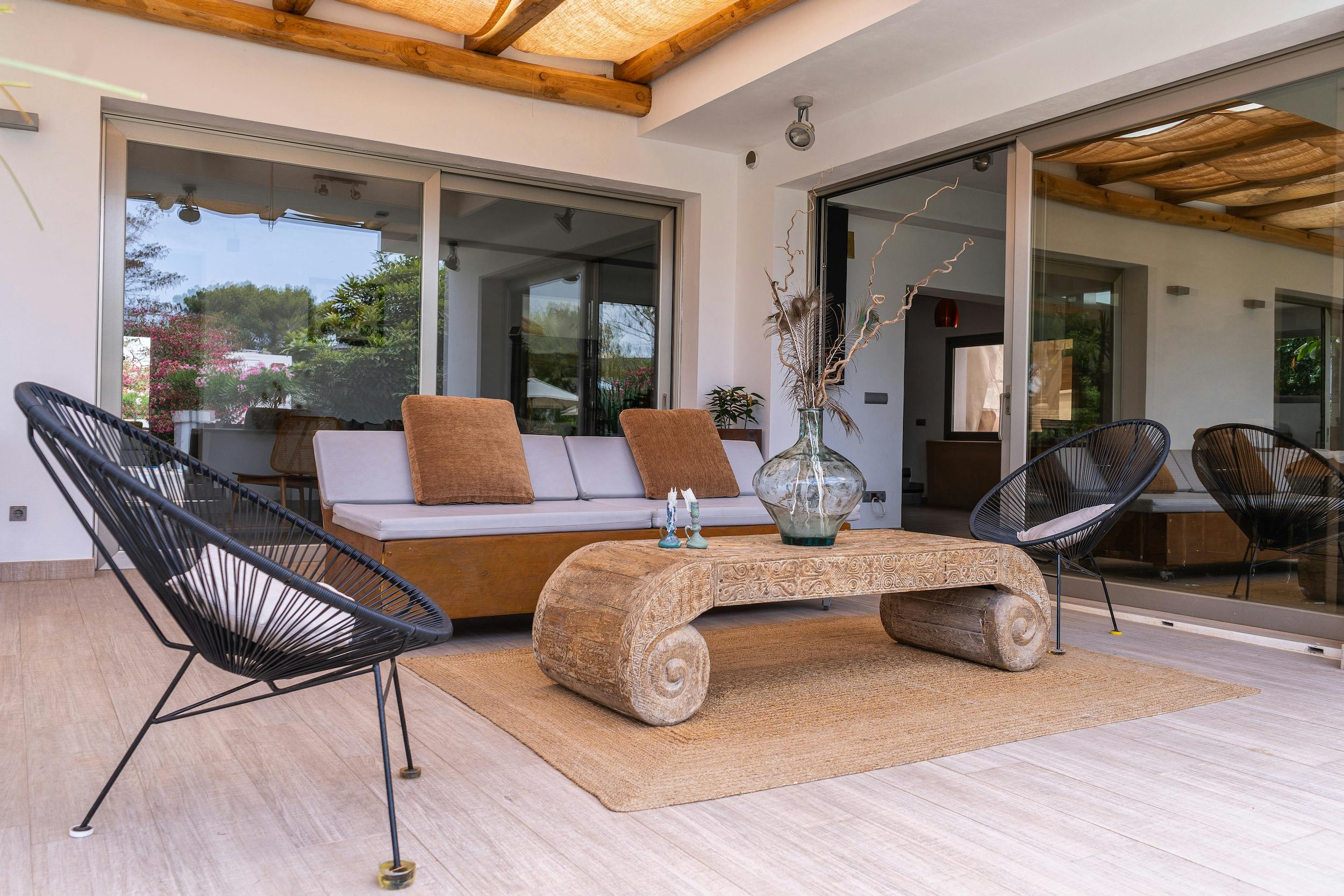 100m from the beach | 50m from the nearest bakery | 7 minutes from the centre of Santa Eularia by car, or 25 min on foot | 12 min from Cala Pada | 15 min from Cala Nova | 25 min from the airport | 22 min from Ibiza Town | 15 min from Las Dalias