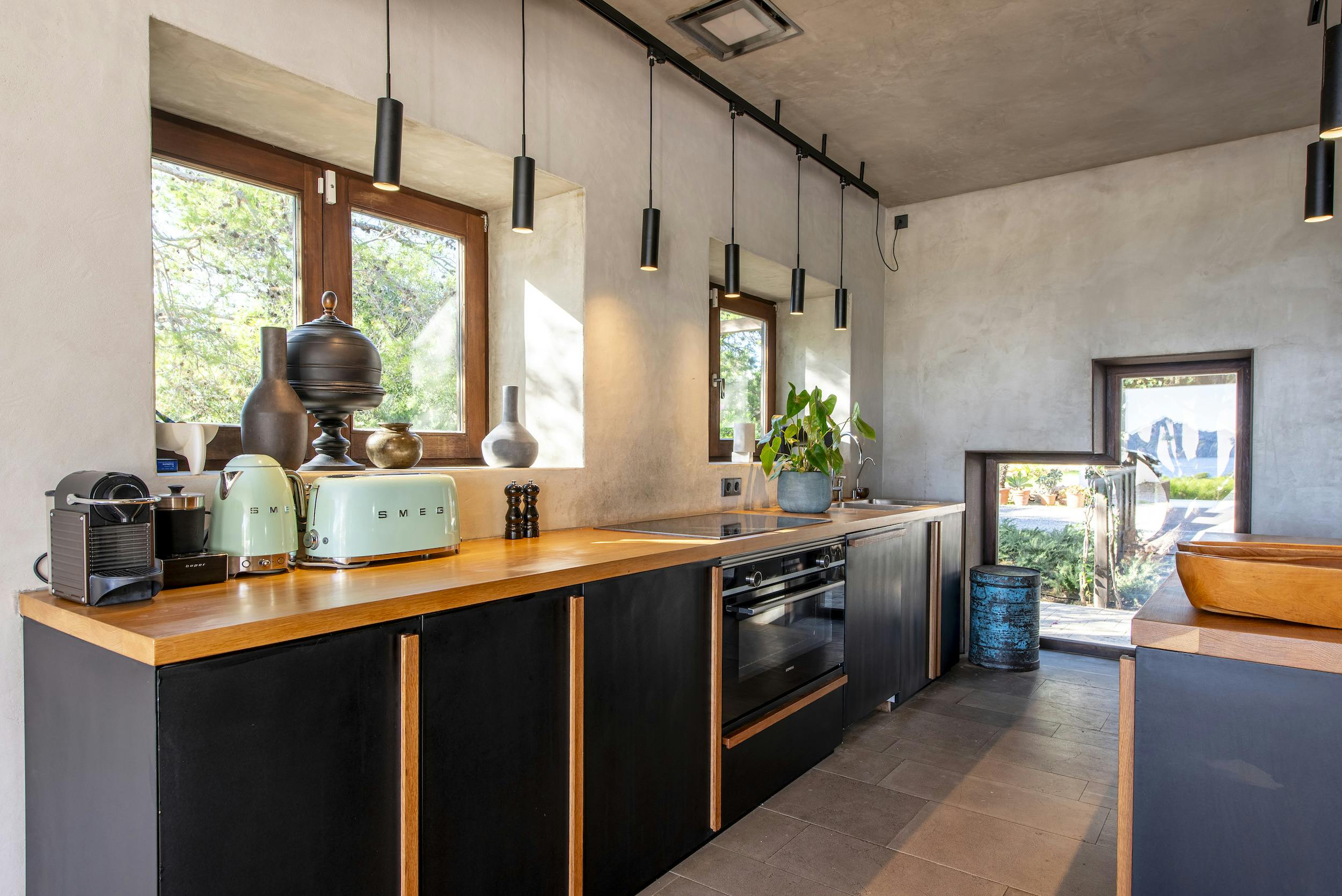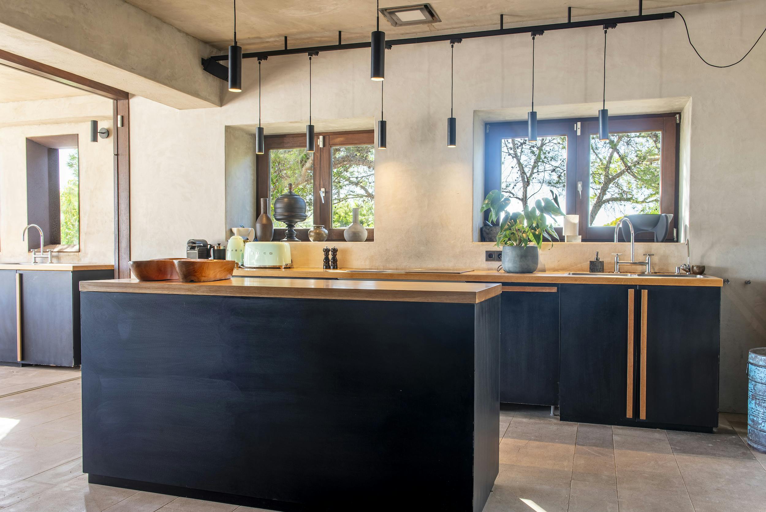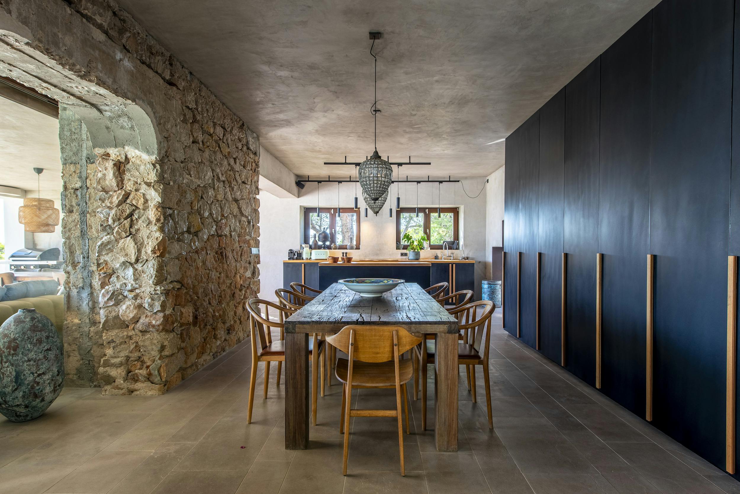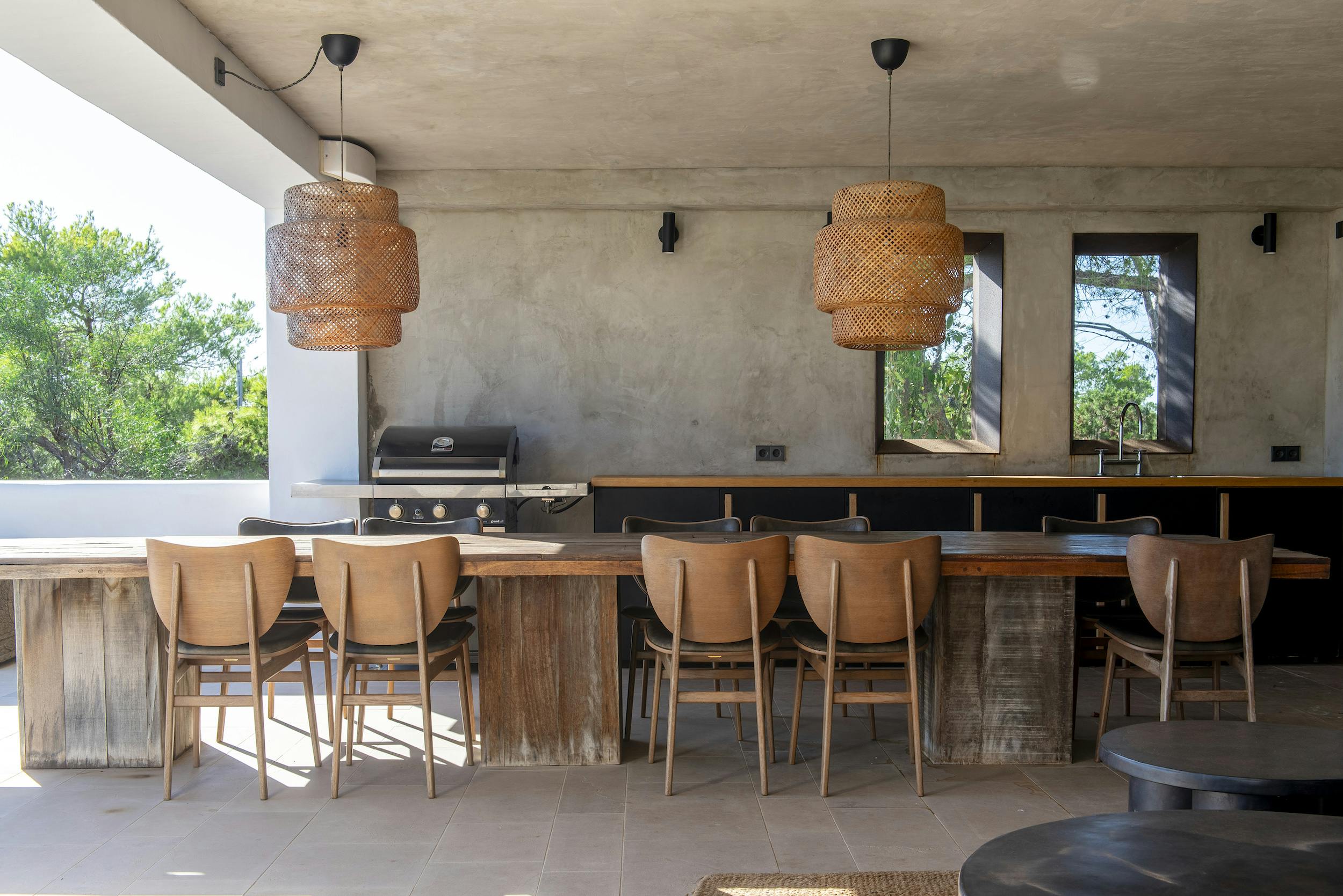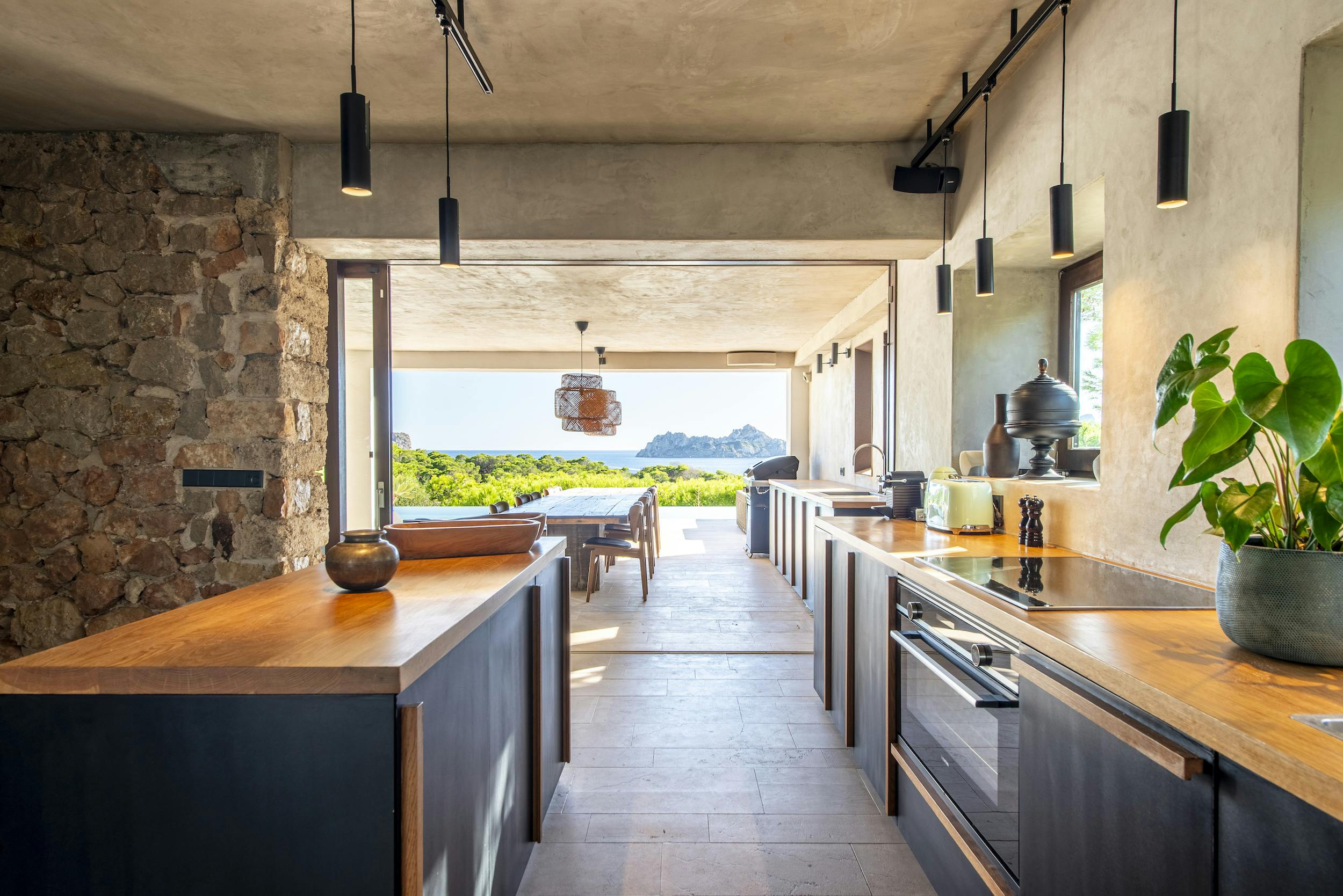 The interior features a fully equipped modern kitchen and 4m long island with indoor dining facilities for 10 people.