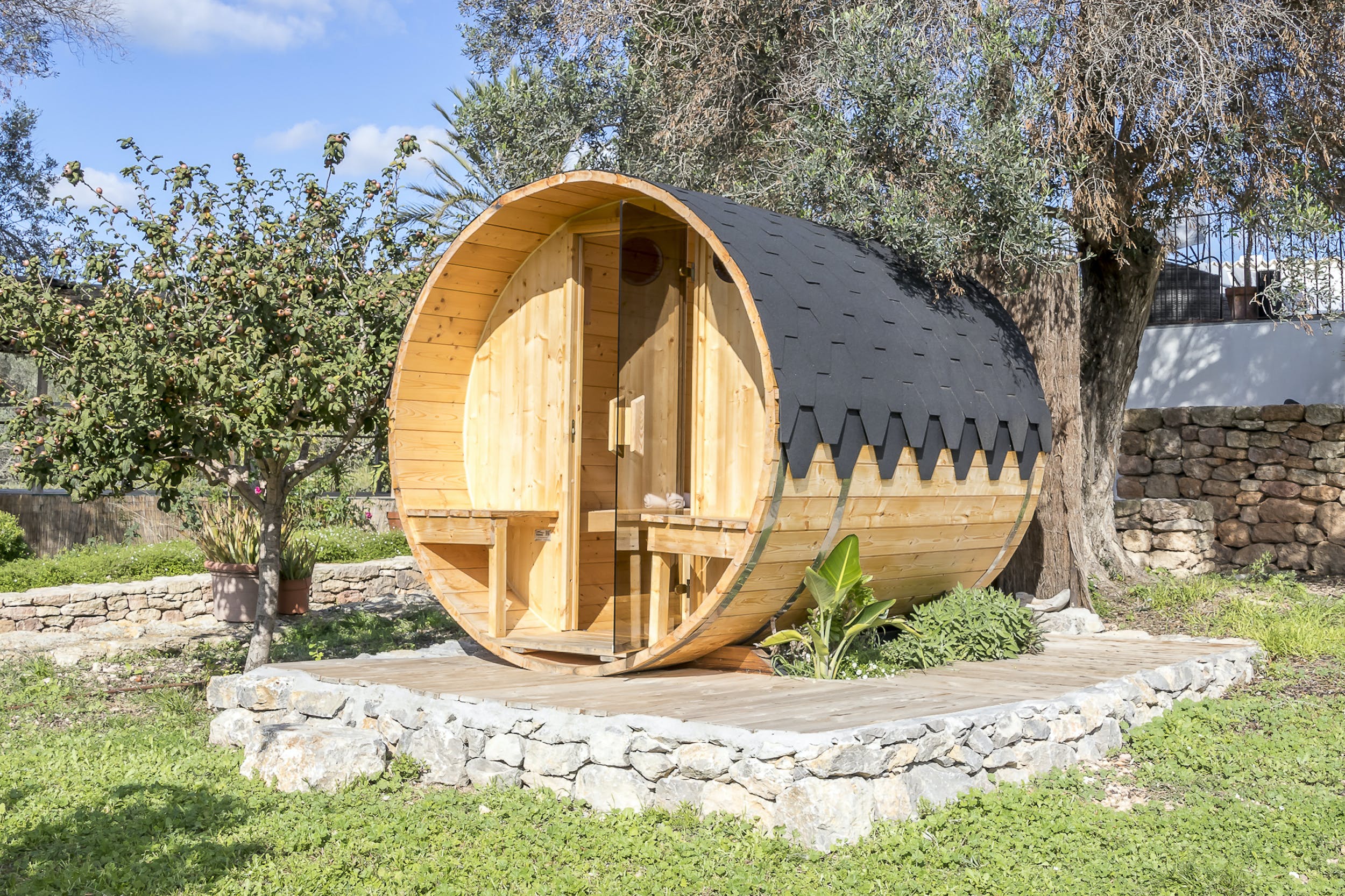 The dedicated 70 m2 yoga space with sunset views will keep you energized throughout your vacation (a private yoga teacher can be hired to come during your stay, at an additional cost). You can also use the outdoor gym located next to the yoga platform, not to mention the new barrel sauna.