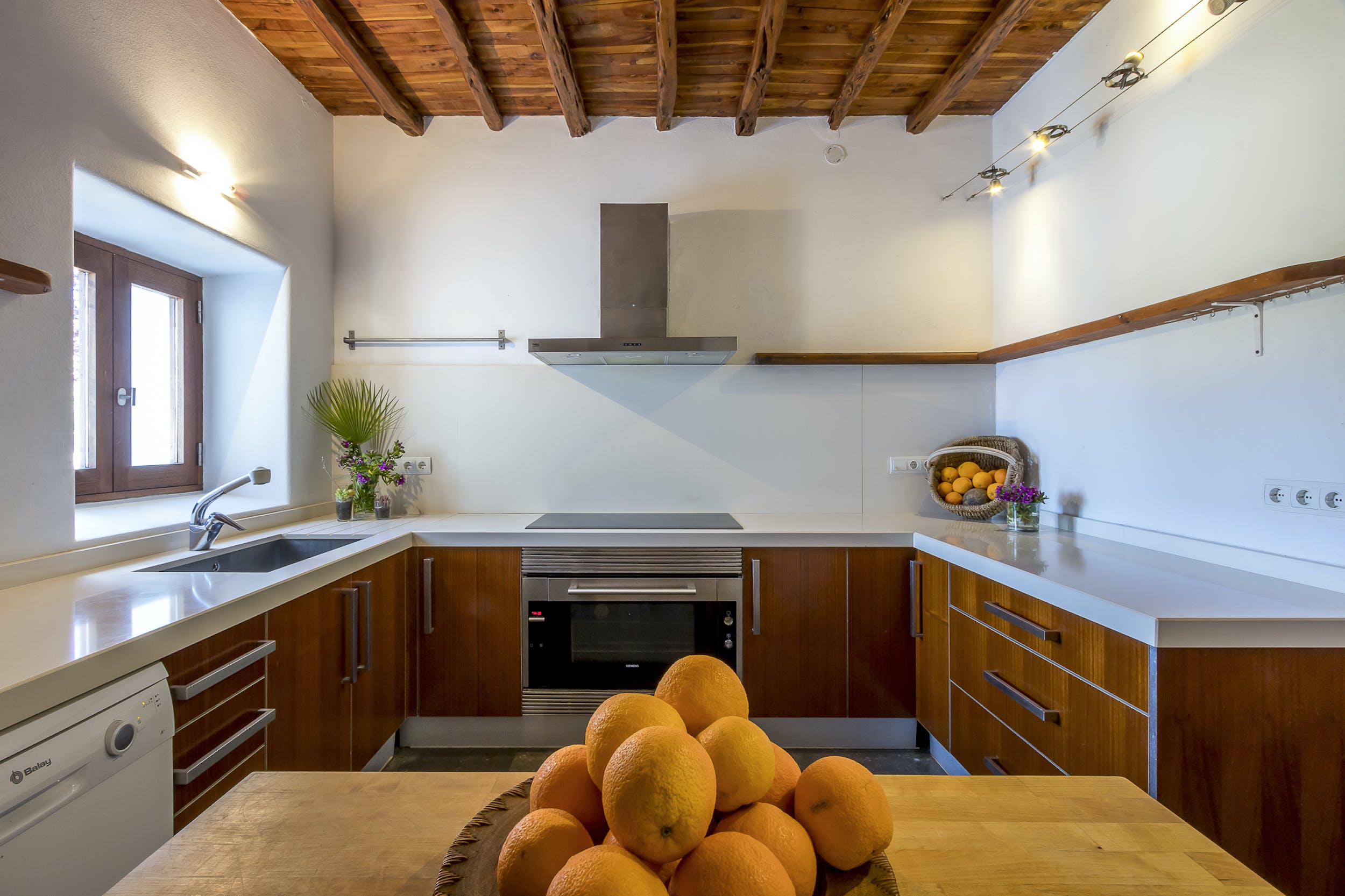 All the facilities of the house are top quality and include air conditioning and a well-equipped modern kitchen. The main house has a total of 5 double bedrooms, 3 of which have en-suite bathrooms and one is a family room consisting of 2 bedrooms and 1 bathroom. In addition there are 2 bedrooms in the garden with private terrace and sunset views, both en-suite.