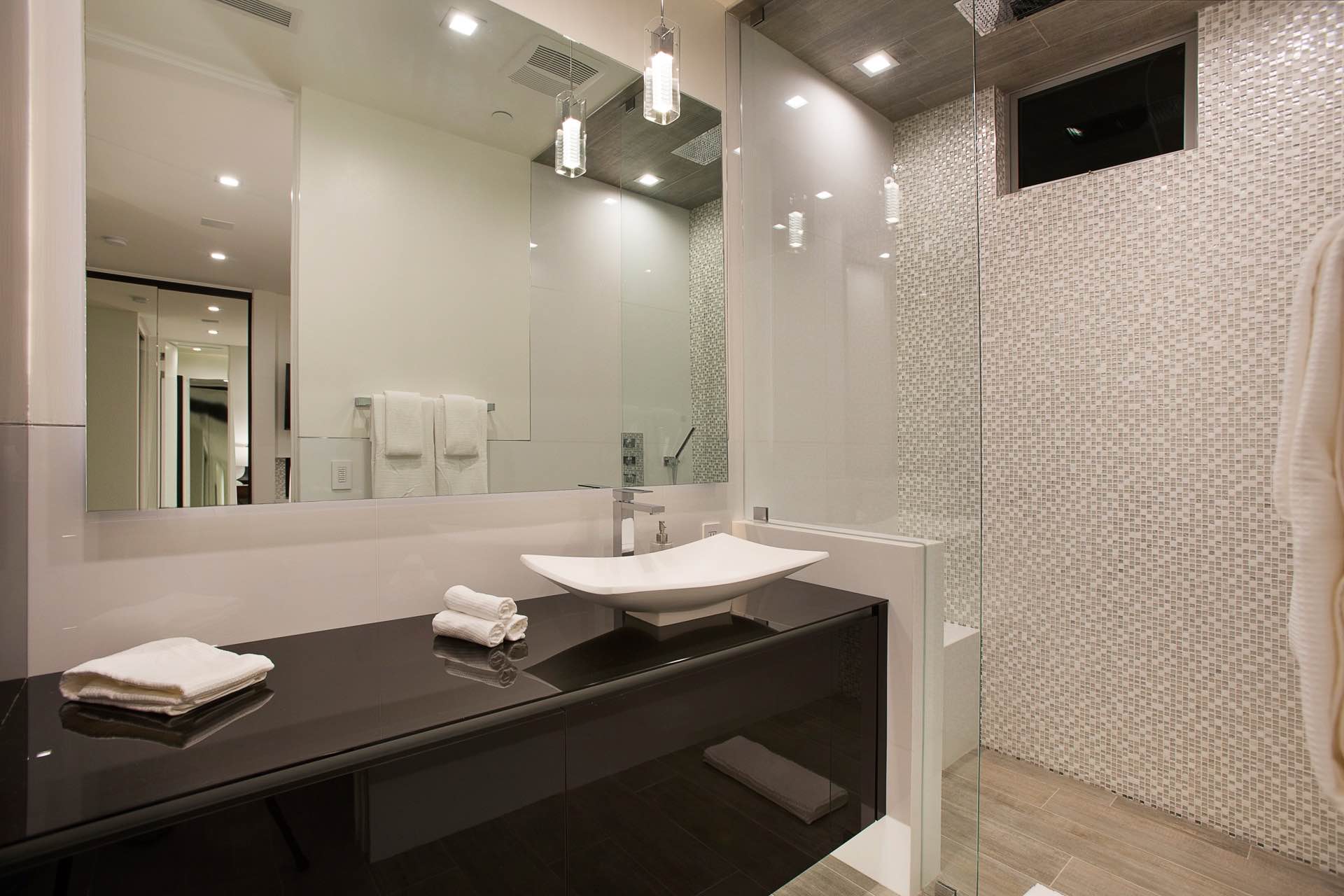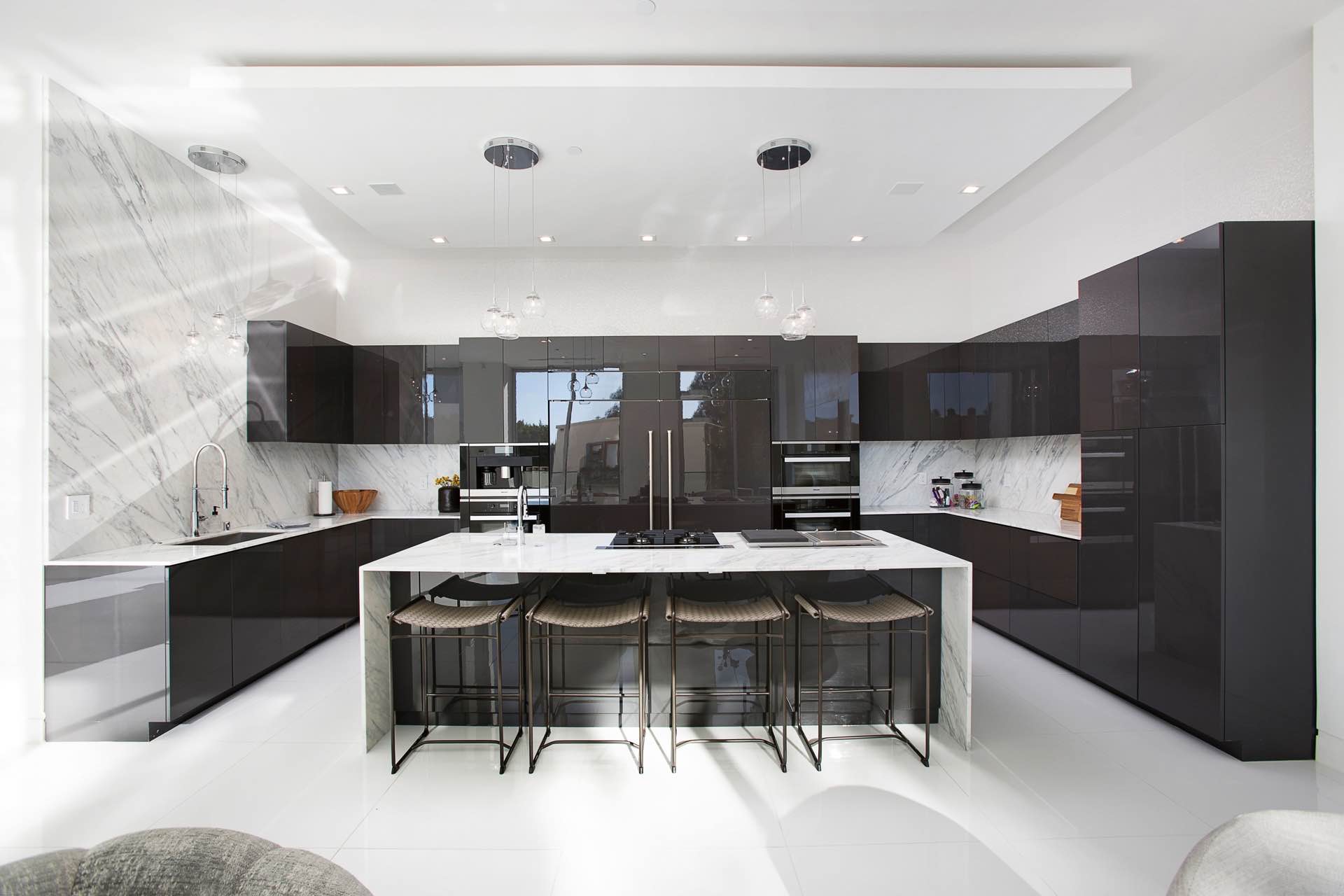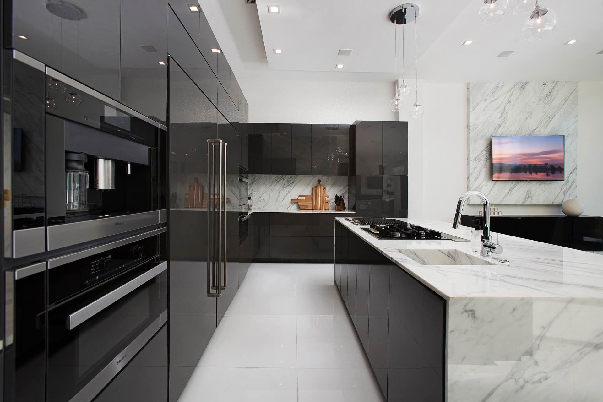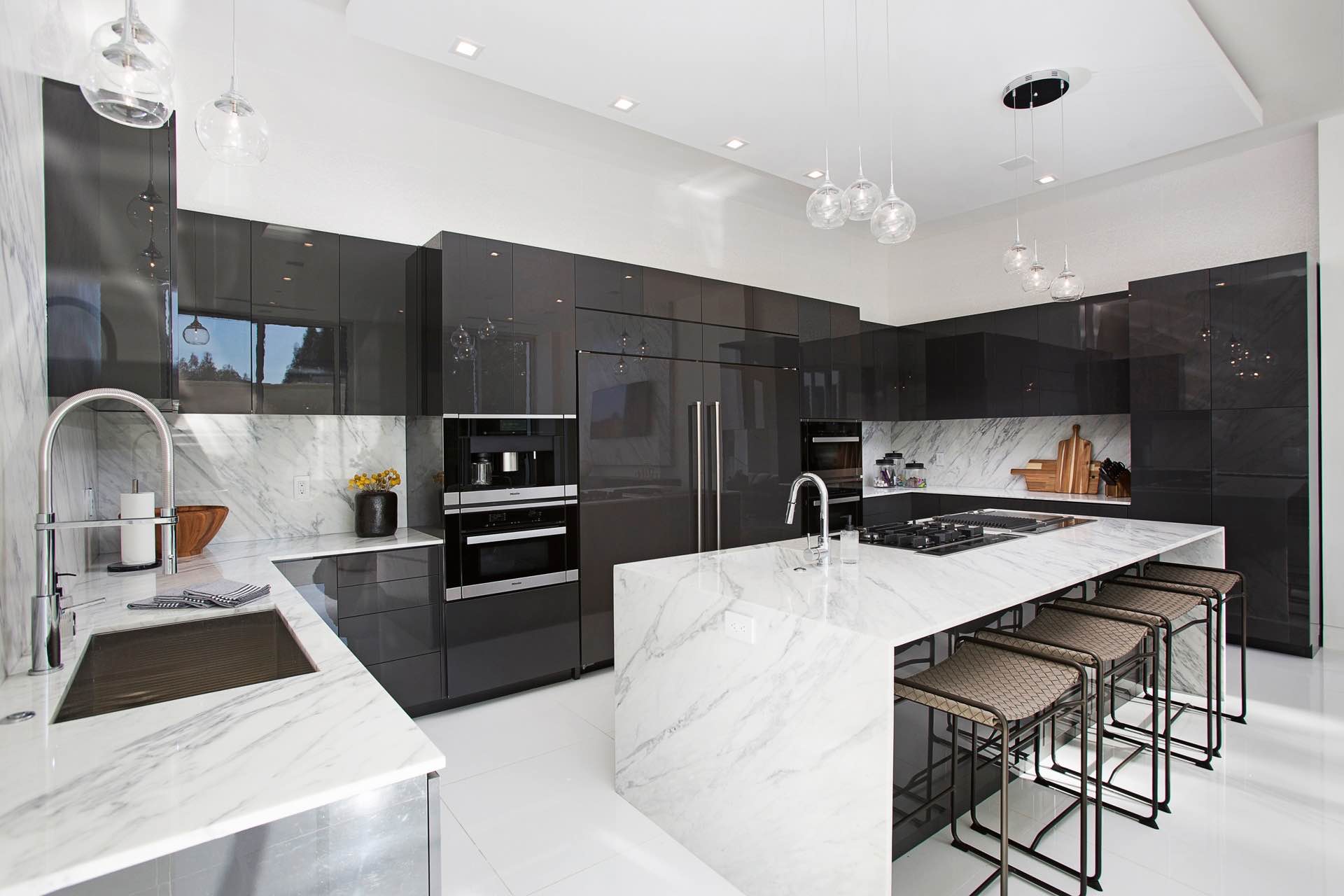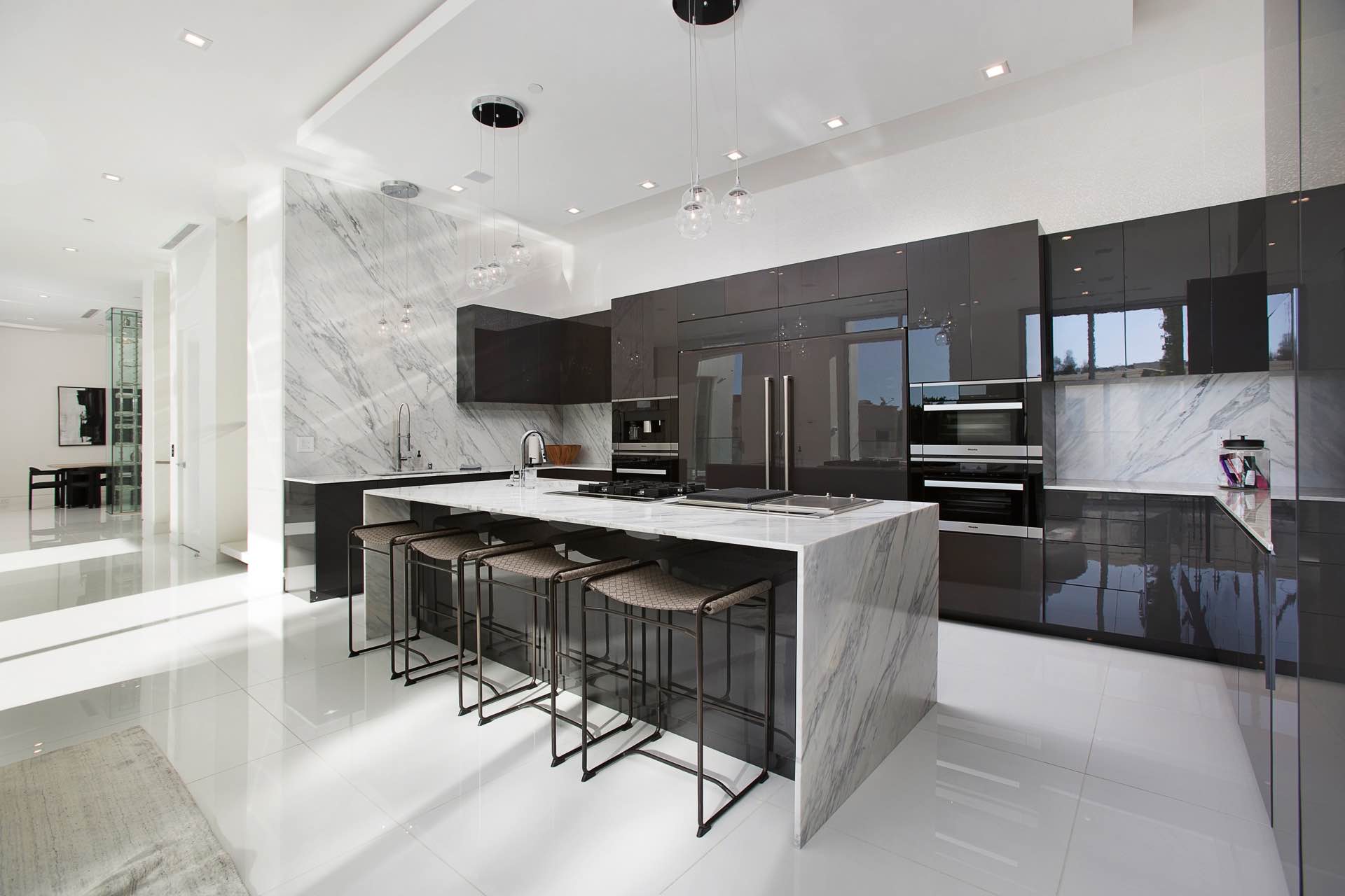 Elegant designer-inspired details shine alongside modern amenities throughout 6,400 sq ft. The two level rooftop features a steam shower, built-in BBQ, bar, 20 ft waterfall, infinity pool and jacuzzi. Additional interior amenities include spacious bedrooms, bathrooms, home theatre and bar, 2 laundry areas, garage, elevator to the rooftop and a chefs kitchen with Miele appliances.