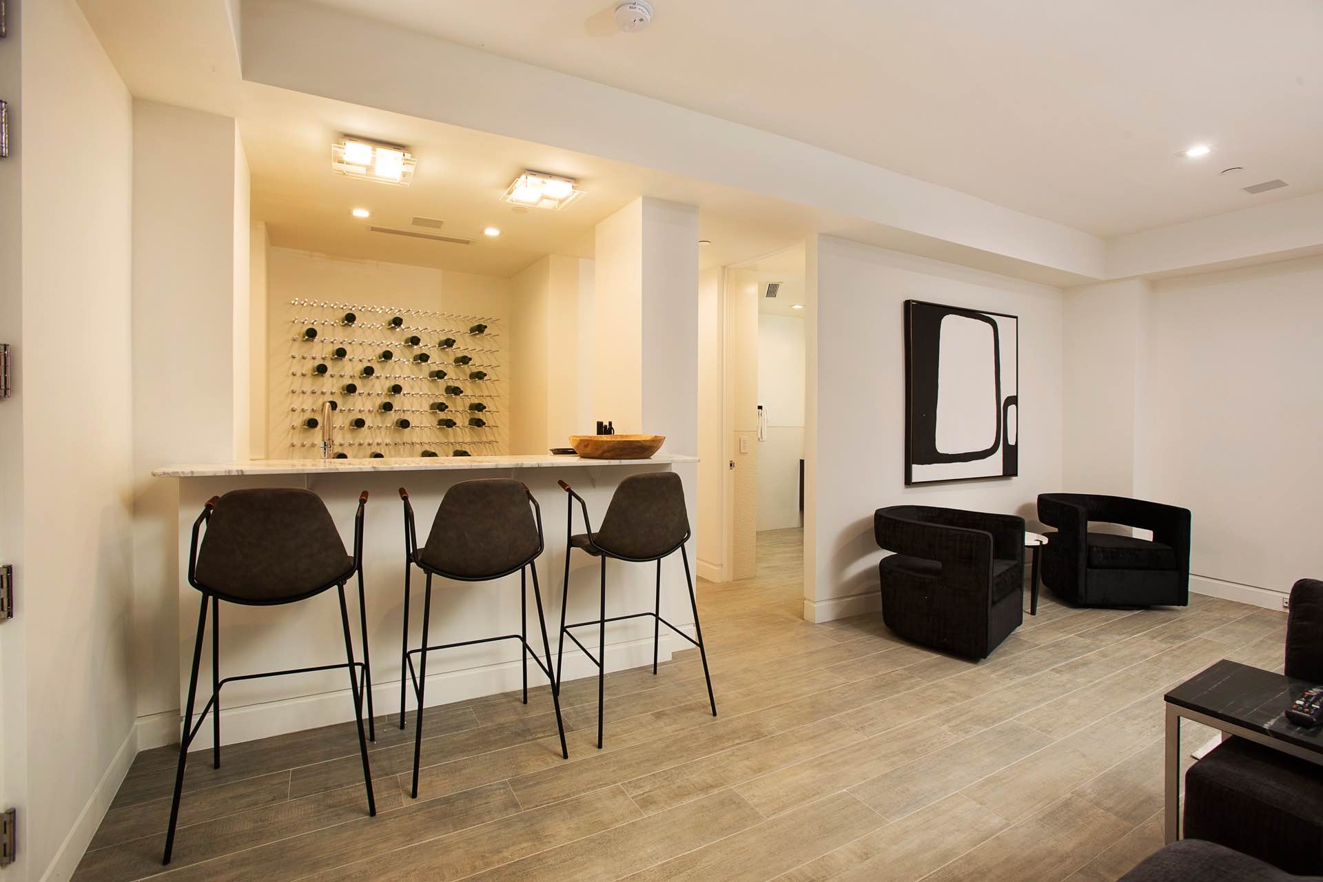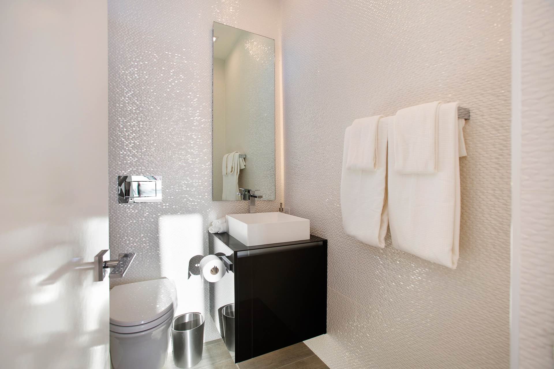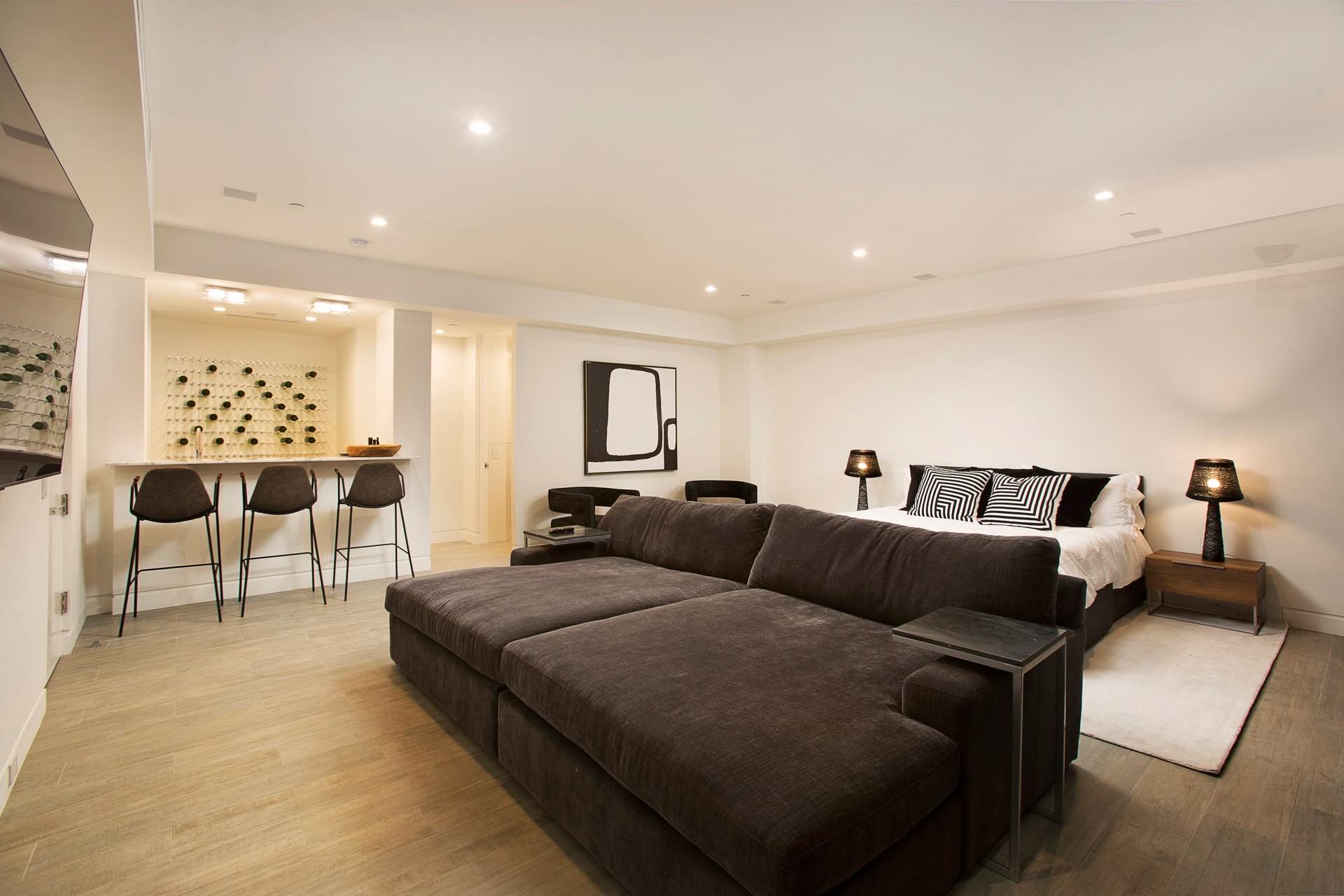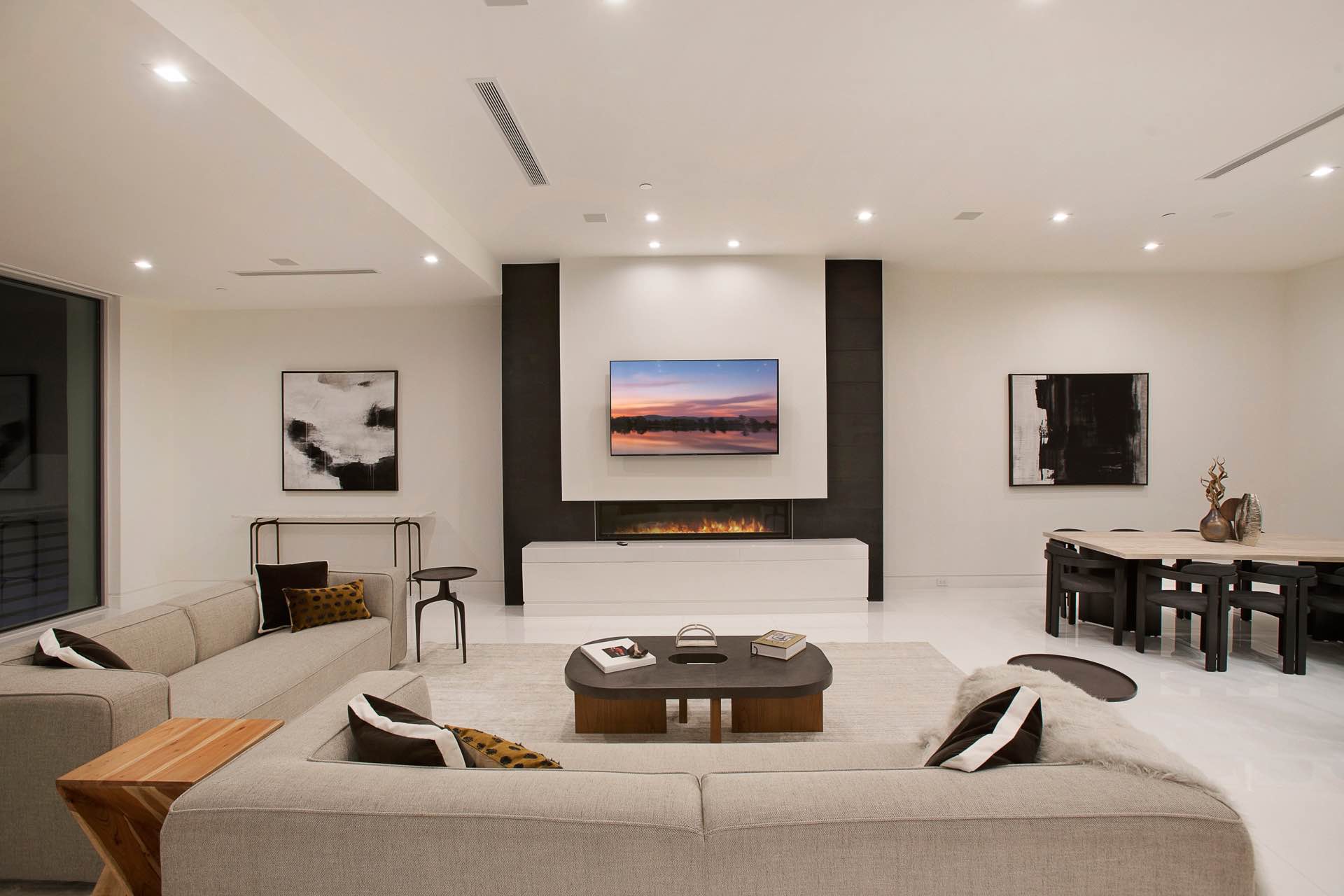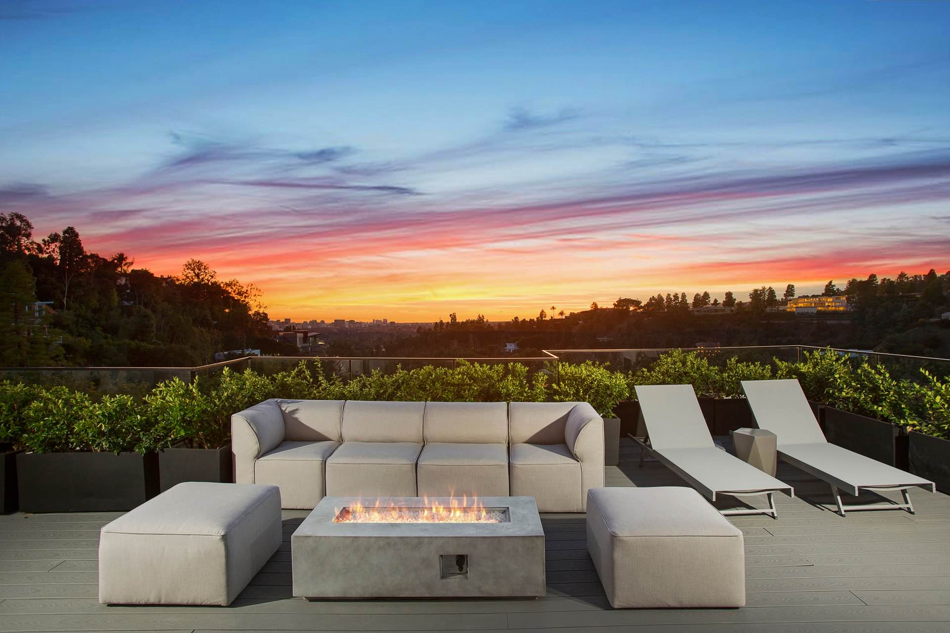 This architectural masterpiece in the heart of Beverly Hills boasts an open concept floor plan and floor-to-ceiling smart glass doors that allow a lot of natural light in and ensure you can enjoy with panoramic city lights and ocean views.