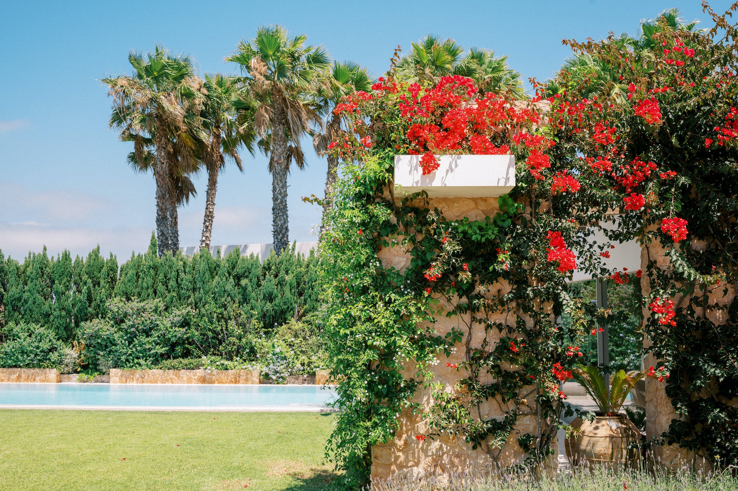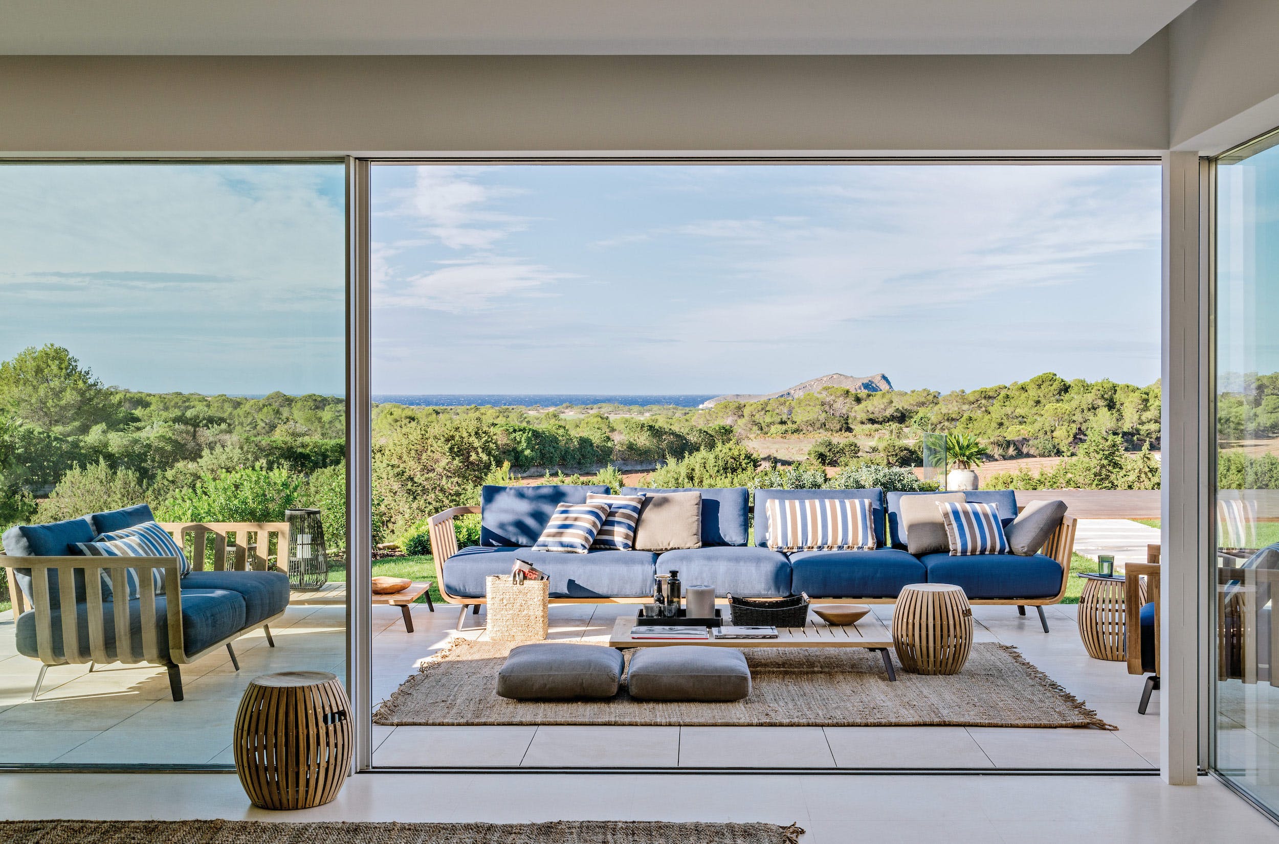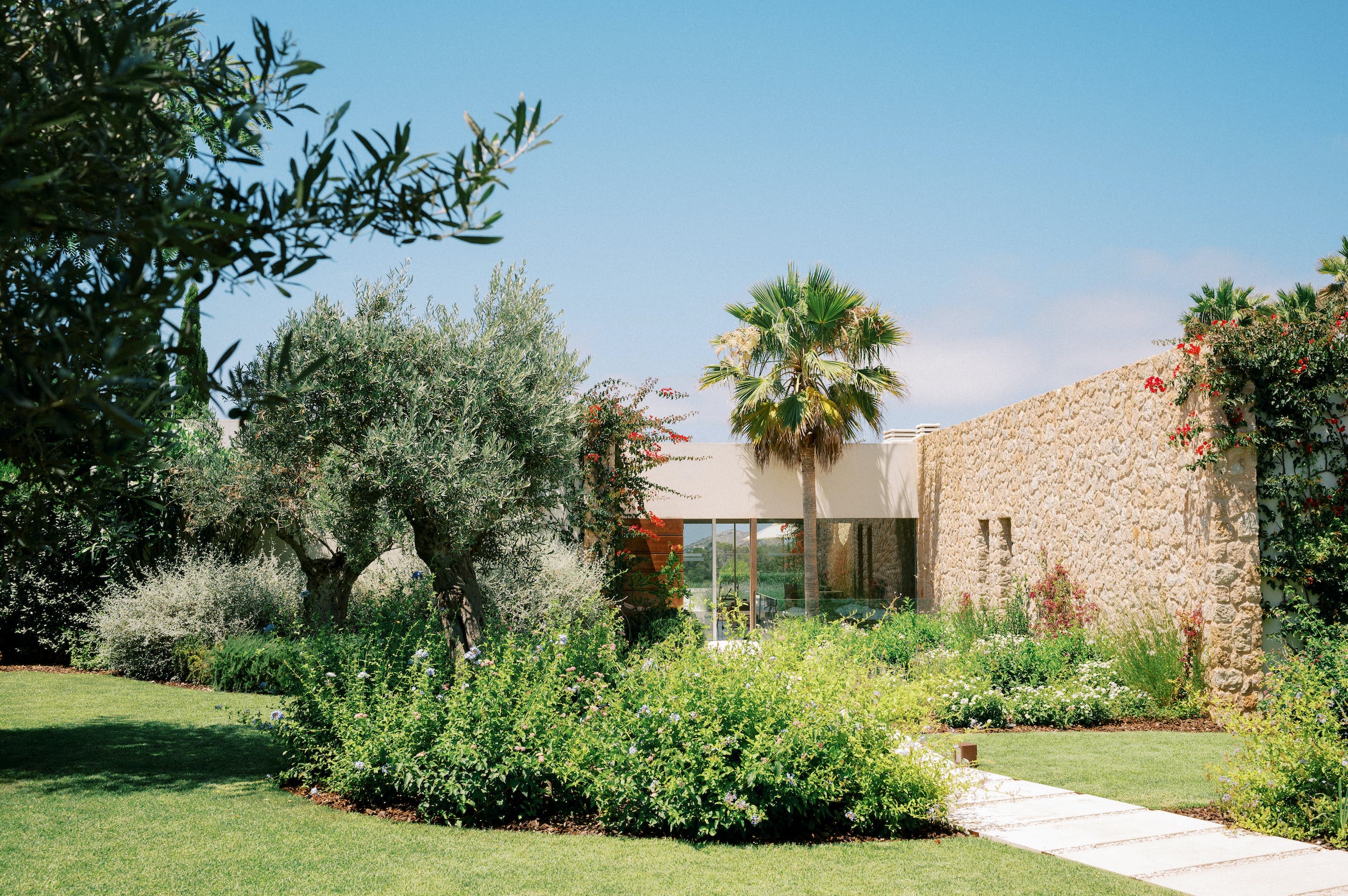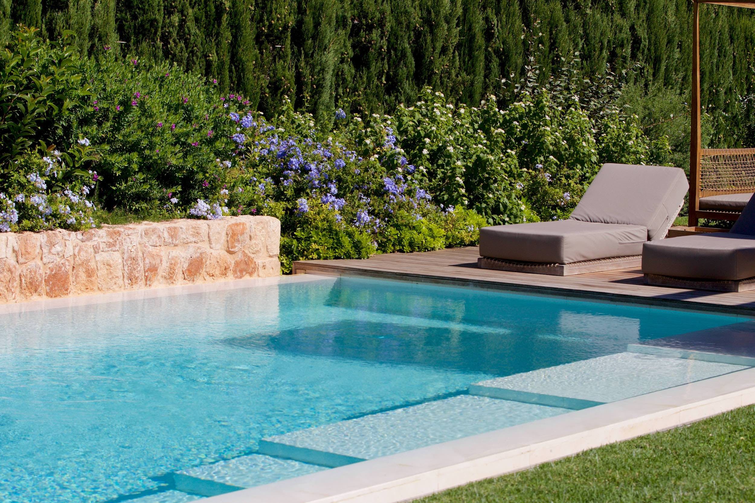 Amongst the manicured lawns and flower-filled gardens, you’ll discover a myriad of spaces in which to chill out or soak up the glorious Ibizan sunshine, plus a summer kitchen with barbeque.