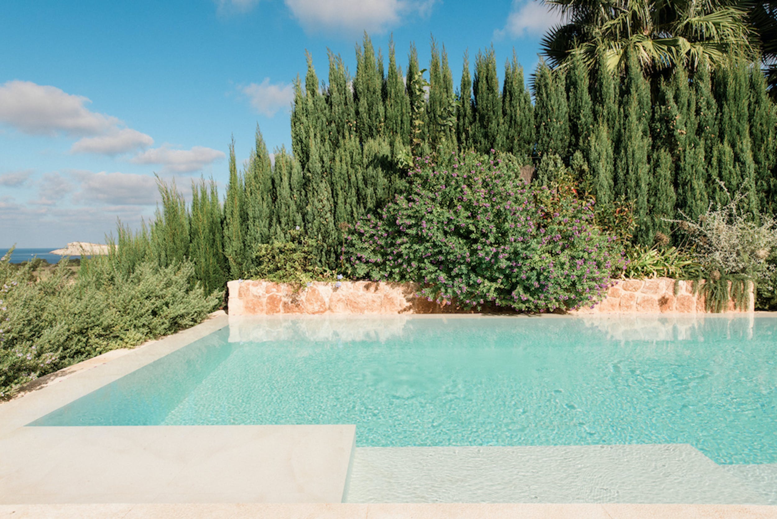 Can Cala enjoys an ideal location for enjoying Ibiza’s famous sunsets and exploring the local coves and beaches. From the sun-drenched poolside terrace, there are panoramic views across fields to the sparkling Mediterranean Sea and the little islands of Illa des Bosc and Conejera.