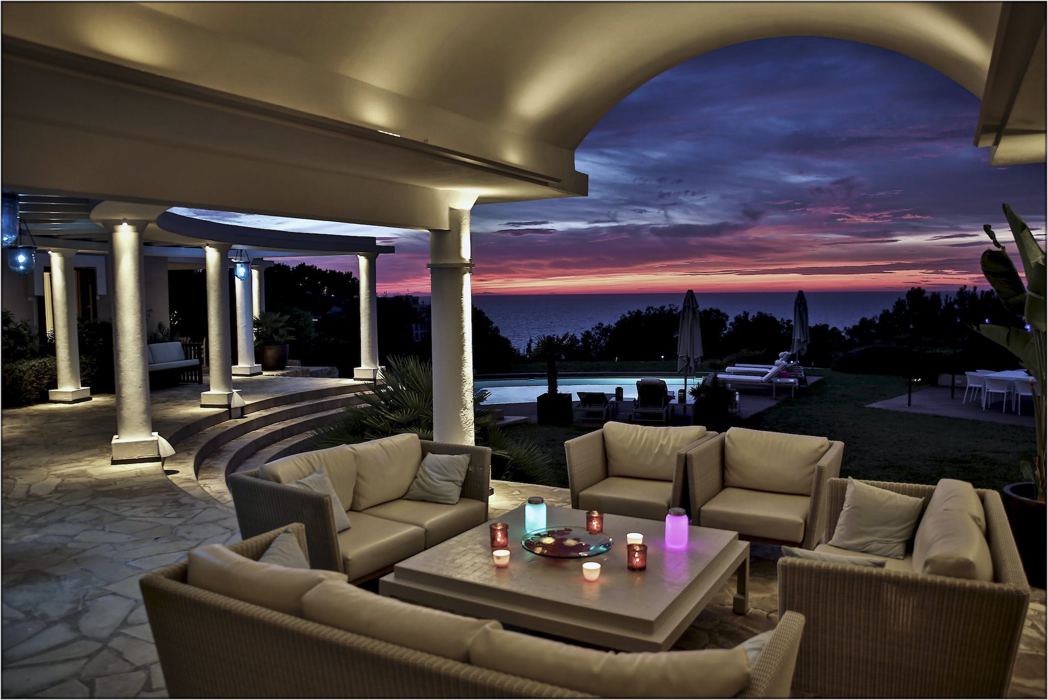 The architecture of the villa is modern and open plan, allowing the bedrooms and terraces to take full advantage of the splendid panoramic views. The sunsets at this villa are truly memorable and the villa has an abundance of terraces and patios so that the views can be enjoyed from every angle.