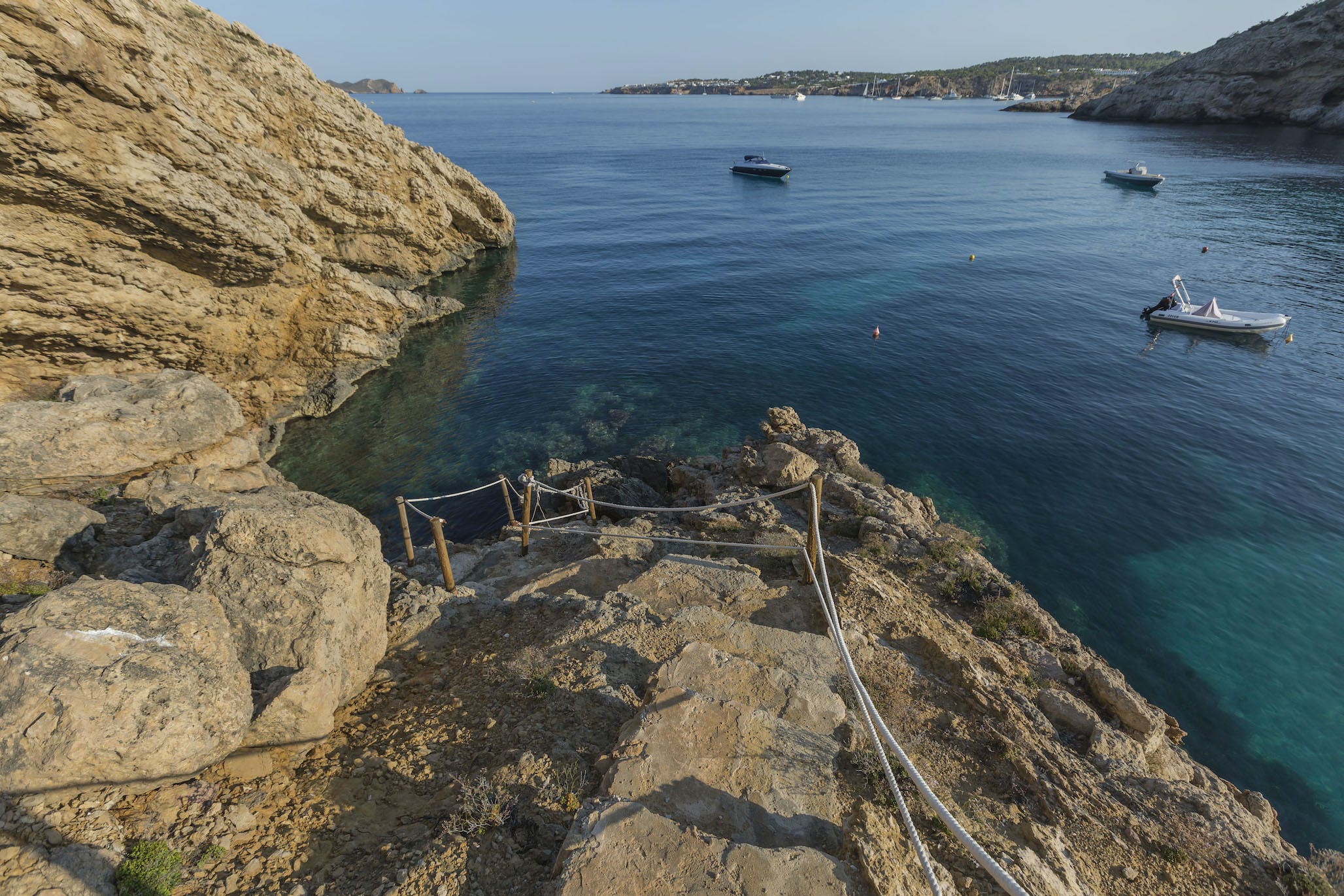 Perched on a cliff overlooking Cala Moli beach, Cala Moli is built on two levels, offering a 180 view of the sea and Illetas, as well as direct access to a small cove via rocky steps carved into the side of the cliff.