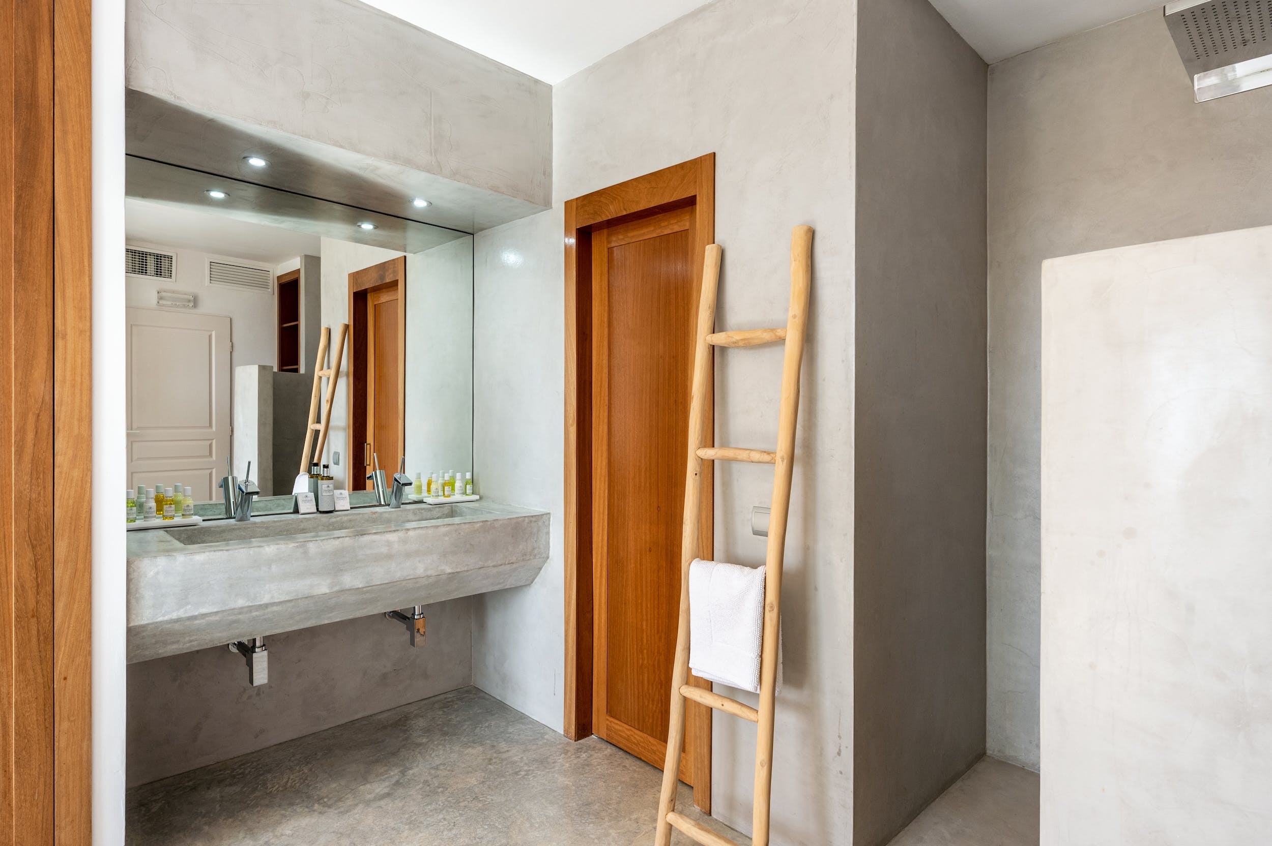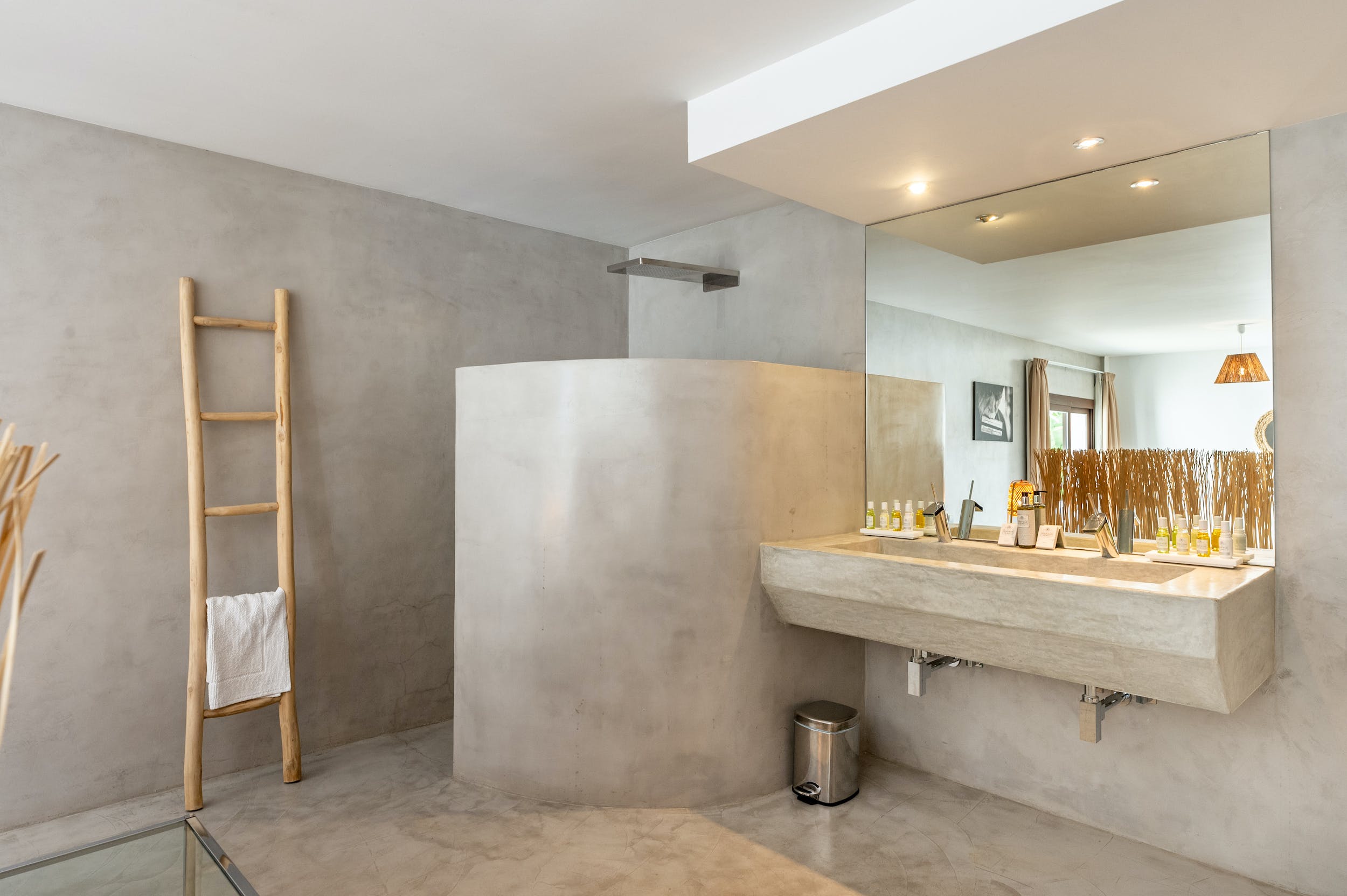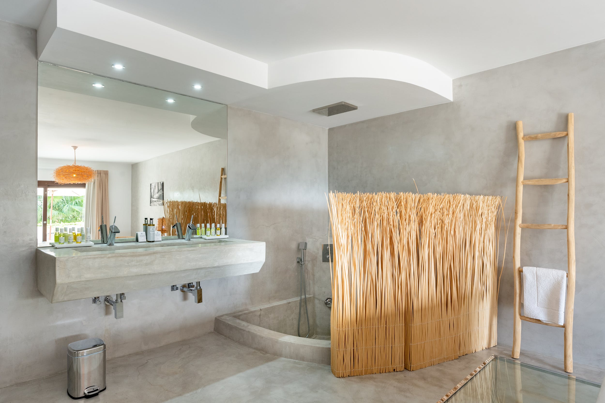 The minimalist style and generous room size continues through each of the six double bedrooms. There are four queen size beds and two bedrooms with single beds (which can be made in to double beds) and large en-suite bathrooms. The master enjoys a private terrace, while two others share a terrace.