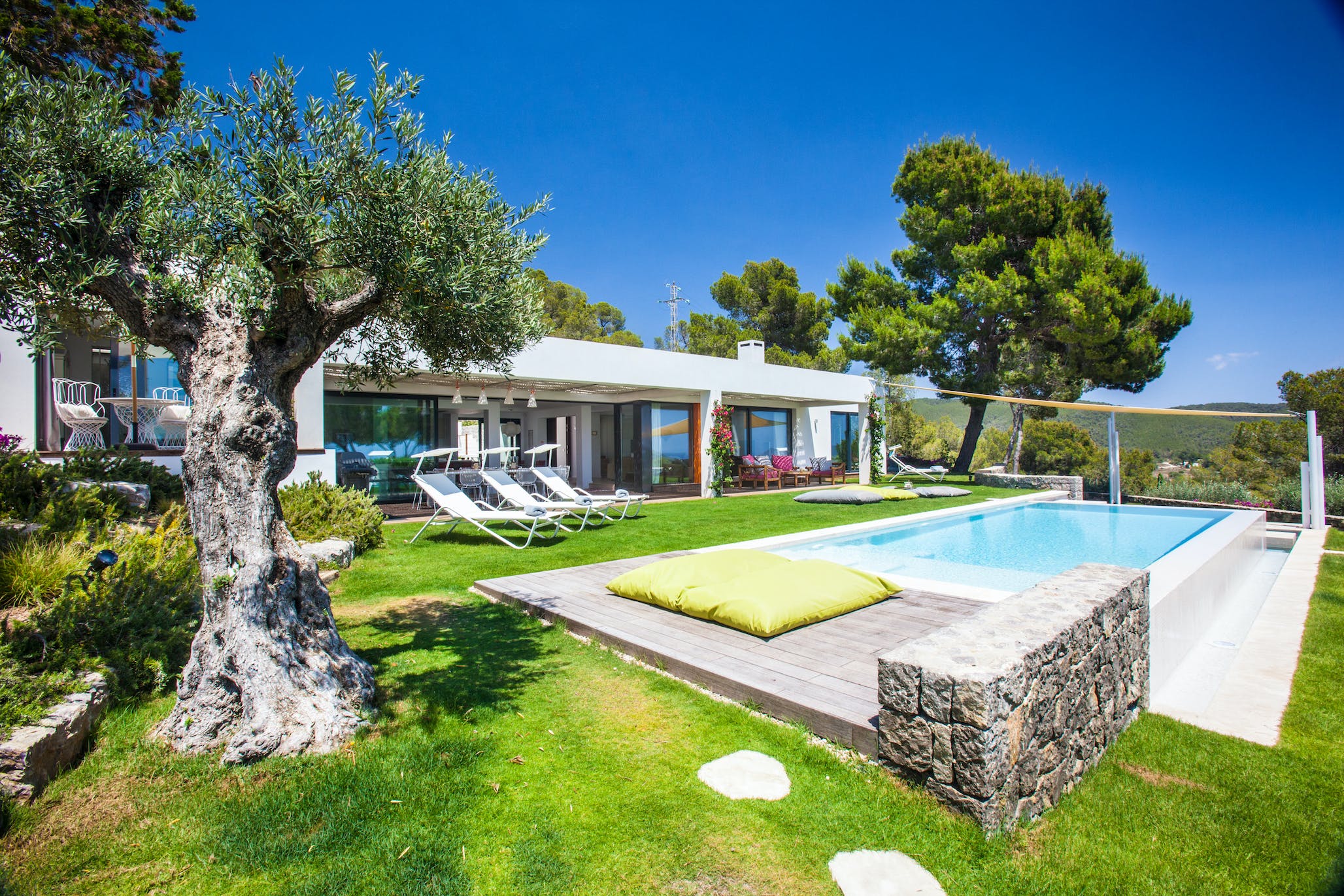 Nestled in the unique natural surroundings of a protected area, Can Falco is located at the end of a quiet and private road. It is an ideal place for families and groups of friends, and with five bedrooms and five en-suite bathrooms, the villa sleeps ten people comfortably.