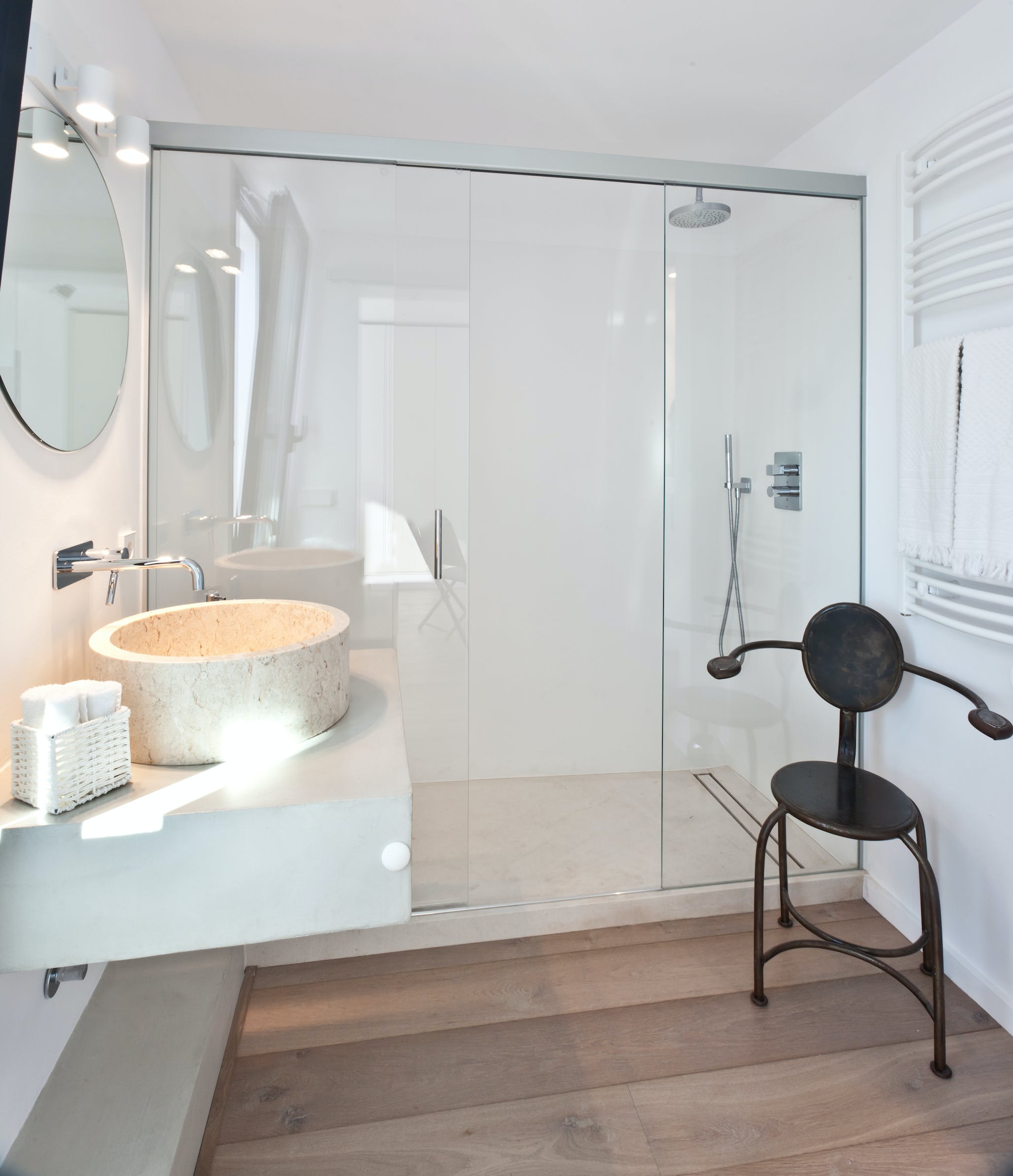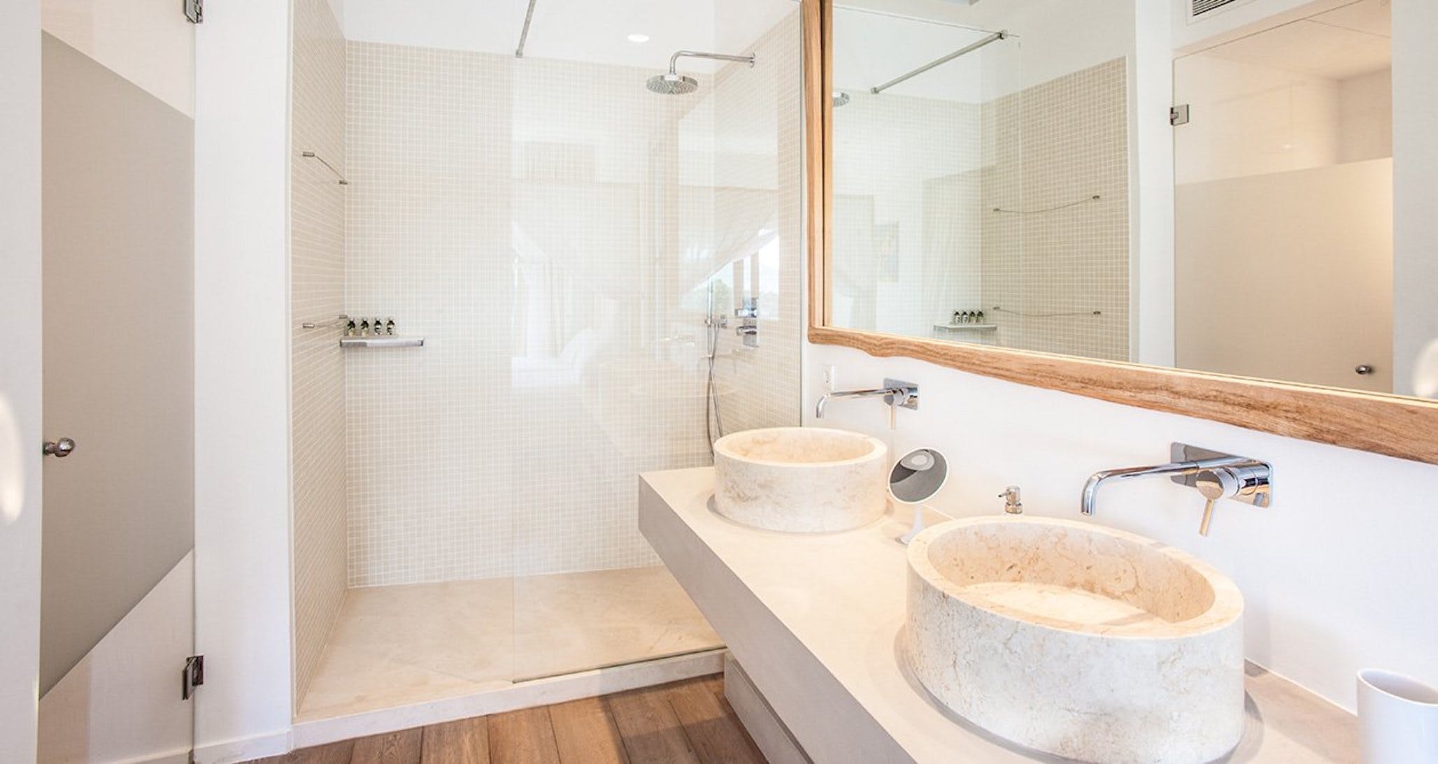 Double or king size bed, air conditioning, sea view and access to the terrace. Bathroom with walk-in shower.