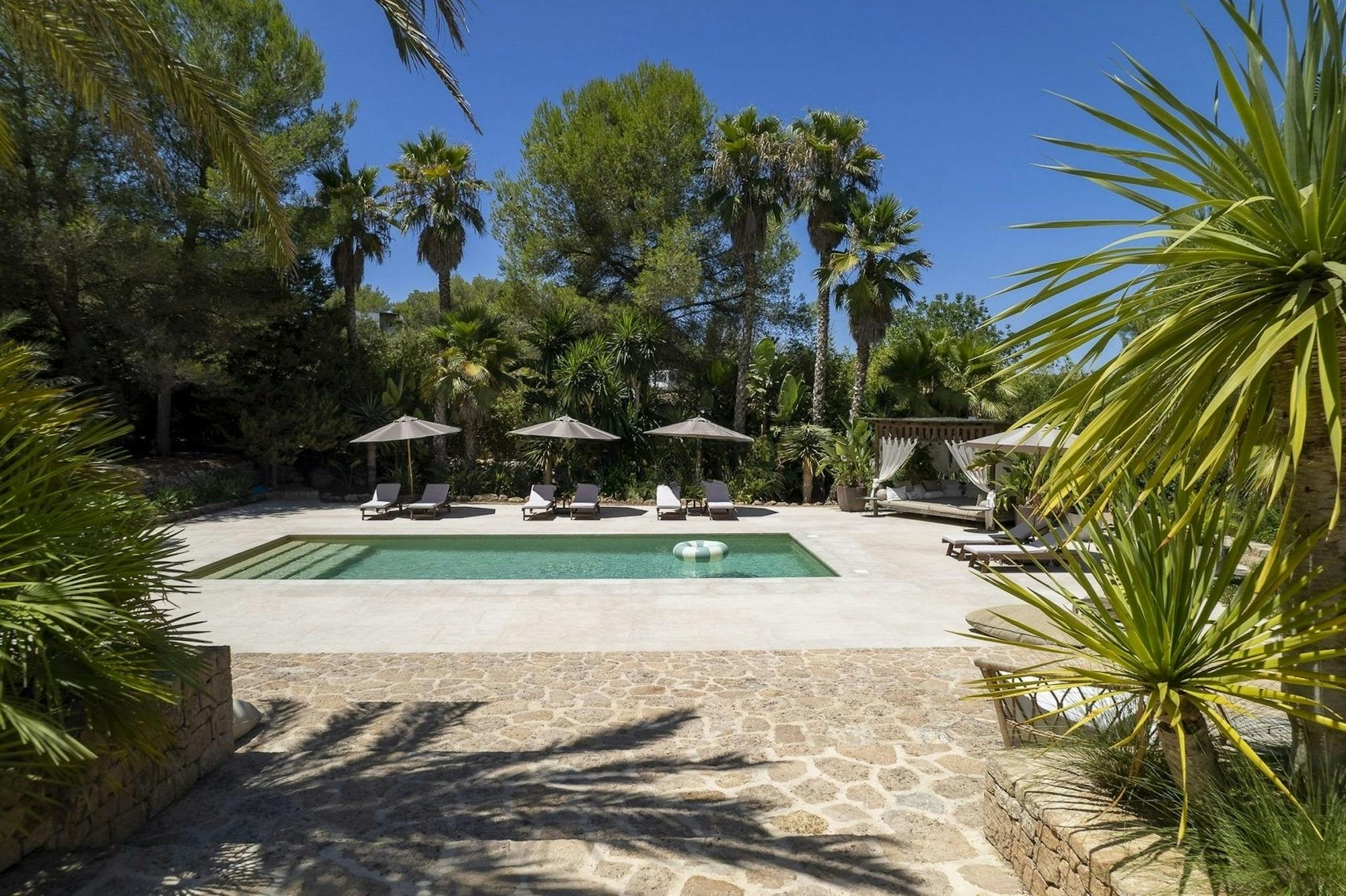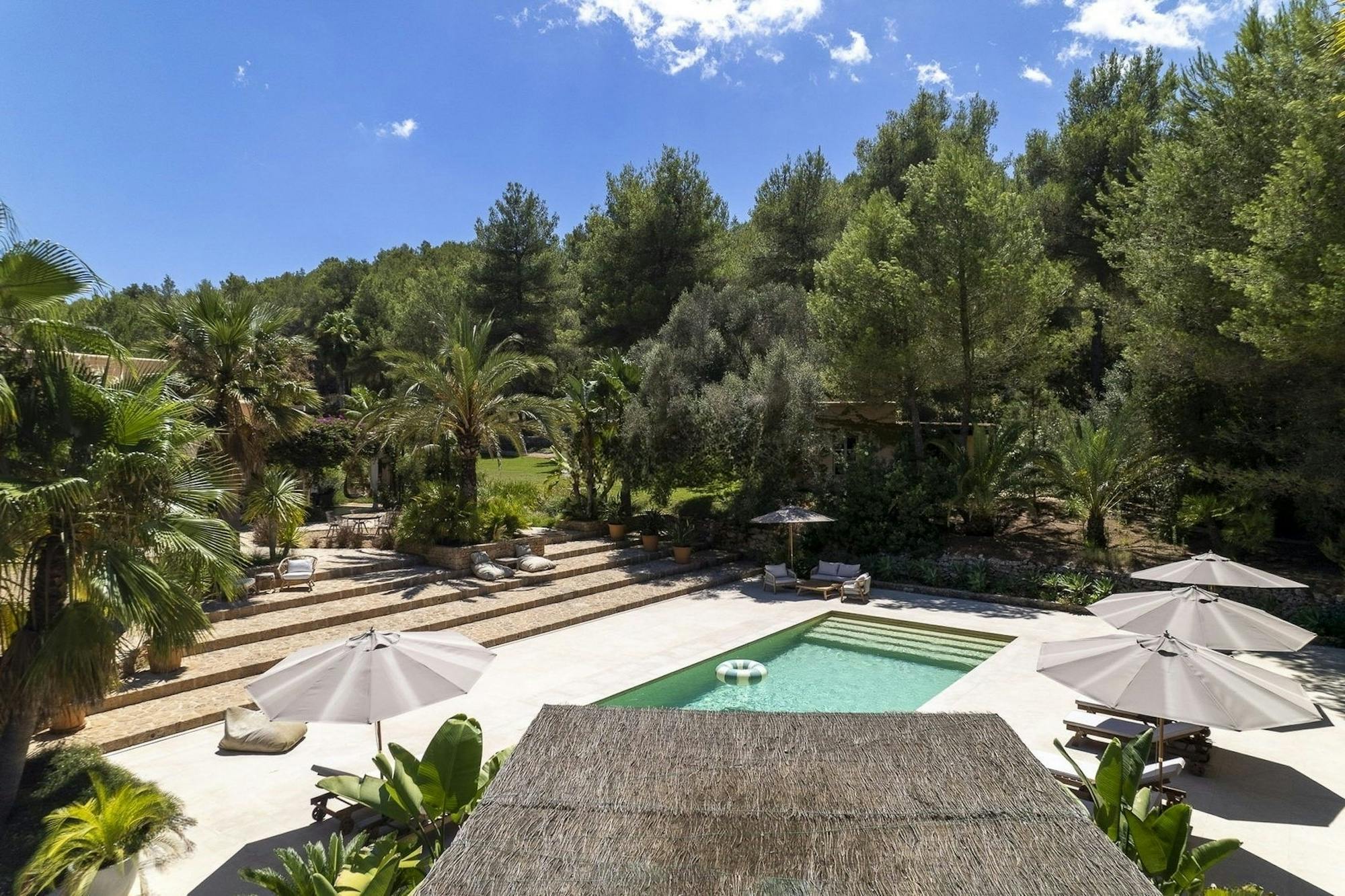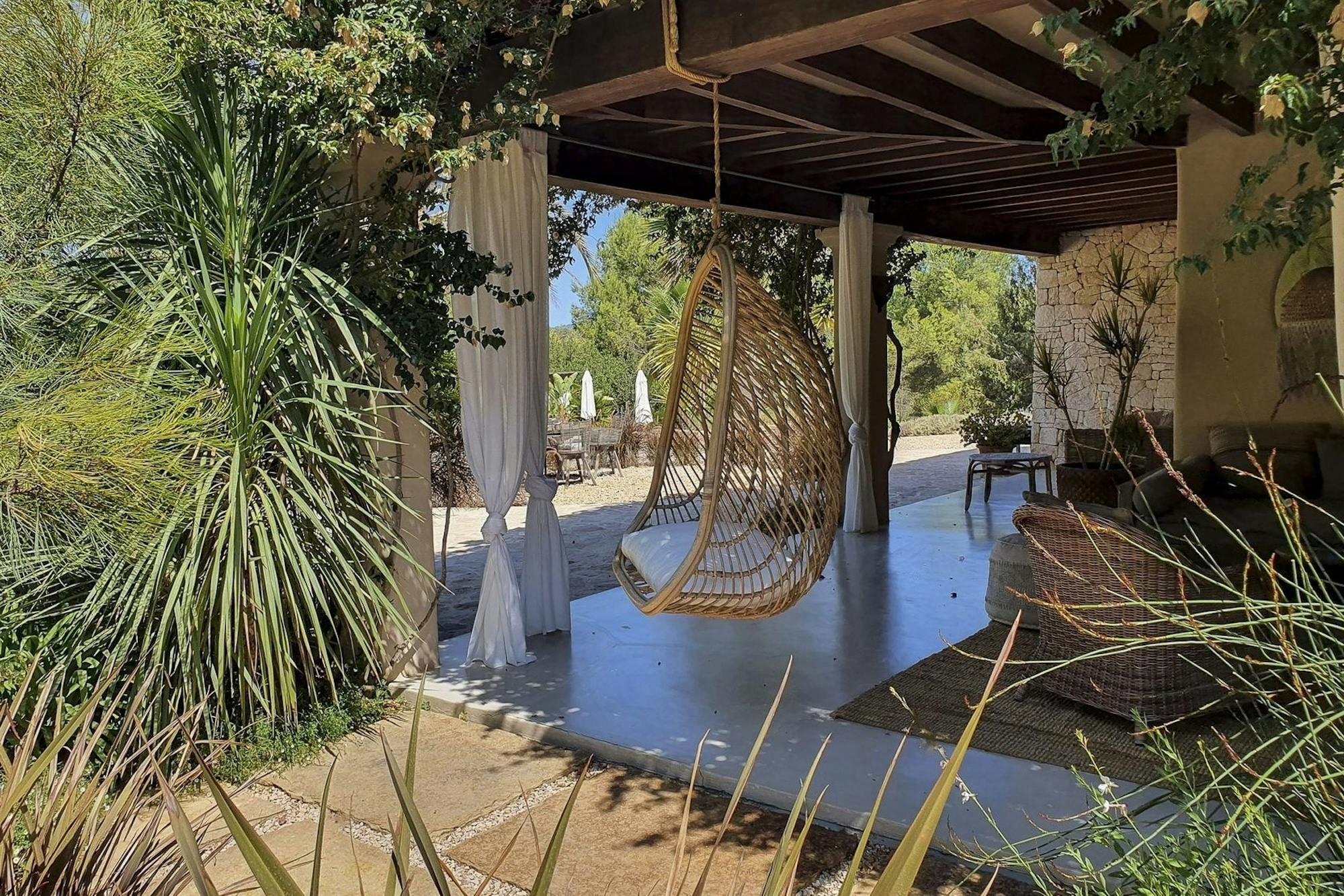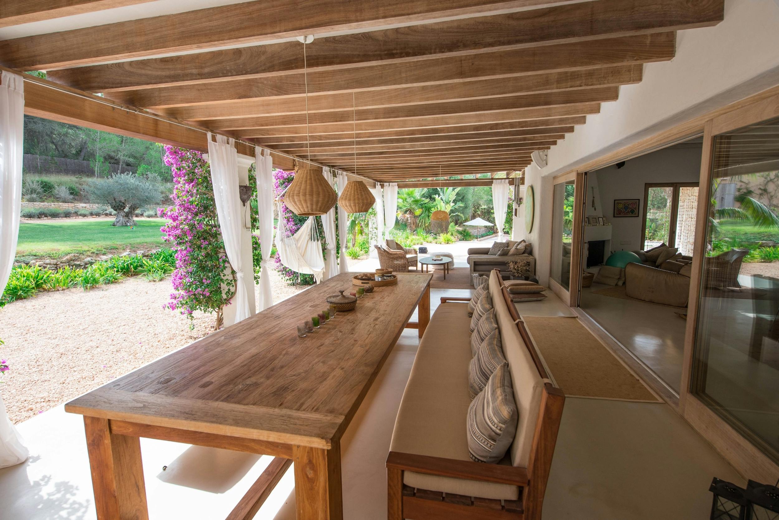 This countryside residence is hidden away in woodland, about 20 minutes (drive) from Ibiza Town. The villages of Santa Eulalia and Santa Gertrudis are a 10-minute drive away from the villa, via winding caminos.