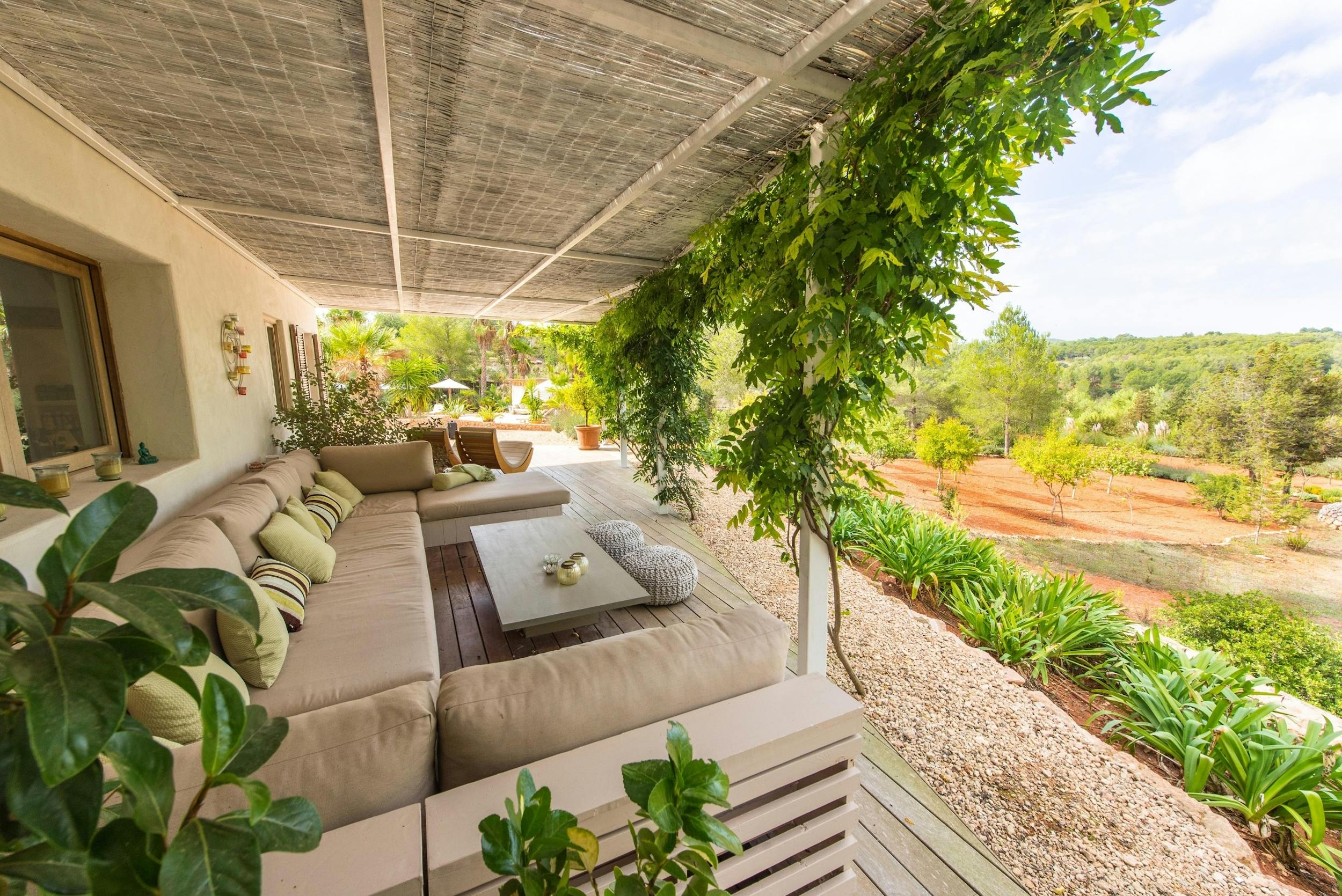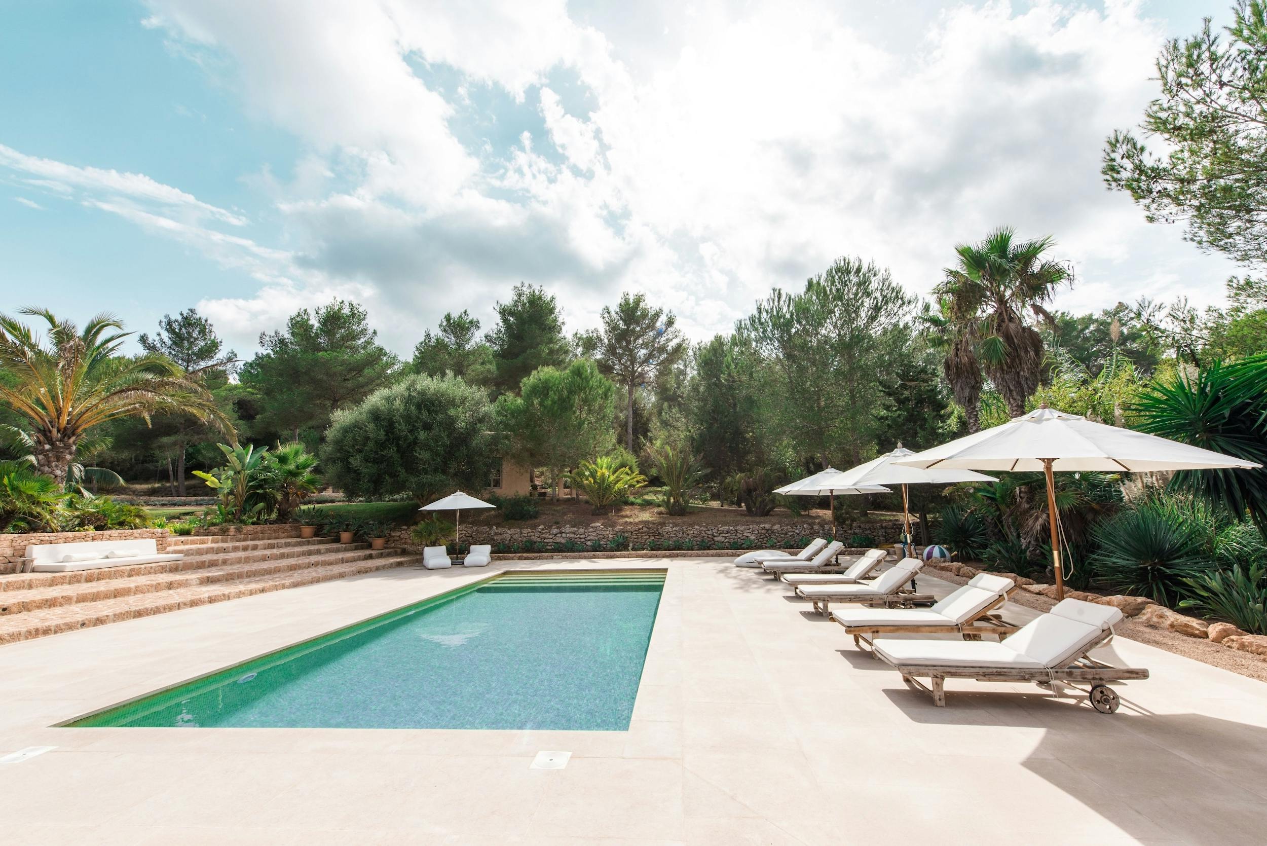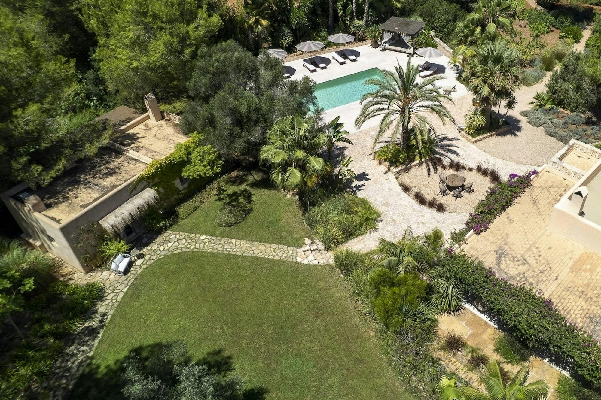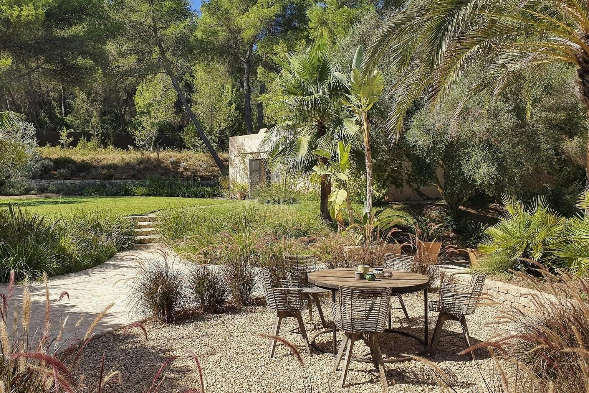This countryside residence is hidden away in woodland, about 20 minutes (drive) from Ibiza Town. The villages of Santa Eulalia and Santa Gertrudis are a 10-minute drive away from the villa, via winding caminos.