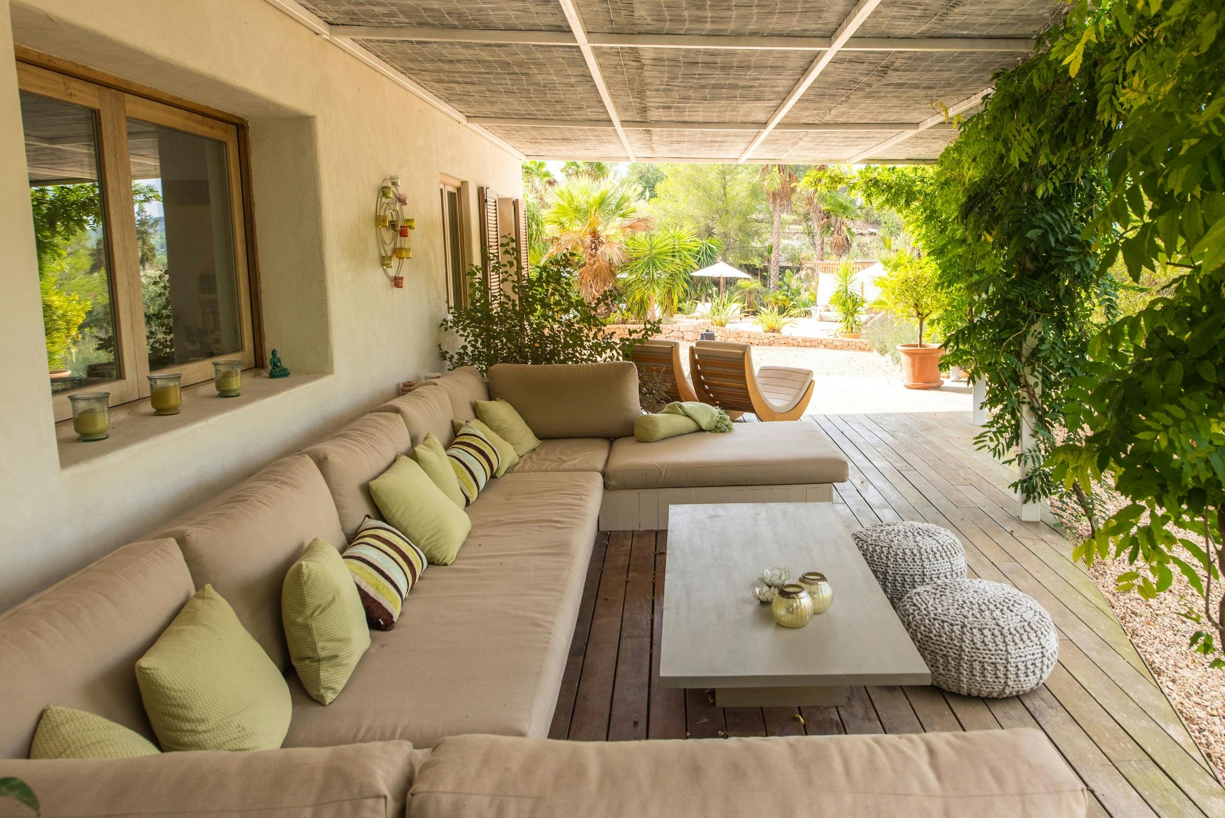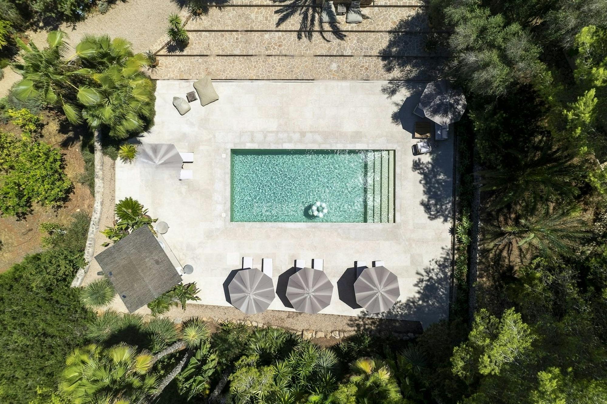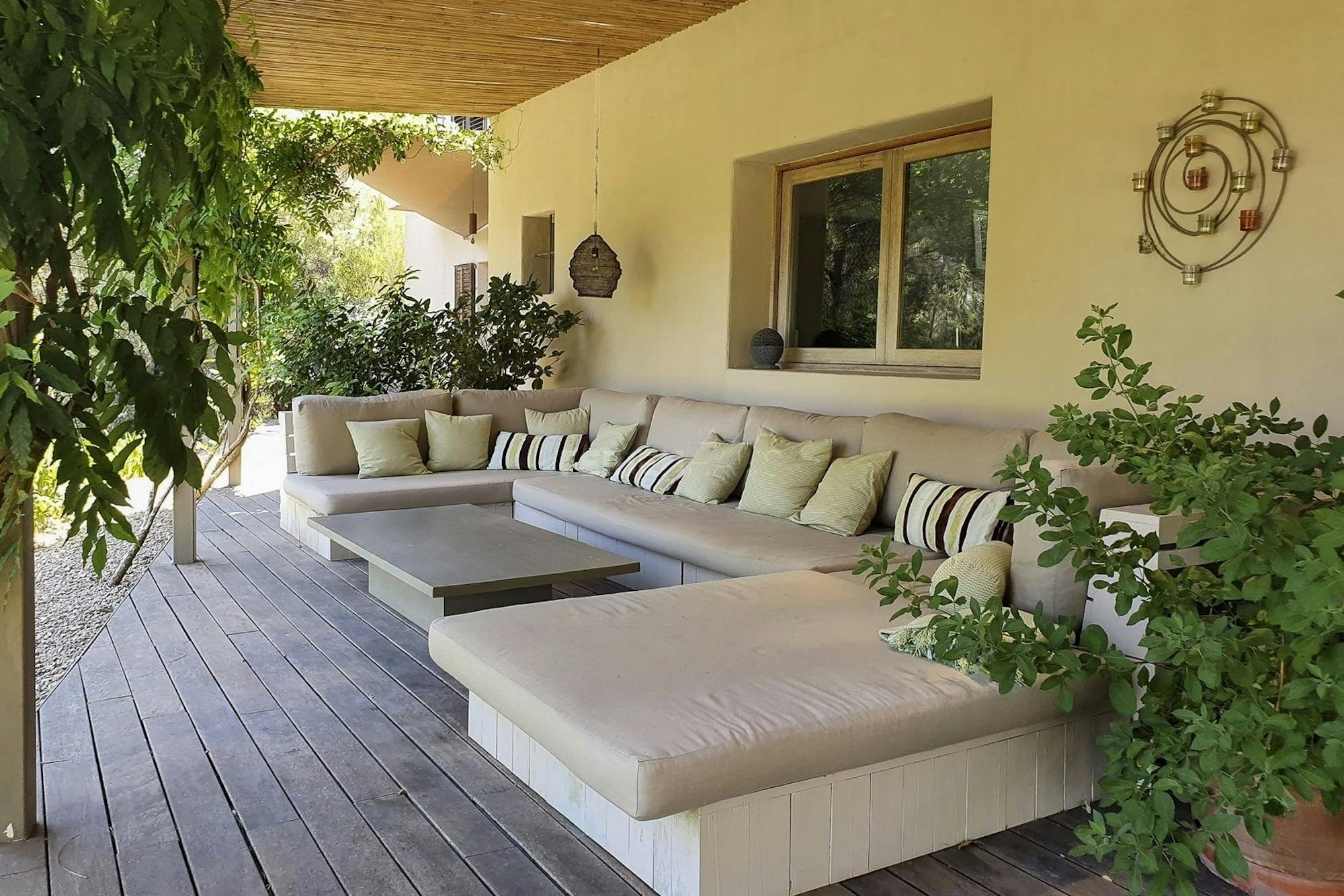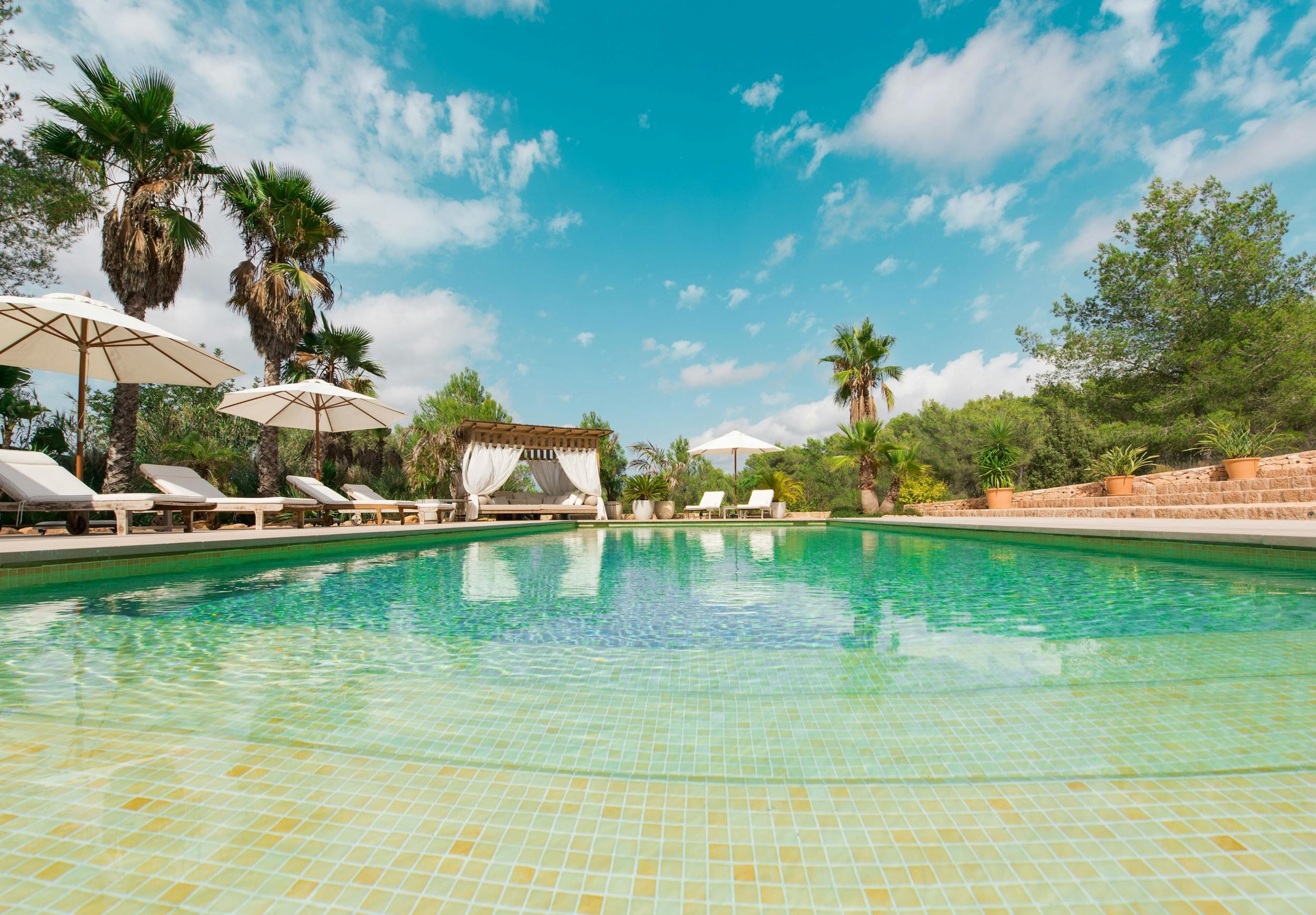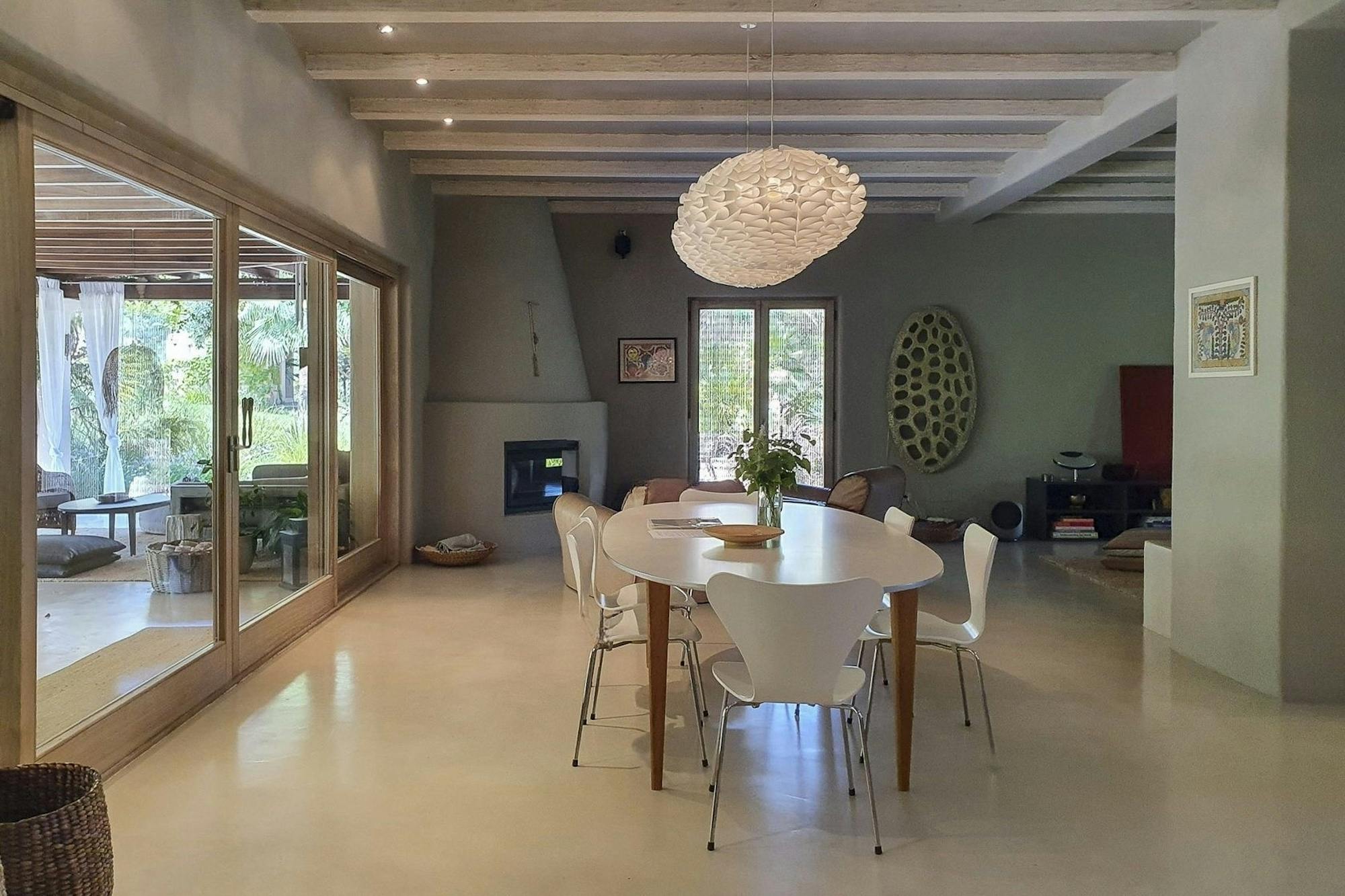This countryside residence is hidden away in woodland, about 20 minutes (drive) from Ibiza Town. The villages of Santa Eulalia and Santa Gertrudis are a 10-minute drive away from the villa, via winding caminos.