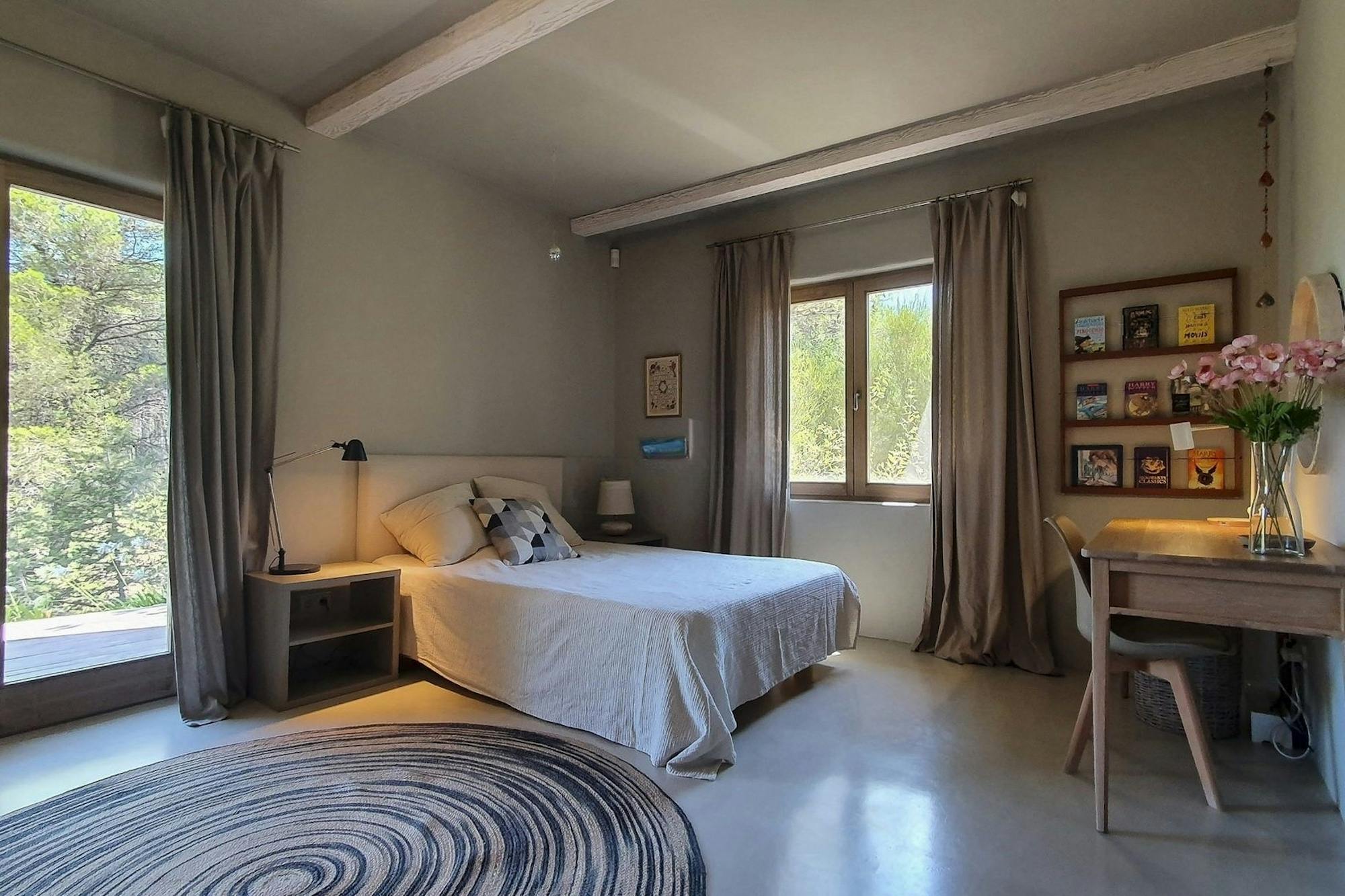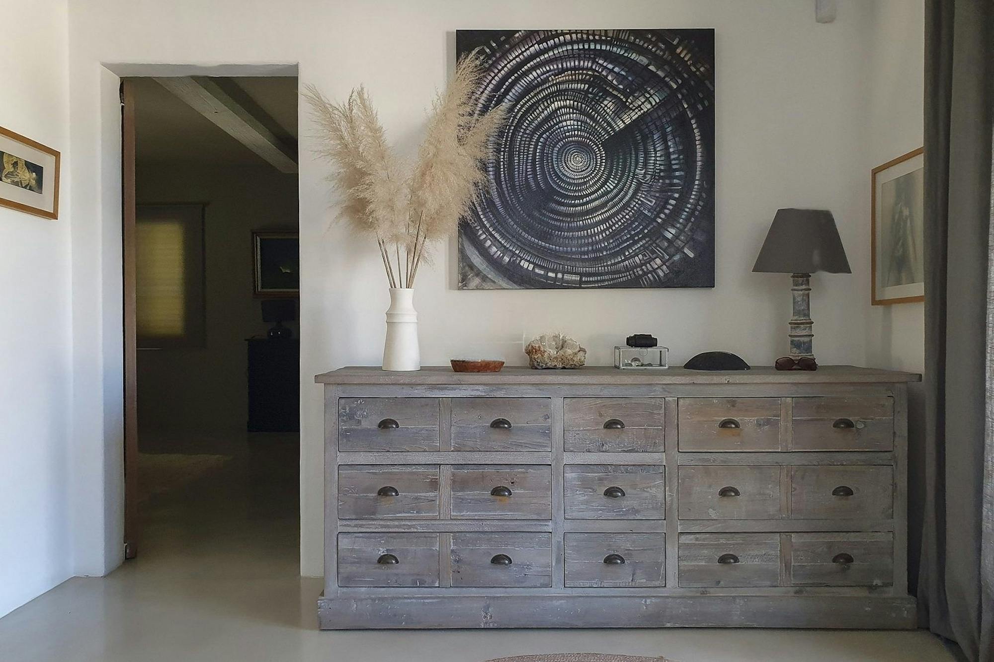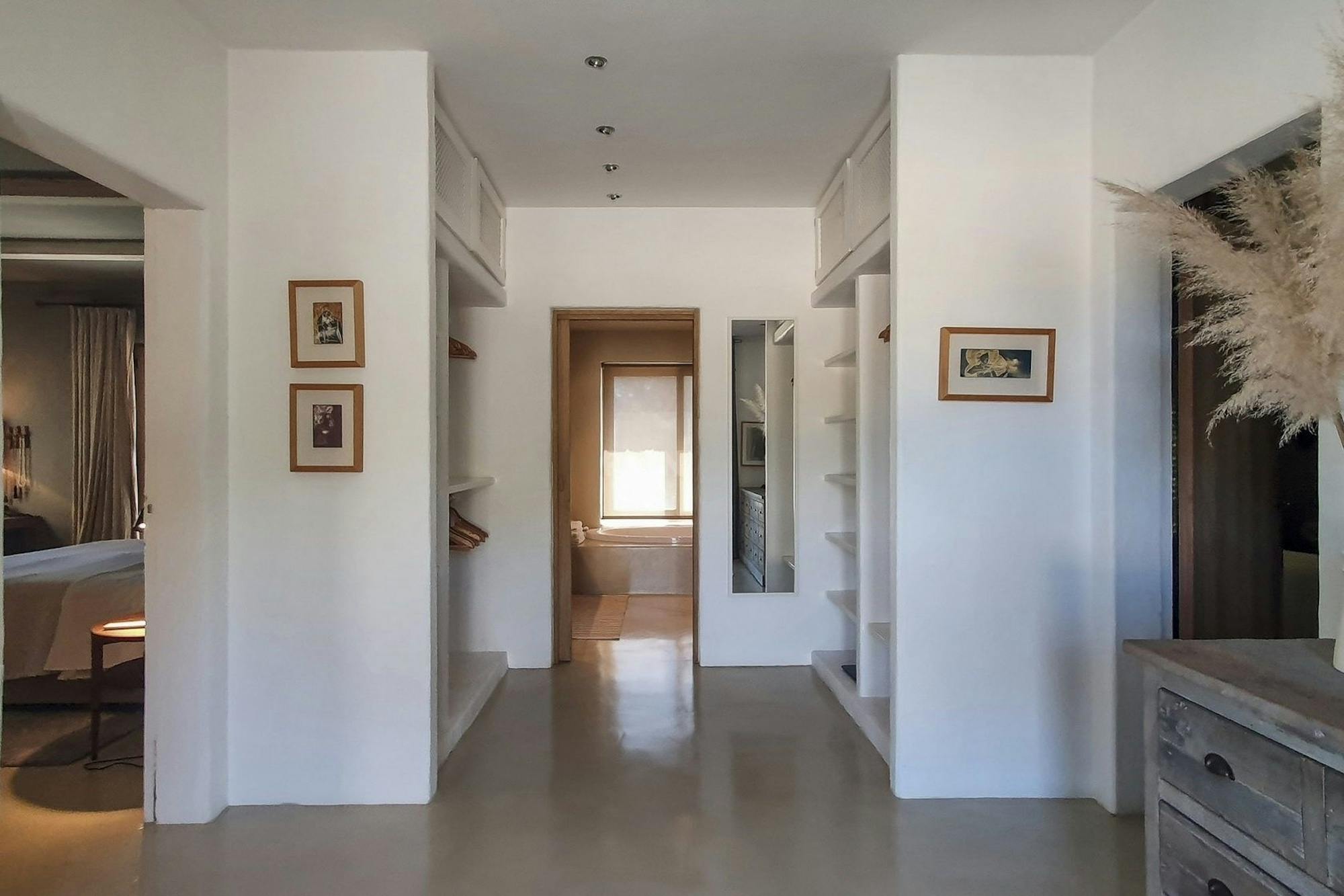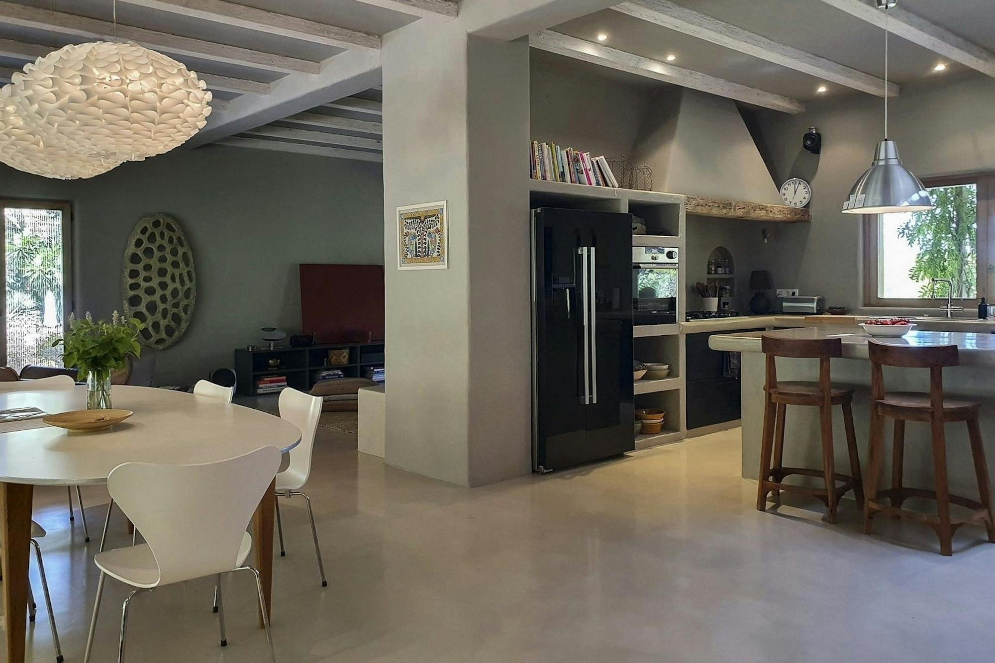 This countryside residence is hidden away in woodland, about 20 minutes (drive) from Ibiza Town. The villages of Santa Eulalia and Santa Gertrudis are a 10-minute drive away from the villa, via winding caminos.