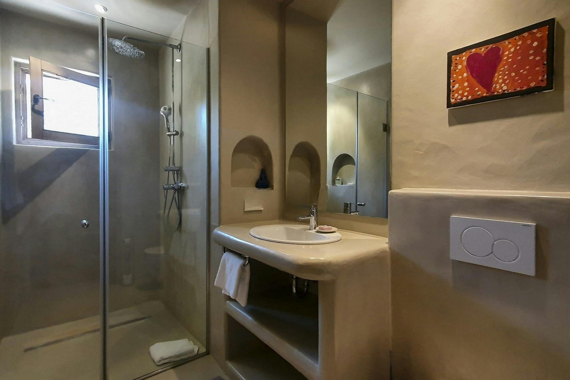 Ground Floor – UK size double bed, air conditioning, countryside views from its covered terrace with a seating area, en-suite bathroom with shower.