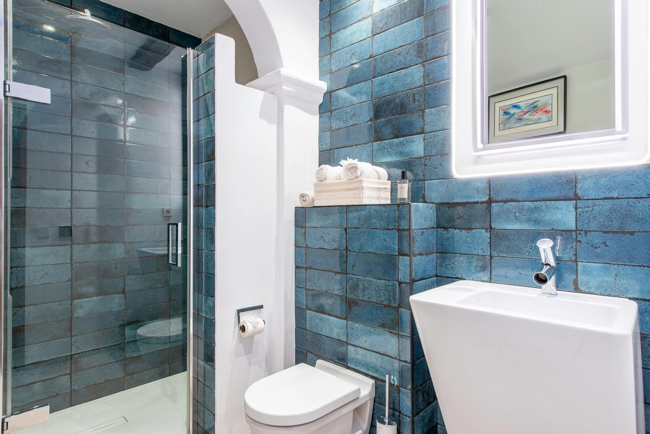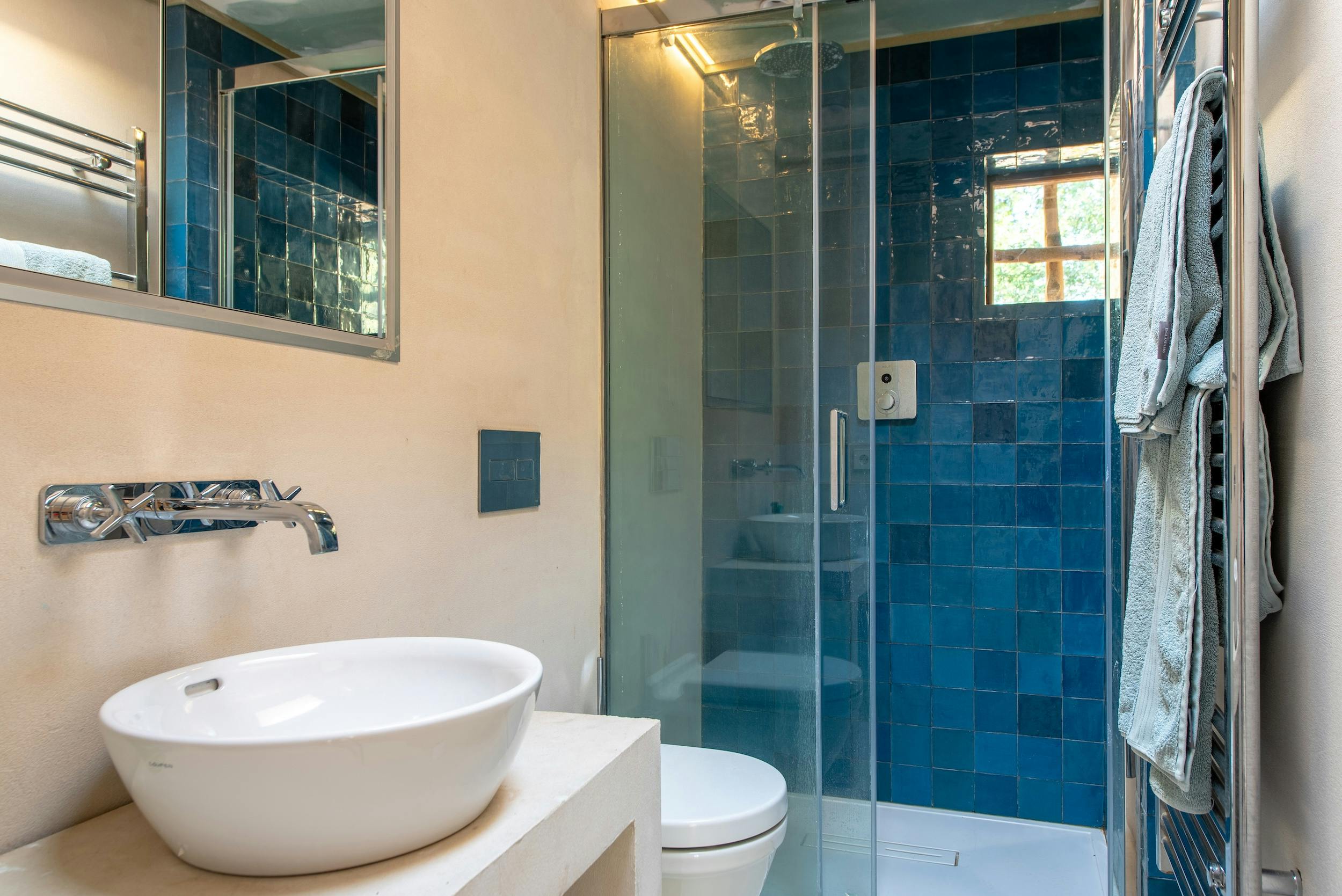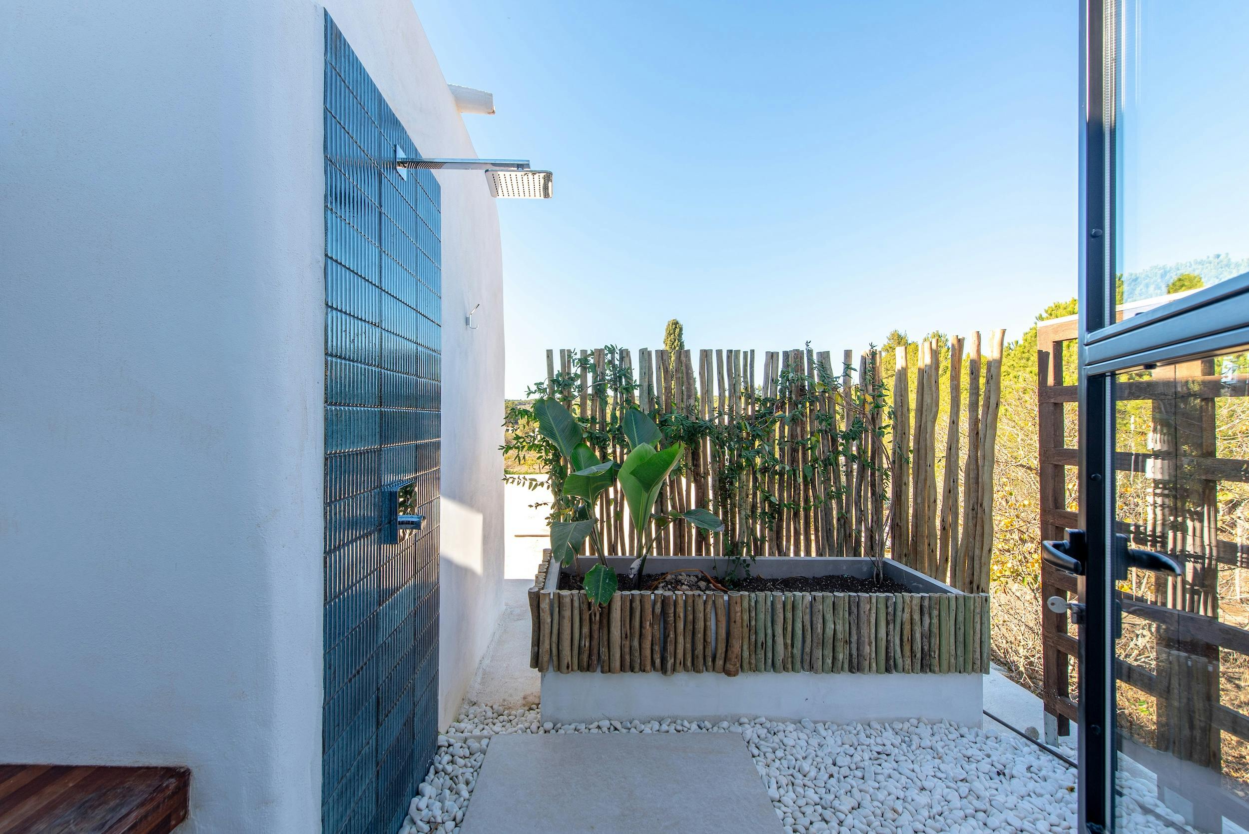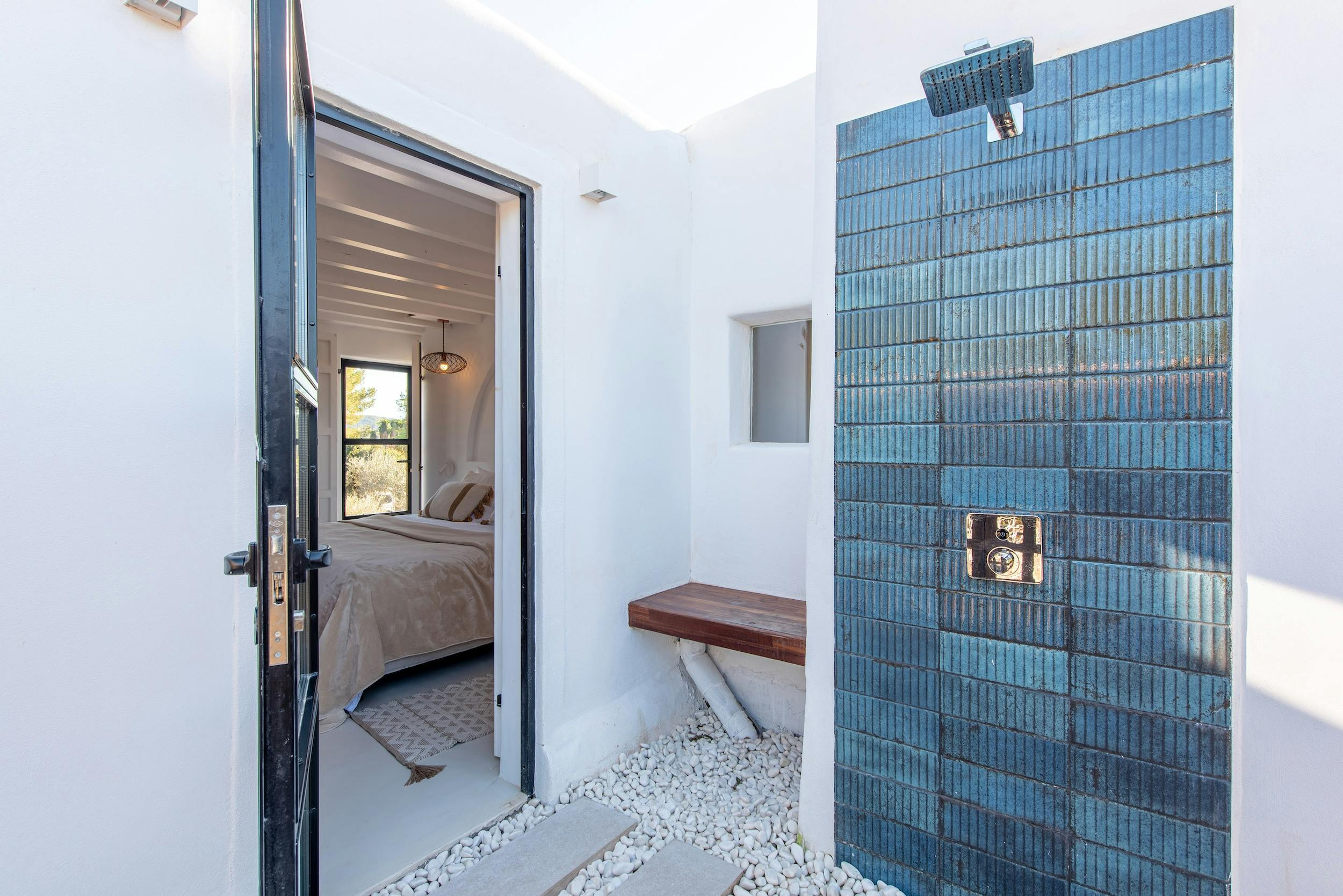 We offer five luxurious en-suite bedrooms. The master suite, positioned on the upper level, boasts an elegant antechamber that leads to a sunlit bedroom with sweeping countryside vistas and an alfresco shower with stunning landscape views.