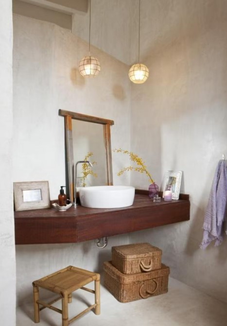 The interior has been furnished blending the traditional with the modern – rustic but stylish use of natural materials, a cosy bohemian chic vibe, neutral tones with purple and lavender accents. This peaceful refuge has been a labour of love. Colours are muted, clean lines play off each other, the furniture both in and out is stylish but unpretentious, and wide picture windows give out onto the wild landscape.