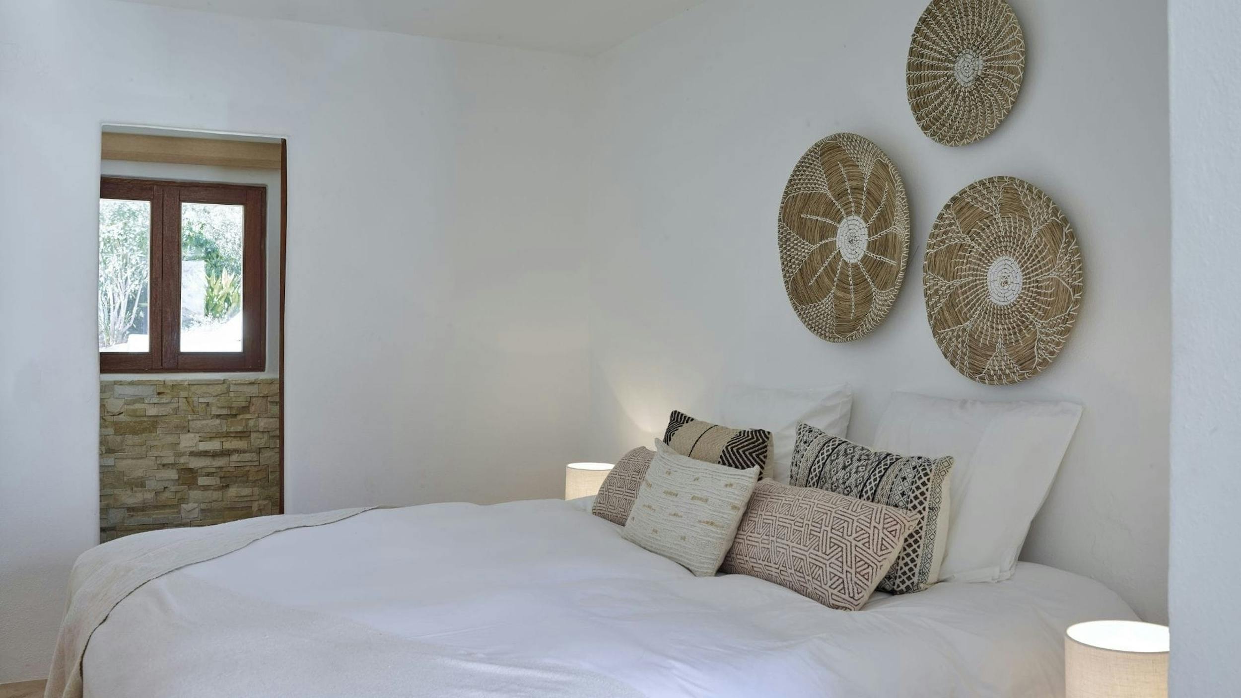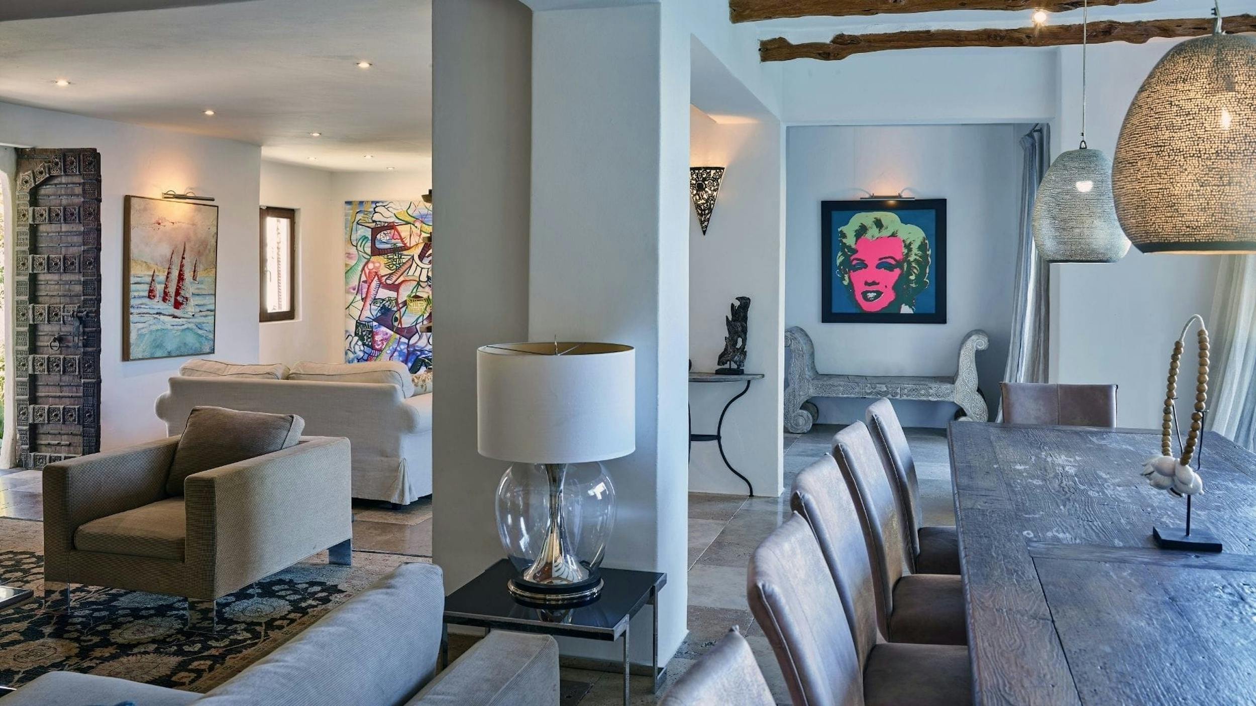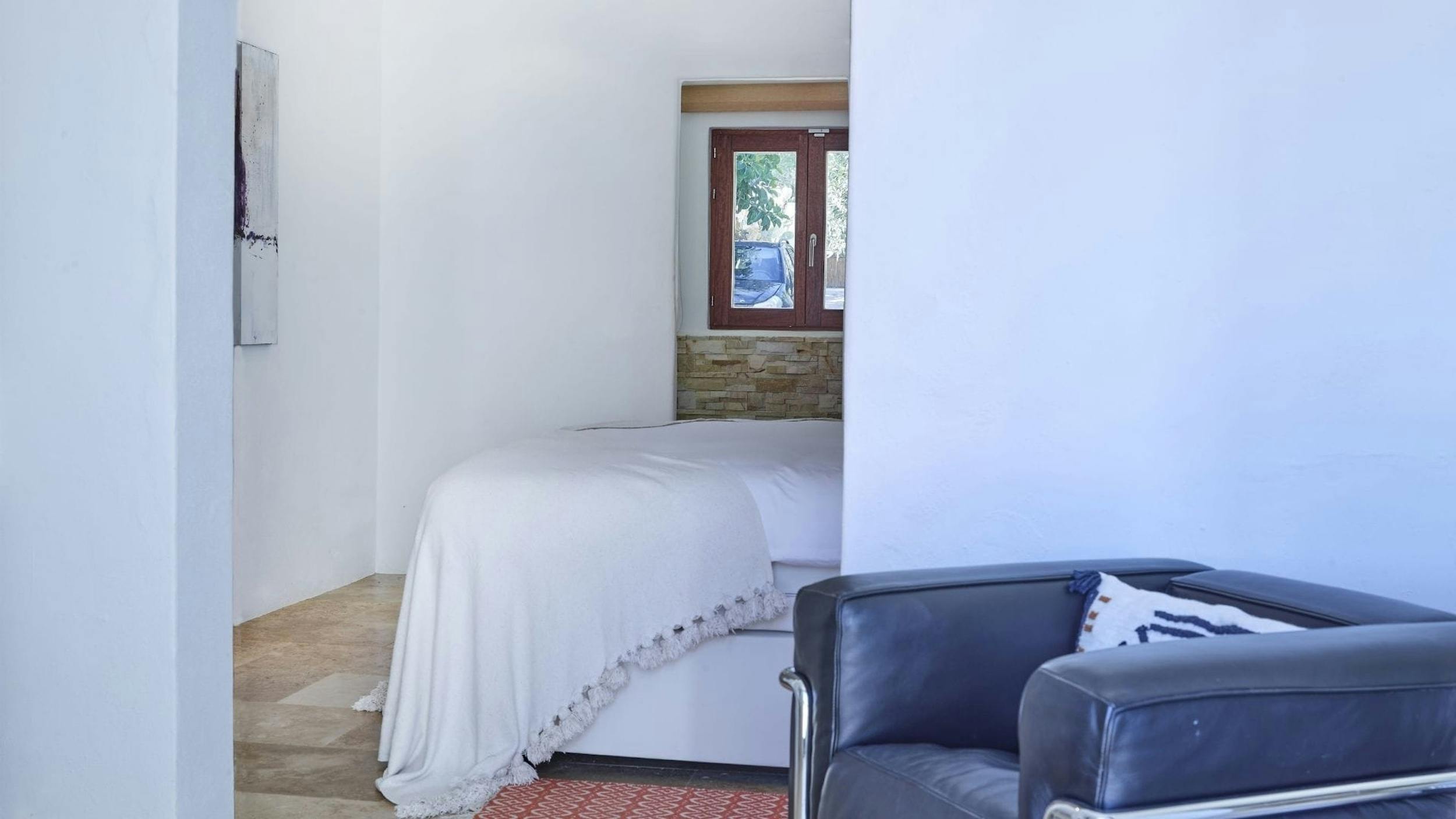 The interiors of Can Sol are an artful blend of typical Ibicencan architecture and modern comforts. Natural materials, exposed stone walls, and neutral tones create a sophisticated rustic style.