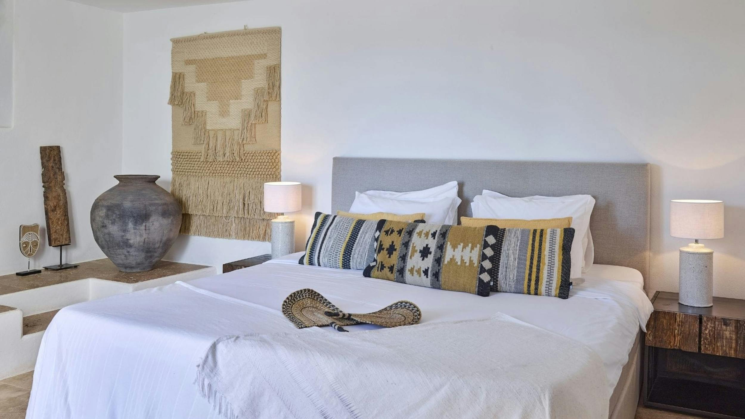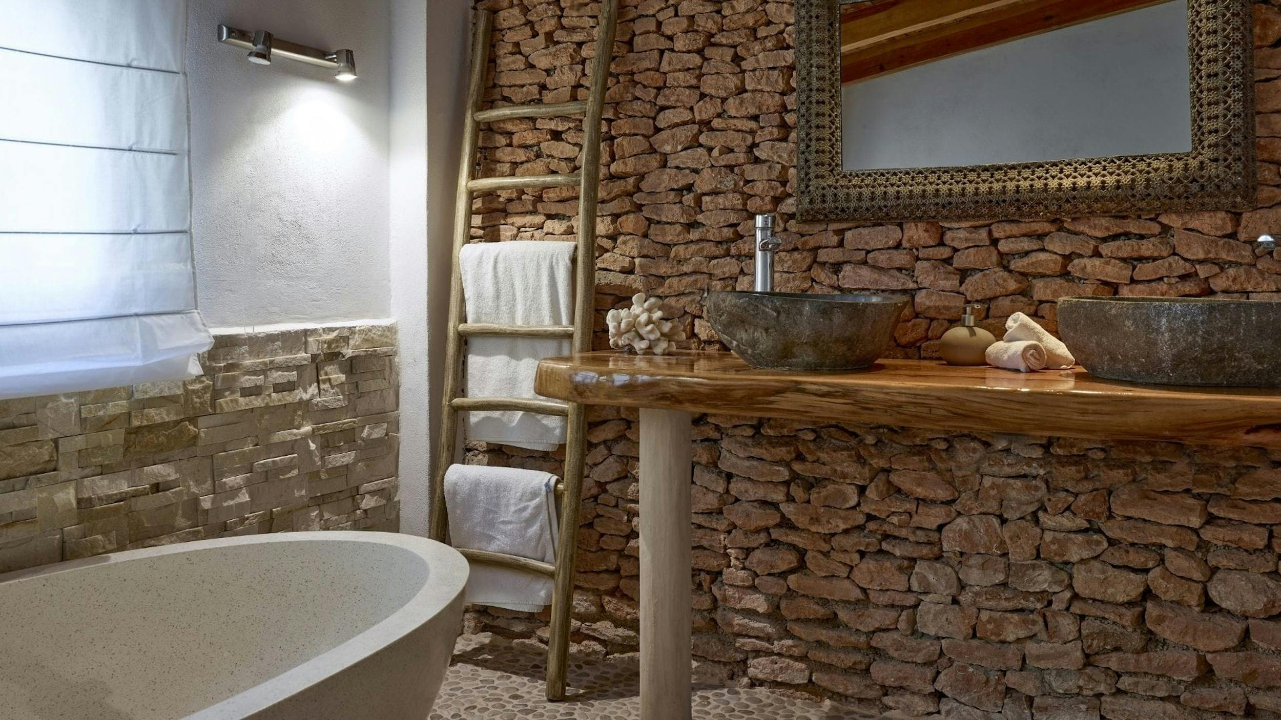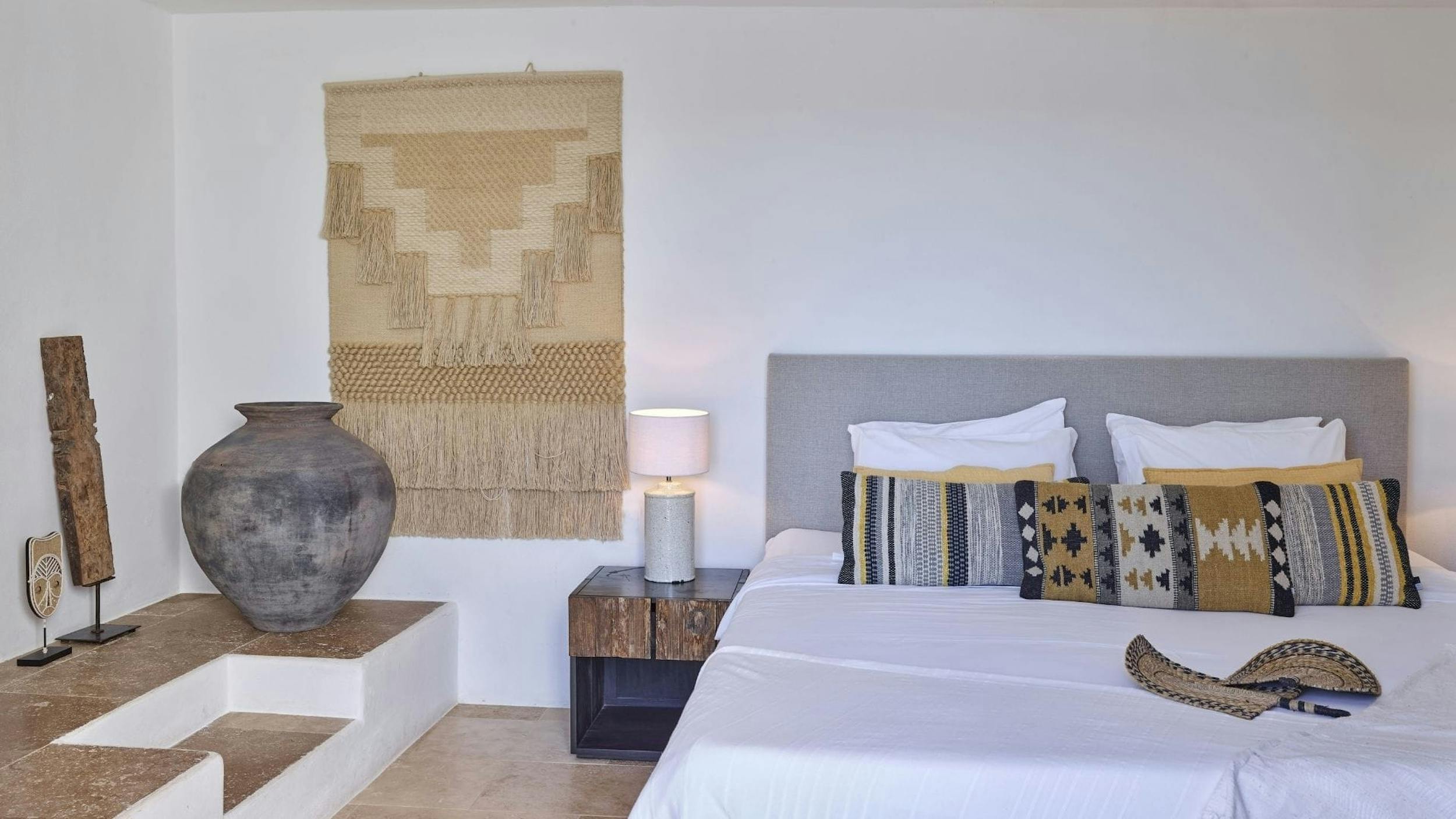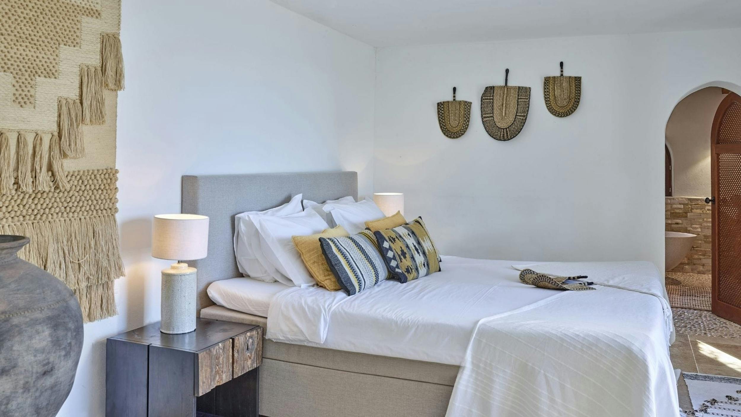The interiors of Can Sol are an artful blend of typical Ibicencan architecture and modern comforts. Natural materials, exposed stone walls, and neutral tones create a sophisticated rustic style.