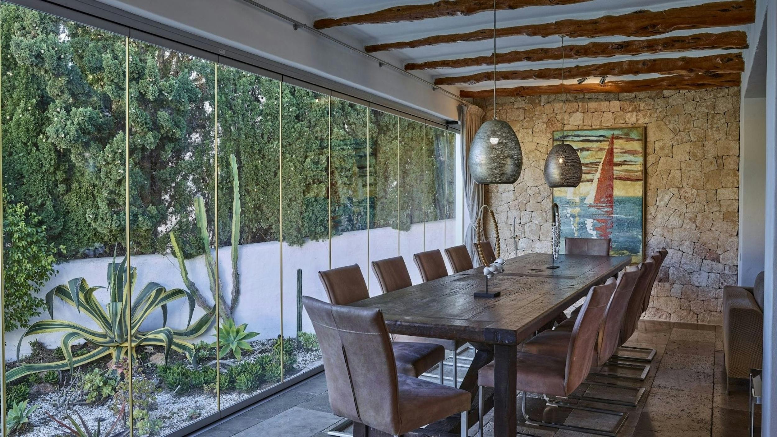 Sol Den Serra’s Amante Beach Club is a short walk away and you’re just a few minutes’ drive from the busy seaside town of Santa Eulalia and the soft, pale sands of Cala Llonga.