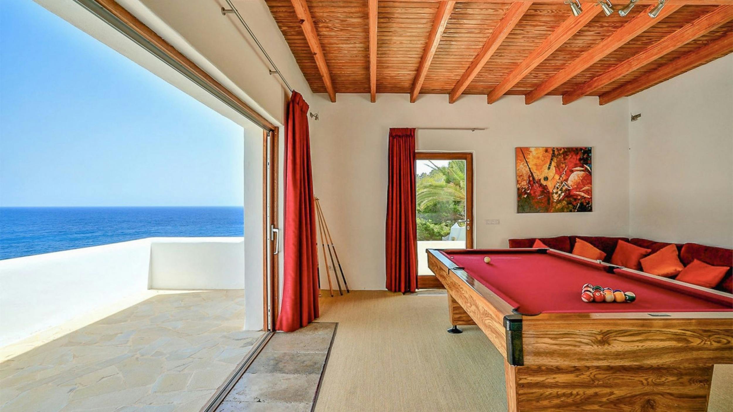 Savour moments of sheer bliss as you recline on plush loungers beside the pool, or delight in al-fresco dining at the outdoor table. Children can explore the lush surroundings, play amidst the fragrant fruit trees, or indulge in endless fun in the games room above the guest apartments, boasting a pool table and mesmerising sea views.