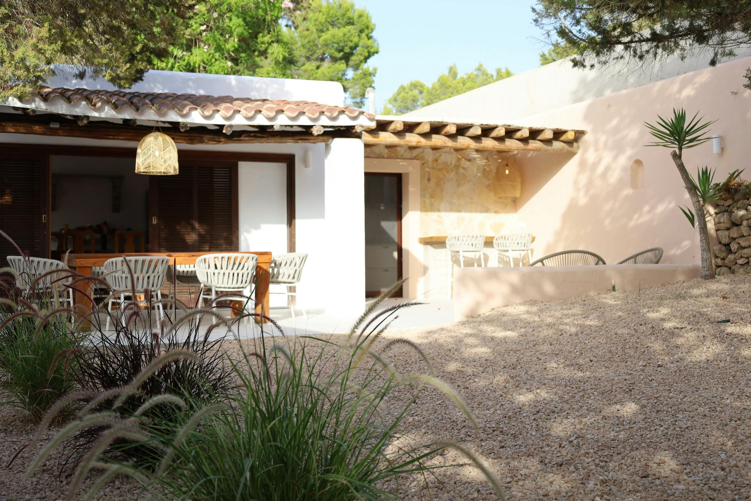Nestled in proximity to Cala Tarida, Can Tarida is a contemporary residence that seamlessly blends elements of a traditional Ibizan finca with modern amenities.