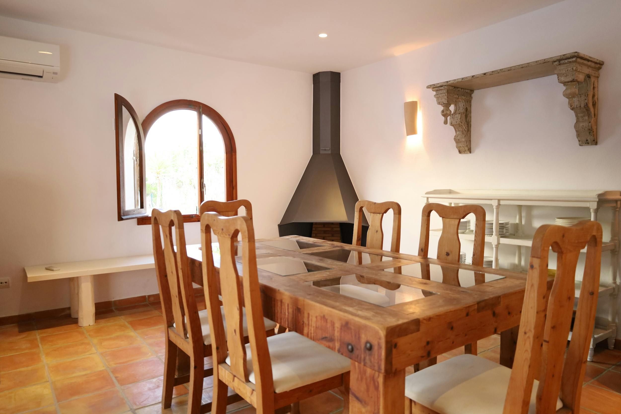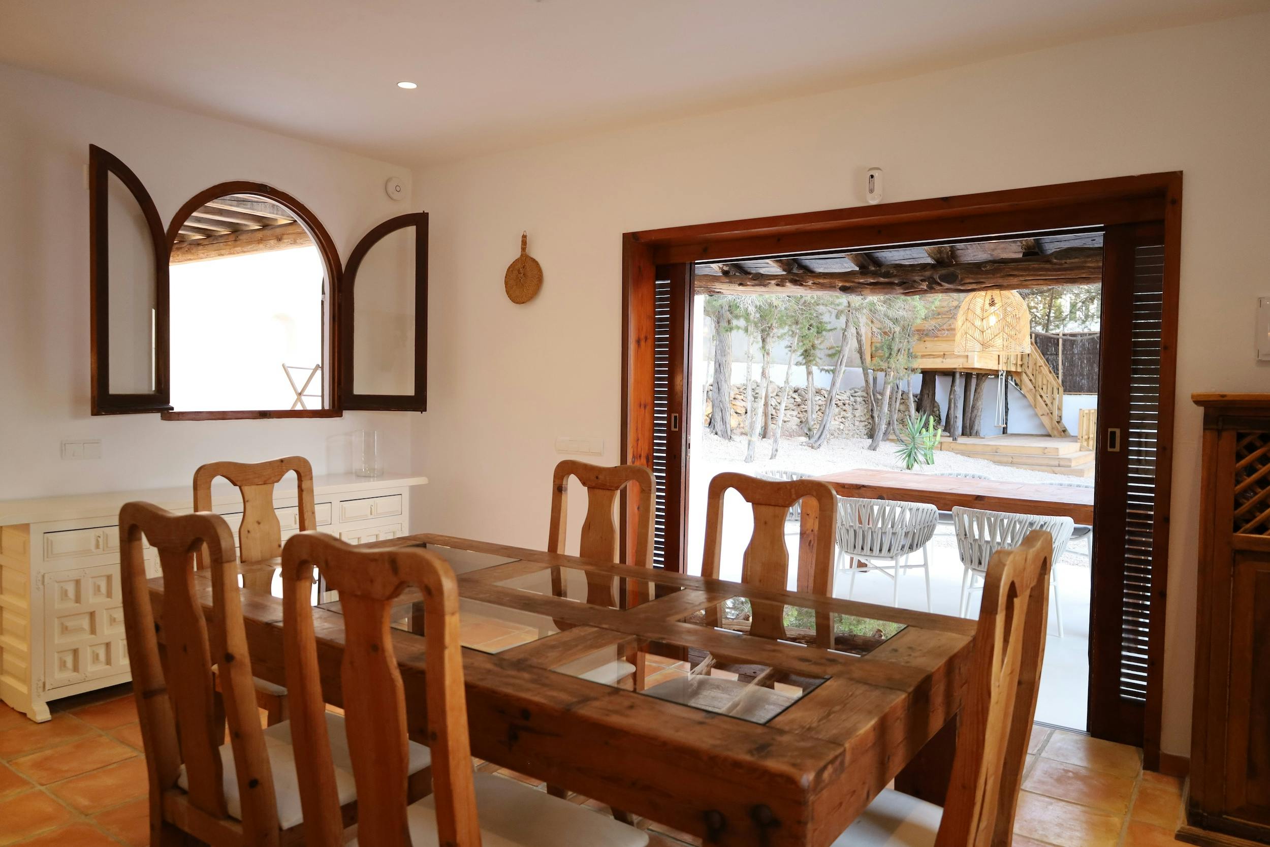 Can Tarida showcases multiple terrace spaces, some offering scenic views of Cala Tarida and the sea. Surrounded by the enchanting beauty of Mediterranean nature, the villa encompasses sun decks, a 9m x 5m swimming pool, a generous lounge bed, and an expansive chill-out area, providing an idyllic setting for a tranquil and rejuvenating holiday. An al-fresco dining area with a table for six and an outdoor play area for children add to the allure.