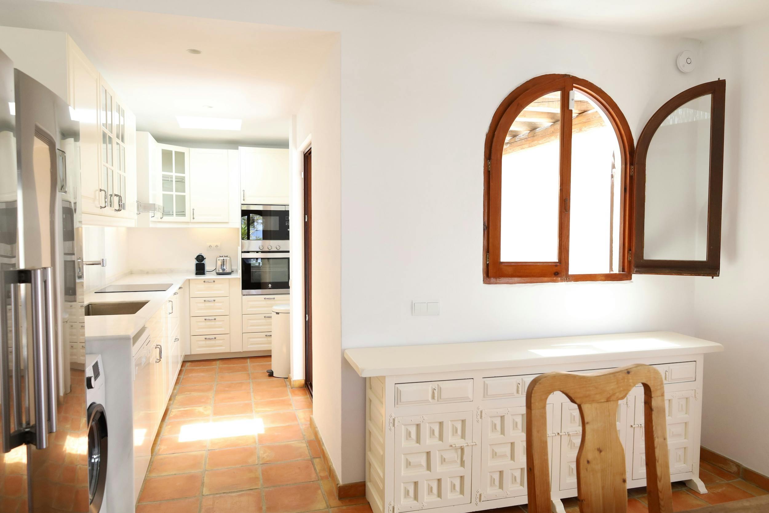 This stylish villa is conveniently situated near the shores of Cala Tarida. Recently completed, it features an entirely revamped interior in each room, characterized by the infusion of natural materials and a palette of soothing colors. The kitchen and dining area are housed separately in an annex from the main dwelling.